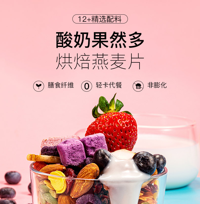 【网红款】酸奶果粒奇亚籽燕麦片500g,12种精选原料,富含膳食纤维,减脂瘦身,干吃,泡酸奶,牛奶豆浆都可以,即冲即食。百变吃法,美味不重样.买它让你吃的饱还能瘦的了!