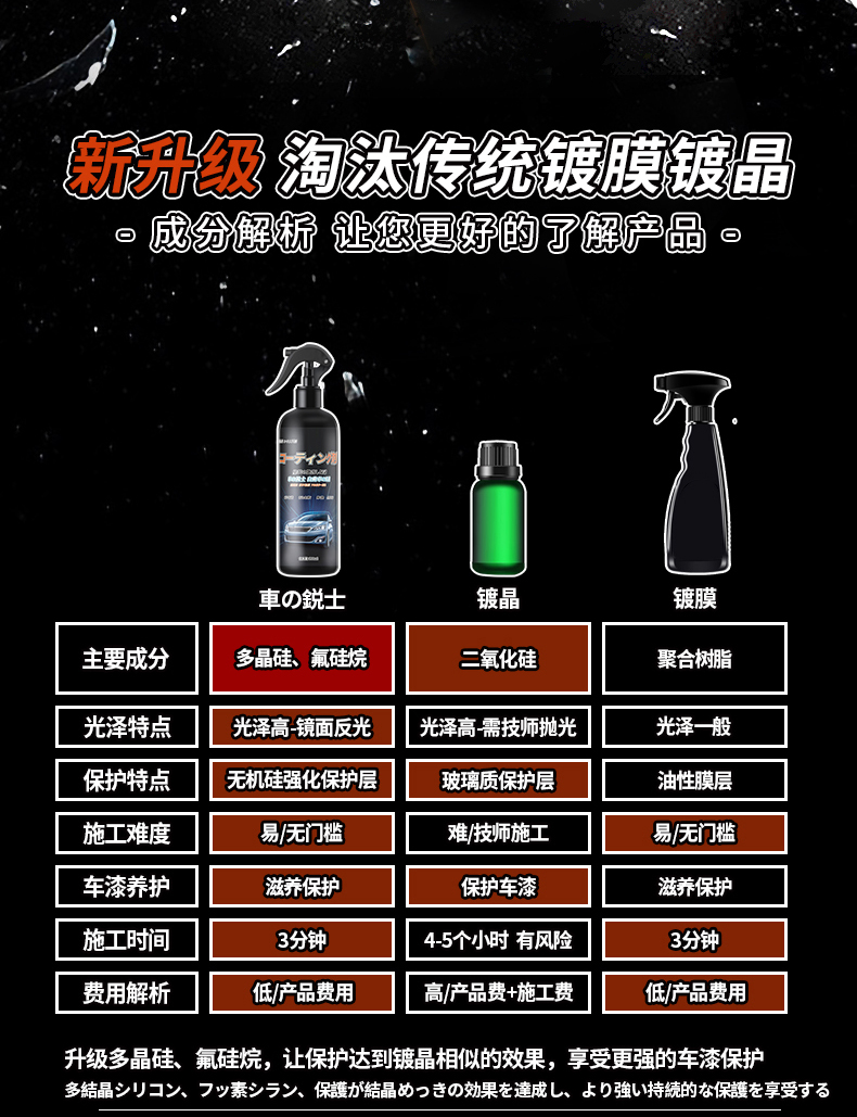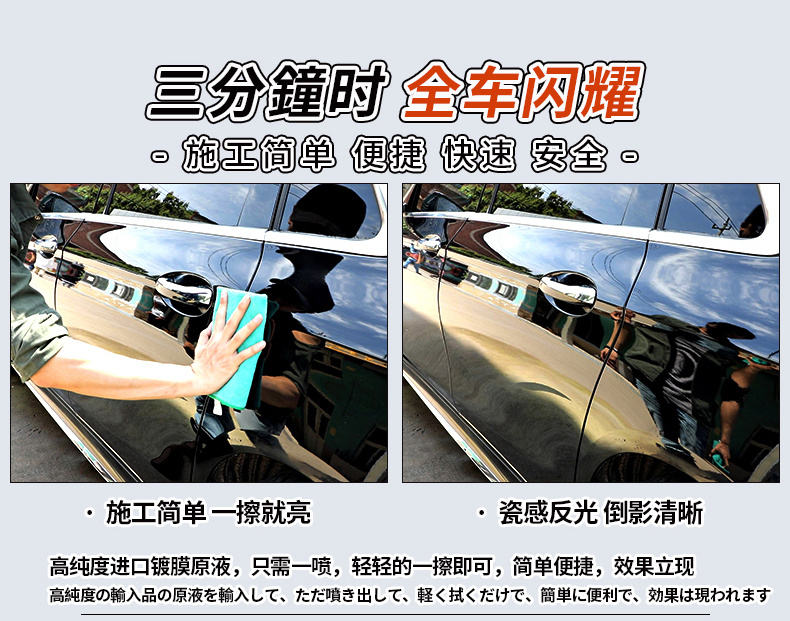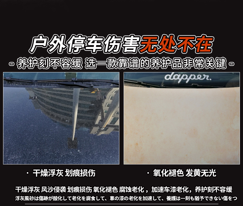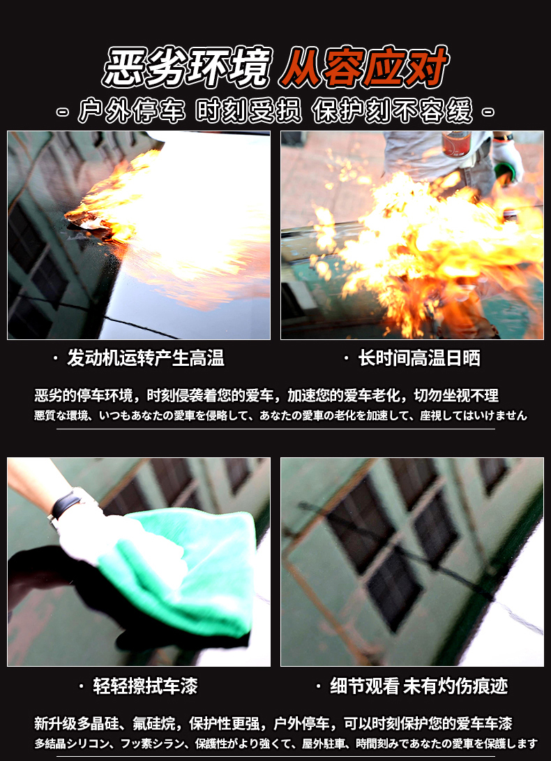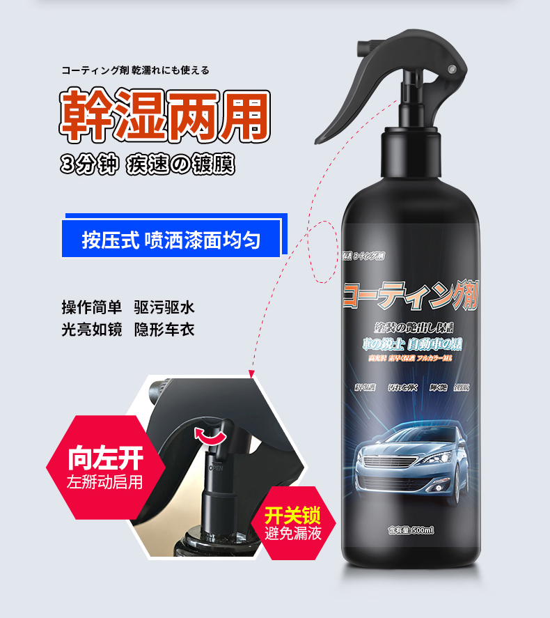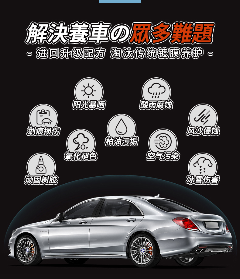 日本进口,升级配方,干湿两用,持久防护。360°保护车漆,适用于爱车各个部位!!