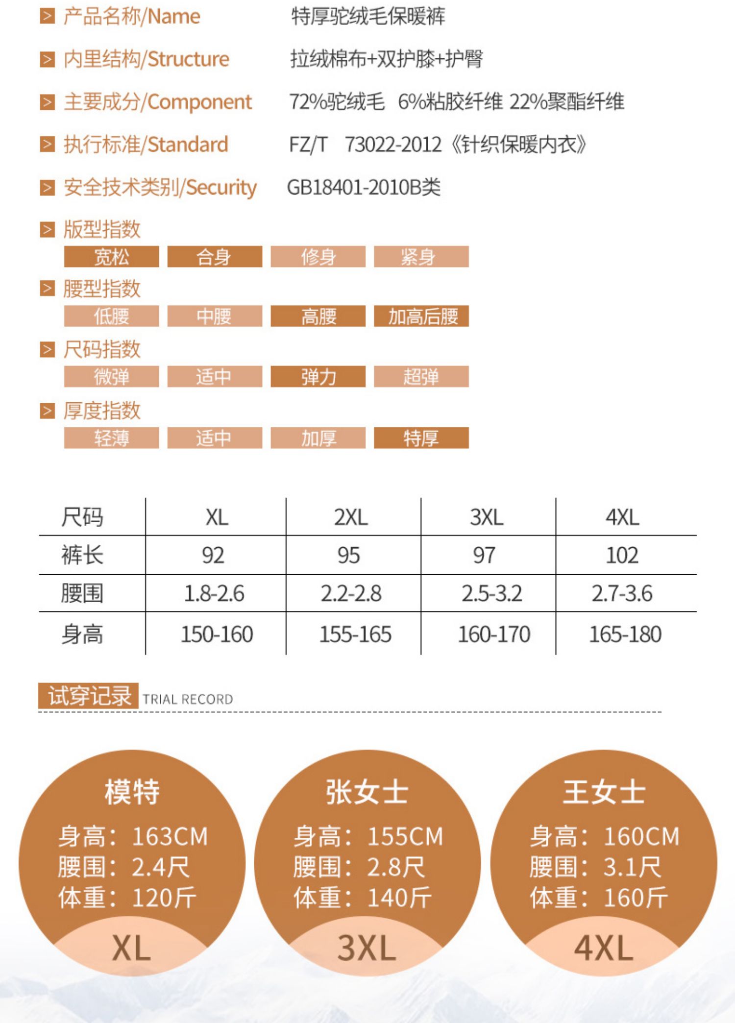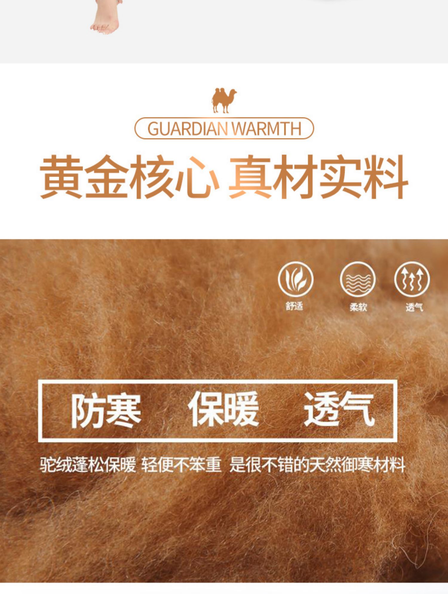【赠运费险】内蒙古特产精选驼绒,舒适保暖,不惧严寒,零下45°抗寒,3层加厚,温暖守护吗,高腰设计,更贴心,隔潮档湿,防风抗寒,蓬松保暖,中老年人过冬必备!