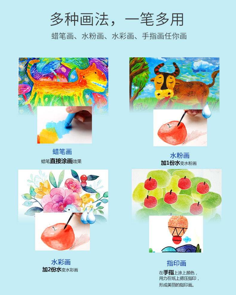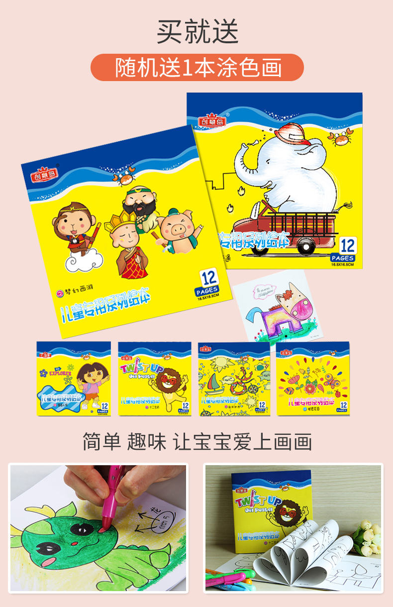 上色快,轻松画,颜色多,色鲜艳,轻松水洗,一笔多画。
