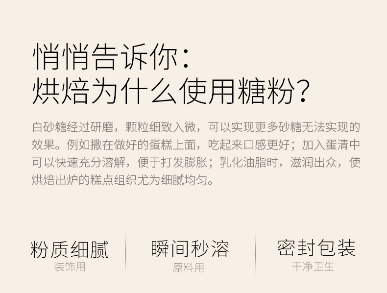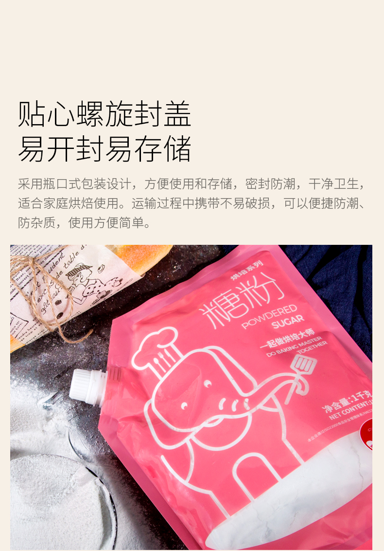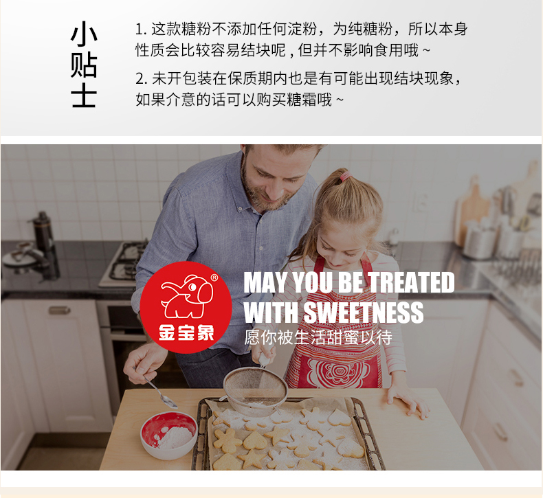 金宝象糖粉,颜色洁白,粉质细腻,家用烘焙糖粉专享,无论是从外观上还是触感上,都十分的细腻、轻盈,优惠数量有限,赶紧下手~
