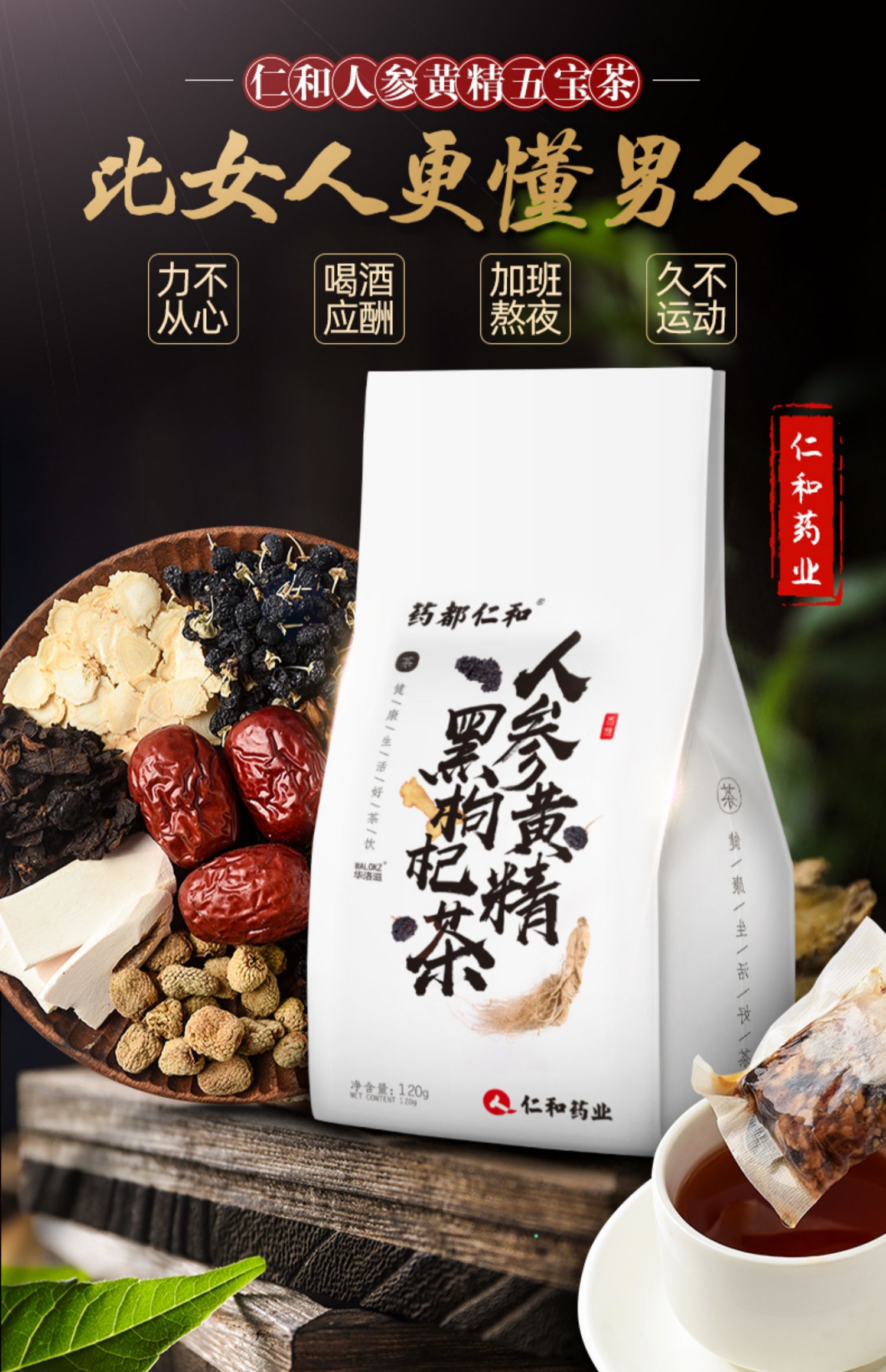 【买2发3!买3送5!】加班熬夜,应酬喝酒太伤身!药都仁和熬夜养生五宝茶喝起来~让你找回男人的精力旺盛!草本原料,科学配比~独立小茶袋,轻松冲泡喝,喝出好精力,让她对你爱不释手!【赠运费险】