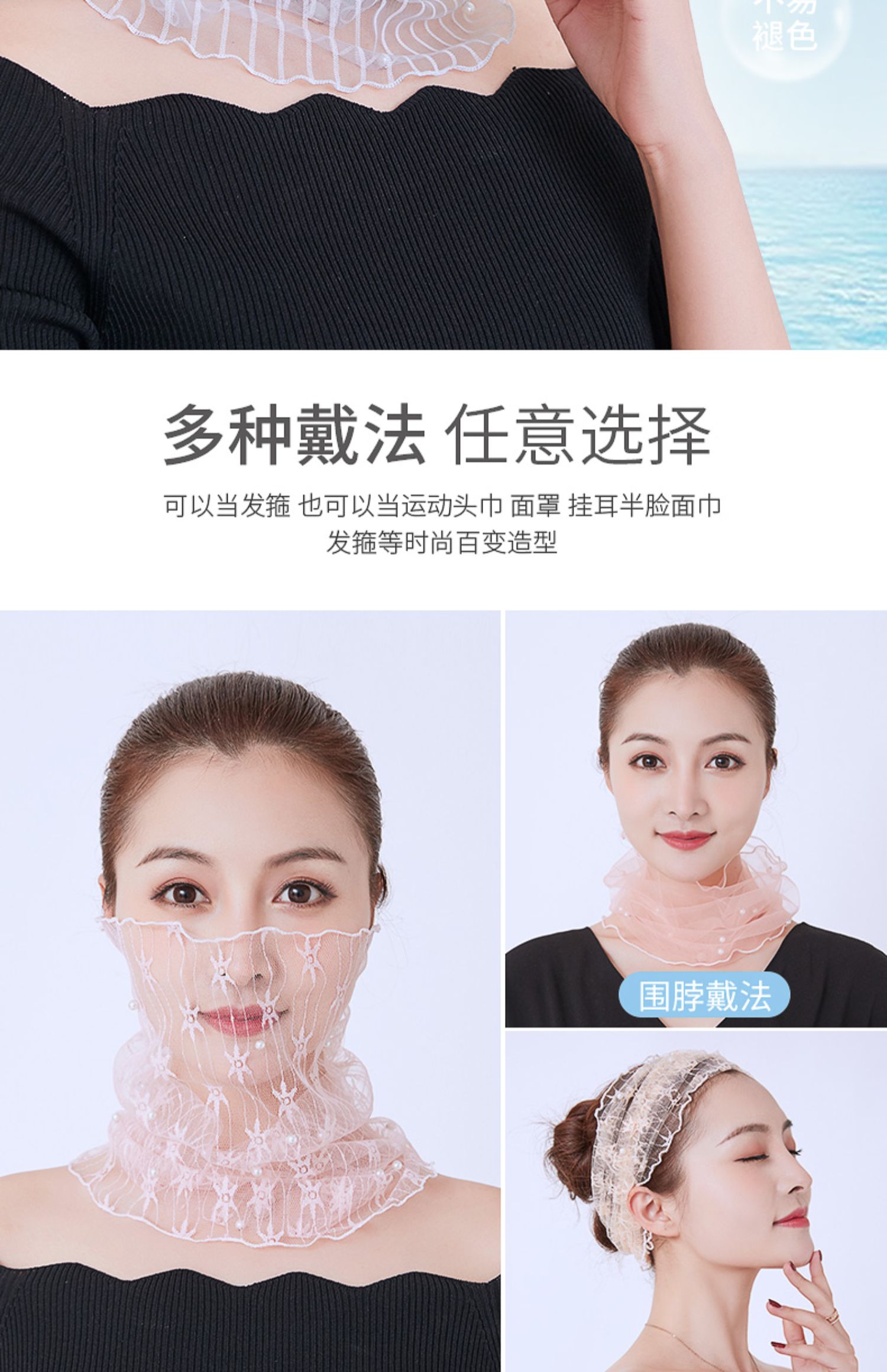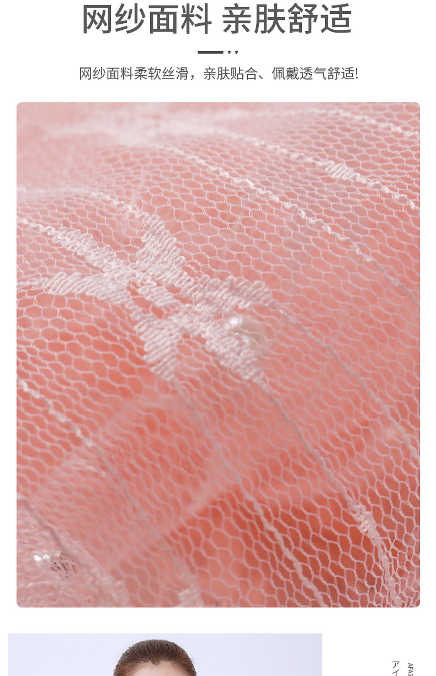 网纱面料,亲肤舒适,性感蕾丝,珍珠点缀,多种戴法,可以当发箍,也可以当运动头巾、面罩!多款式可选,超值!