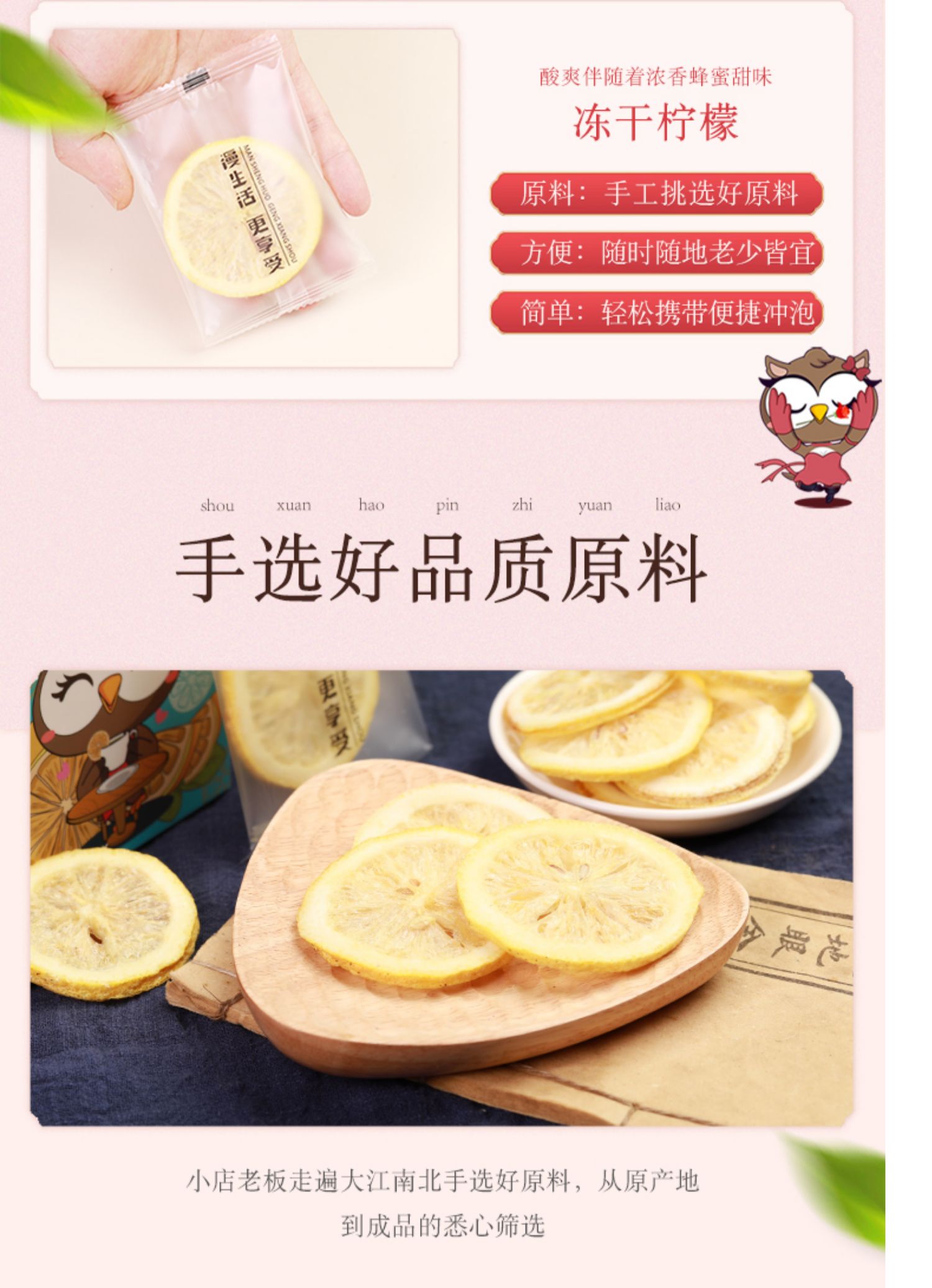 今日推荐:【买一送一实发两盒】皮薄质匀,清新果香,低温冻干技术,还原柠檬鲜果的清香,每片柠檬上都抹了选自大山里的蜂蜜,酸甜好喝,轻松冲泡,多C多漂亮,每天一杯水润润,轻松做回白美人~