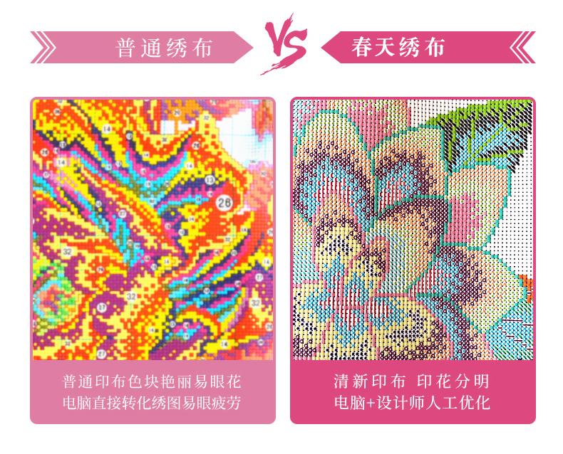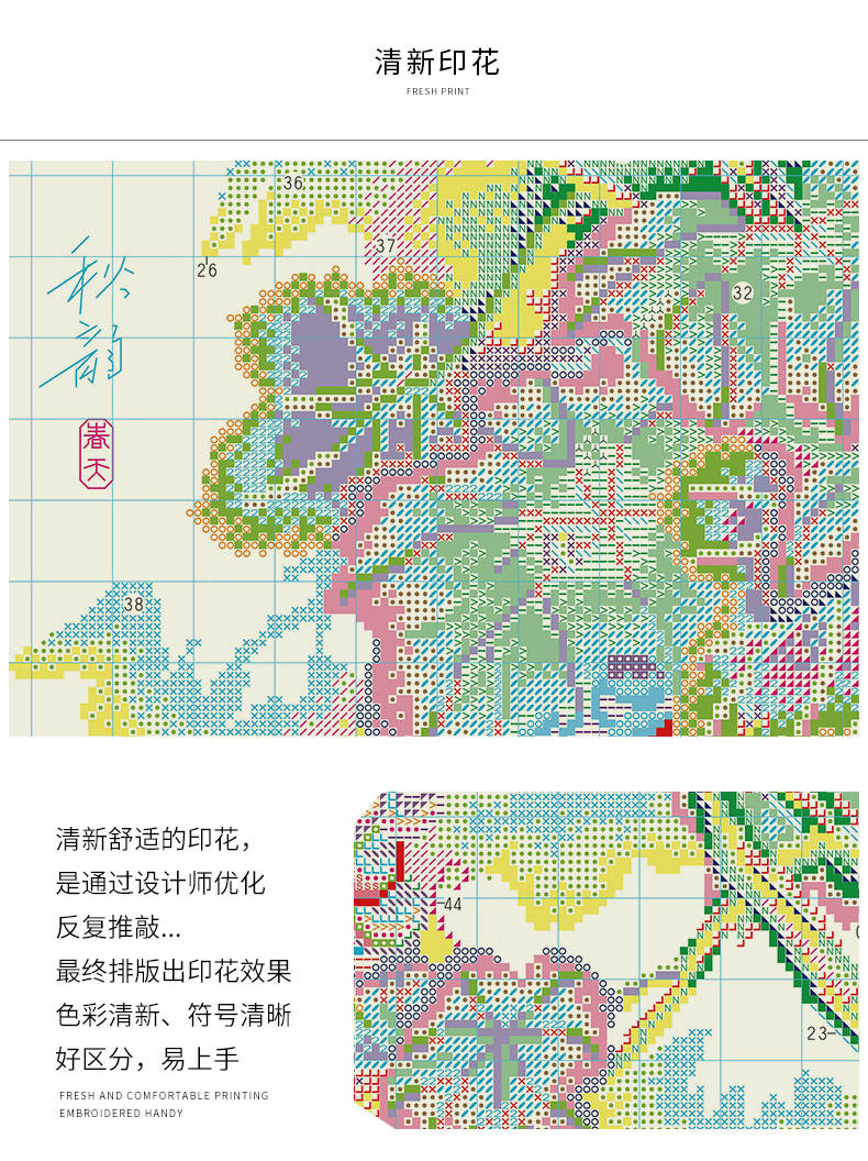 画面创意、定色、勾勒、反复推敲,千锤百炼。终图案效果印花清晰无乱针、色彩鲜艳、过度自然、层次感强烈。春天十字绣品牌原创设计,传达心灵的宁静与美好乐趣。