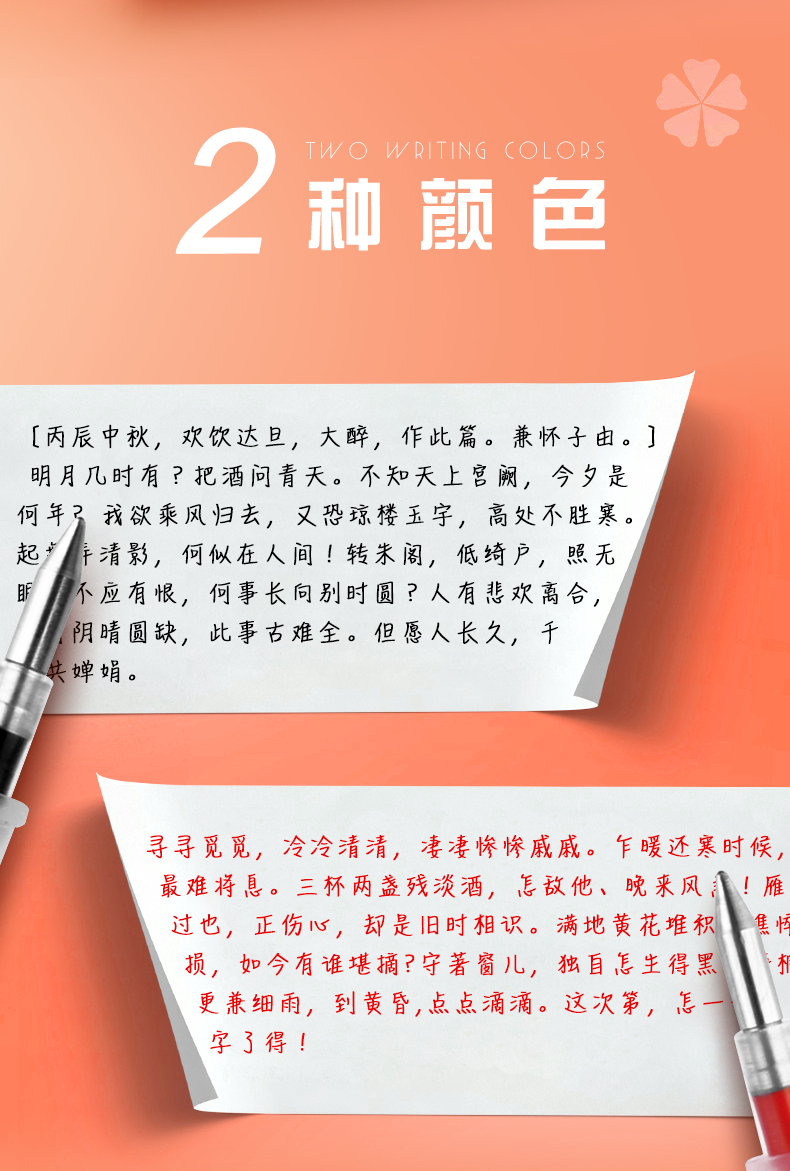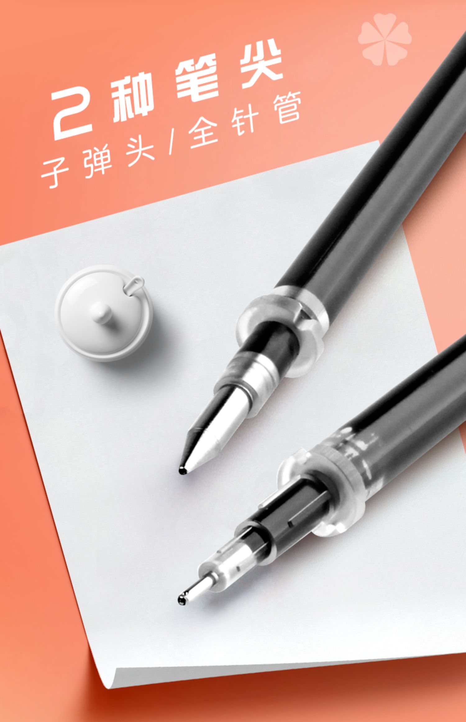 好品质,大容量,一体式全针管设计,精密碳化钨珠球,出墨均匀,不易断墨漏墨,书写一气呵成,速干不渗纸。