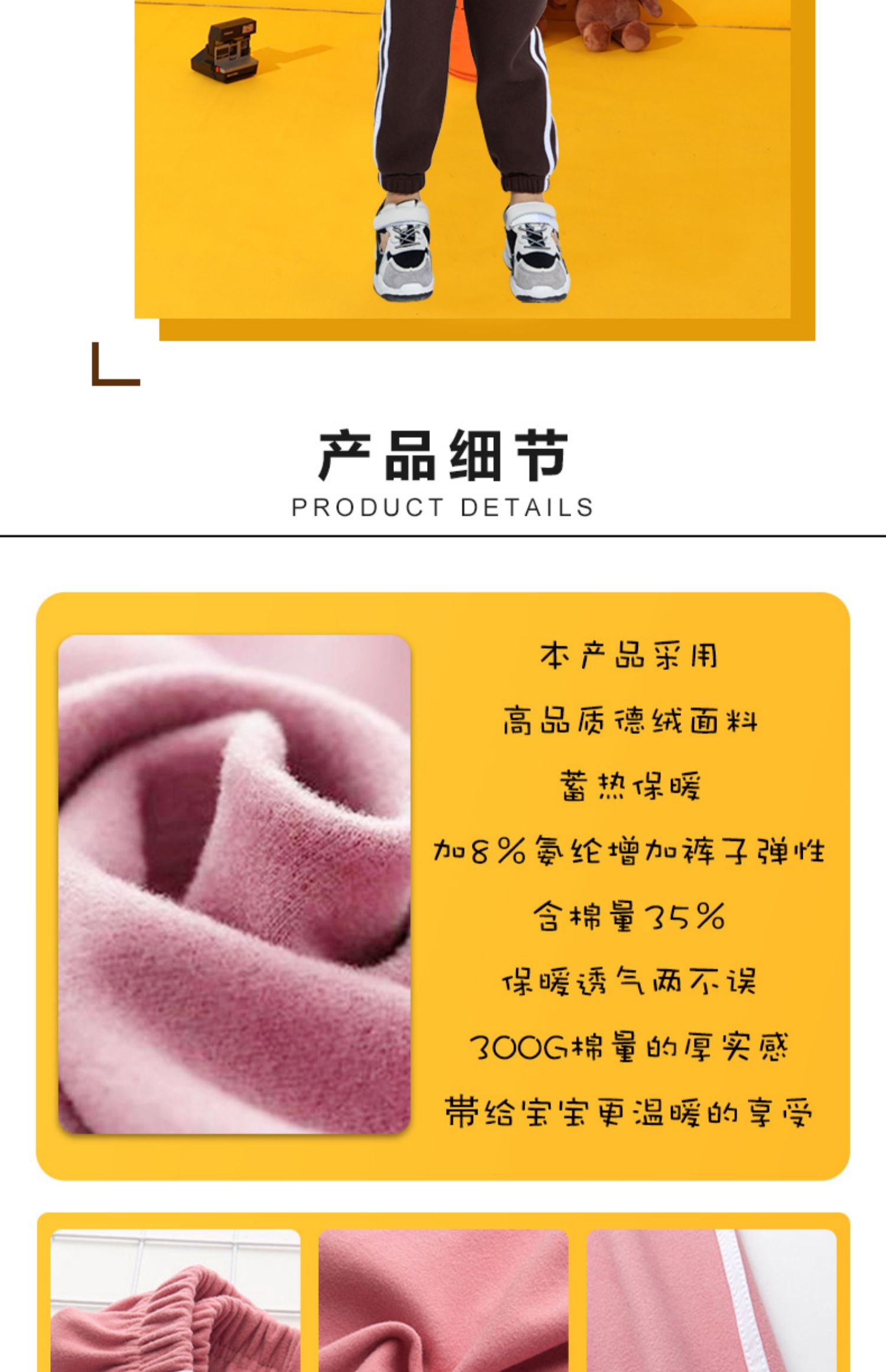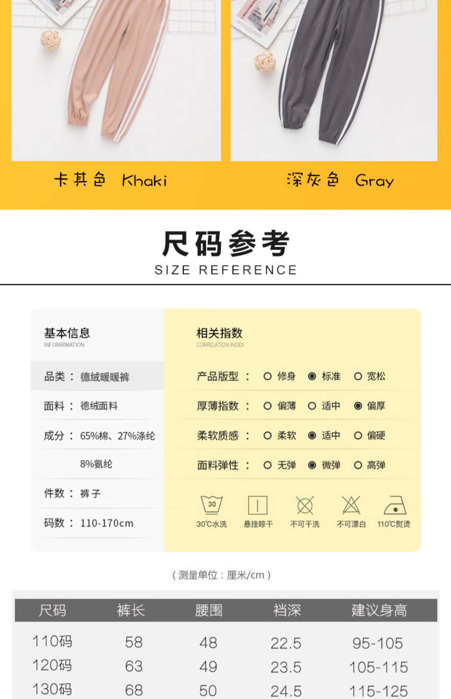 男女童装双条纹德绒暖暖裤,舒适百搭,怎么穿都好看,柔软亲肤,保暖透气两不误,300g棉量的厚实感,带给宝宝更温暖的享受~