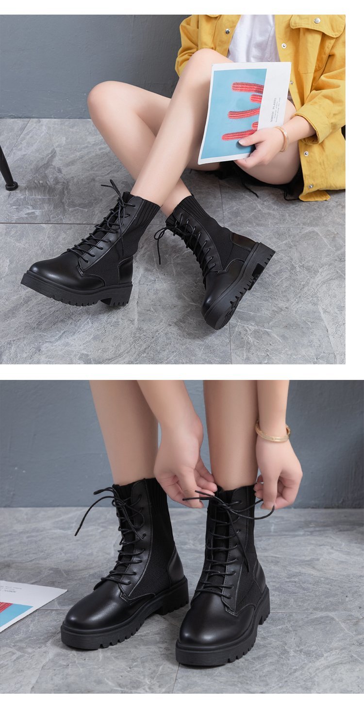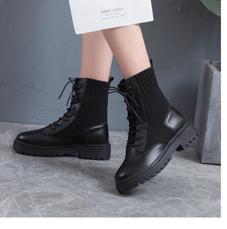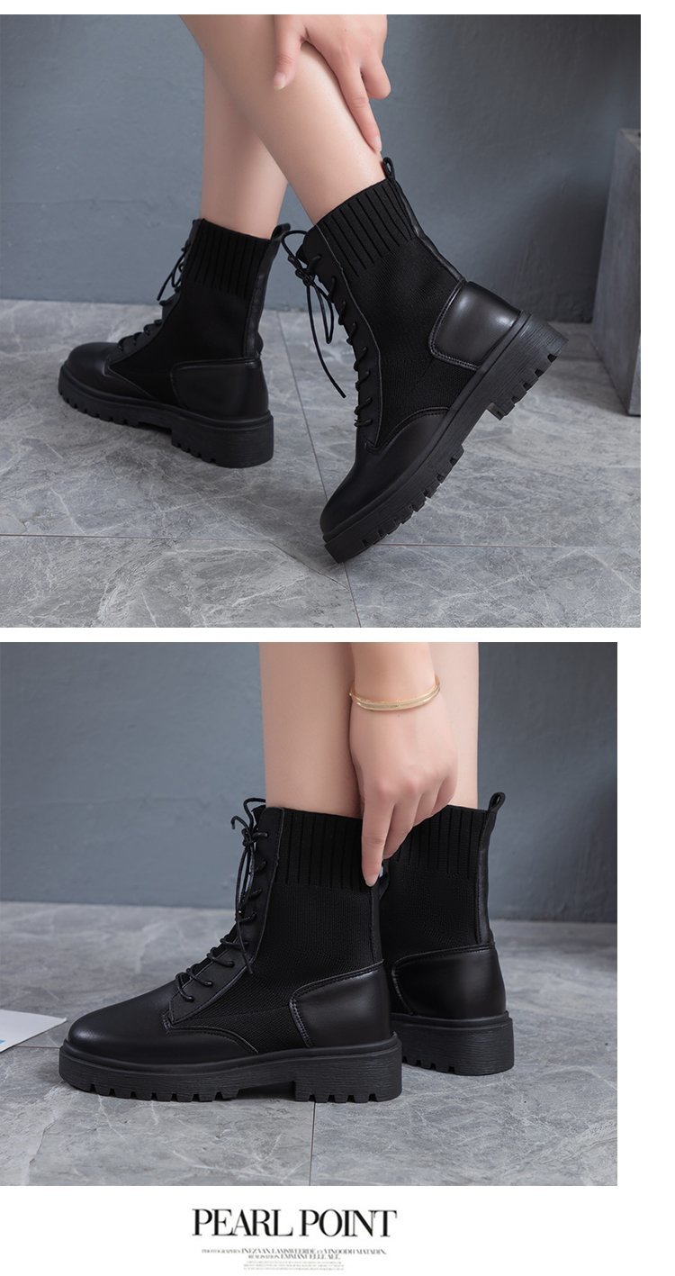 新款英伦风弹力毛线筒马丁靴,舒适贴足,防滑耐磨,休闲百搭,时尚有型,防滑耐磨,经久耐穿,玩转潮流!!!