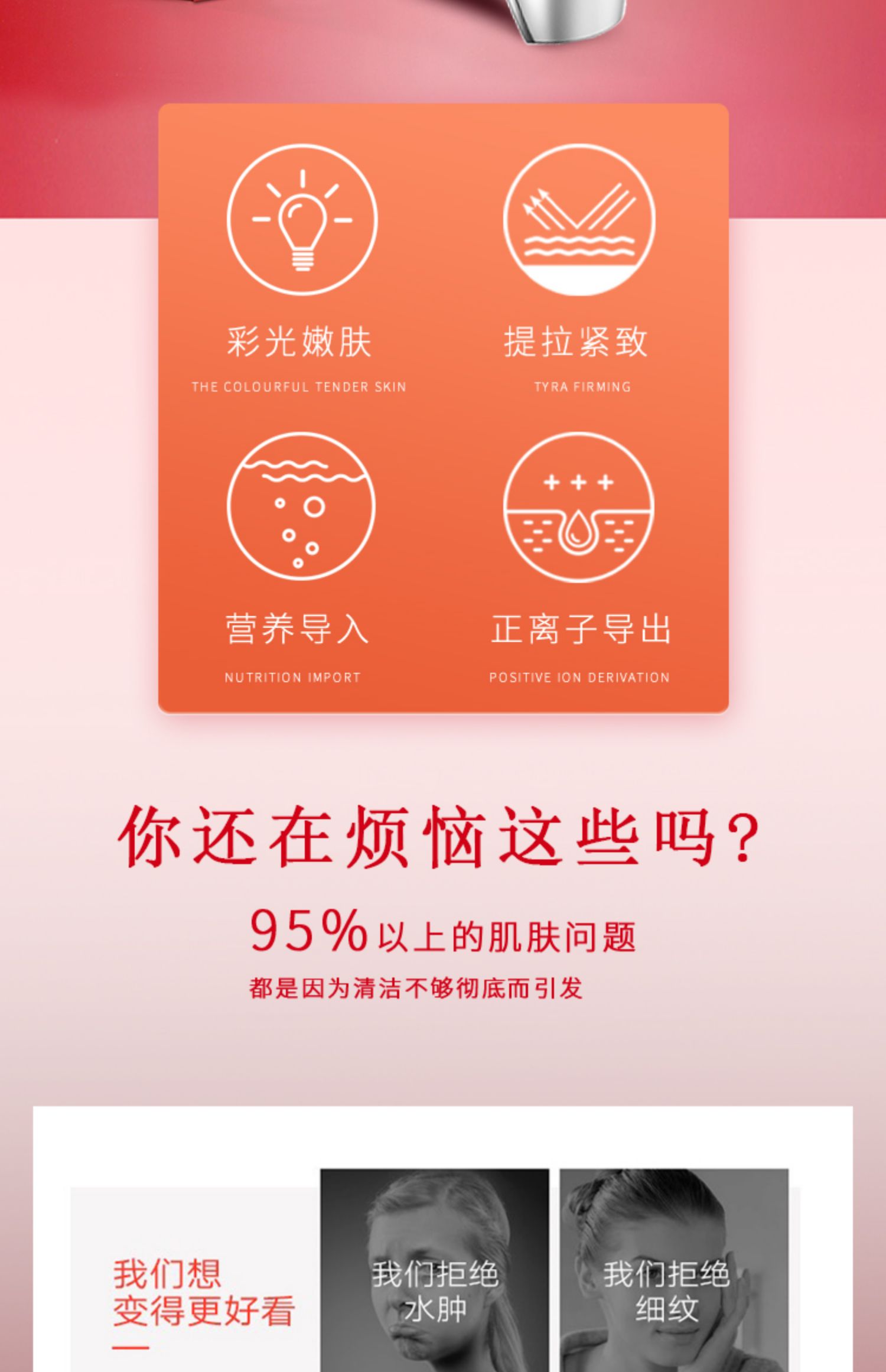 光子嫩肤美容仪!导出导入精华修补肌肤,深层清洁毛孔污垢,红蓝双光嫩肤,眼部护理提拉紧致洁面,一机多用!温感提拉祛除细纹,打造V脸,让肌肤重回18岁嫩白肌!