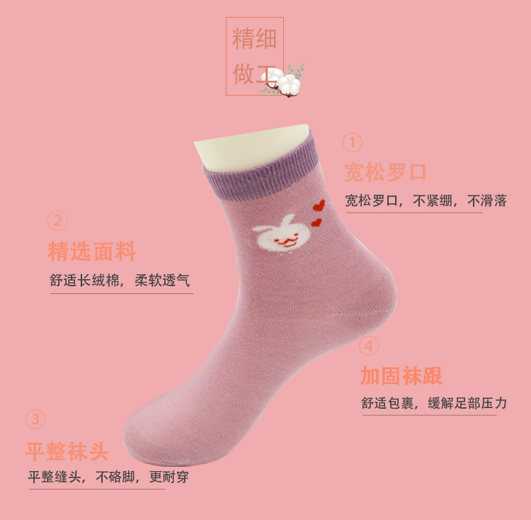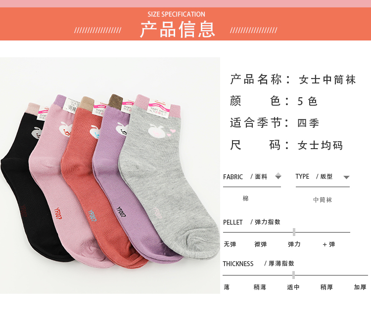 采用优质新疆精梳棉,精细做工,弹性好不紧绷,柔软舒适,透气不闷脚,吸汗防臭,不起球不紧绷,多色可选,秋冬里的高颜值时尚百搭中筒袜!