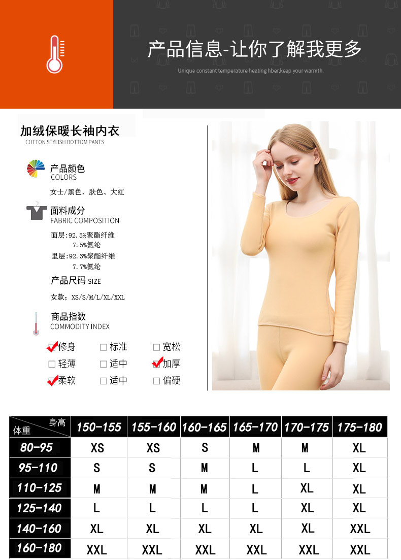 精选优质黄金绒,保暖性能提升1.5-2倍,贴身保暖自然透气,优质绒内里不掉毛,无静电零摩擦不起球。