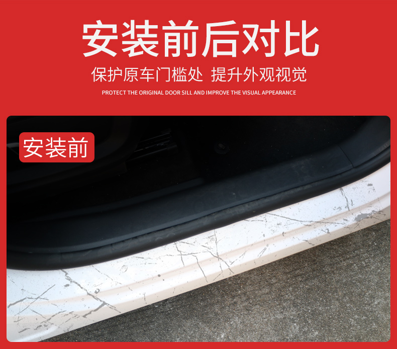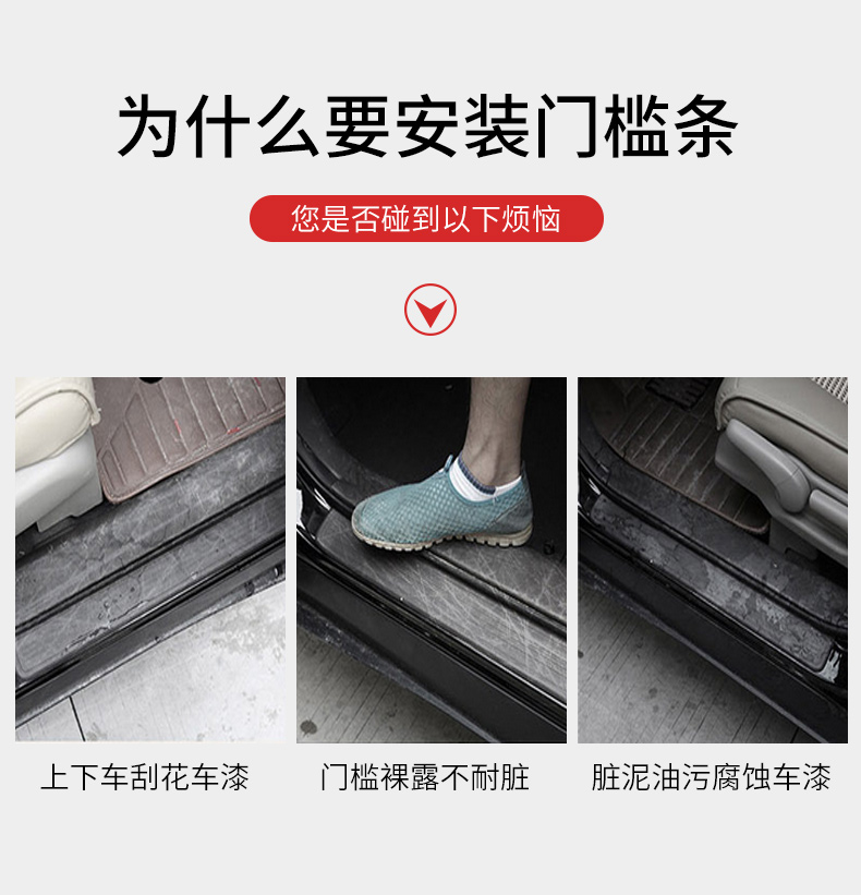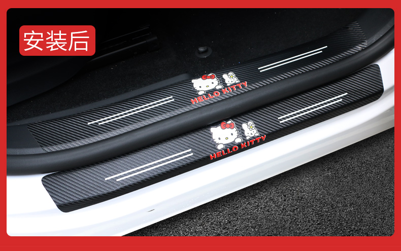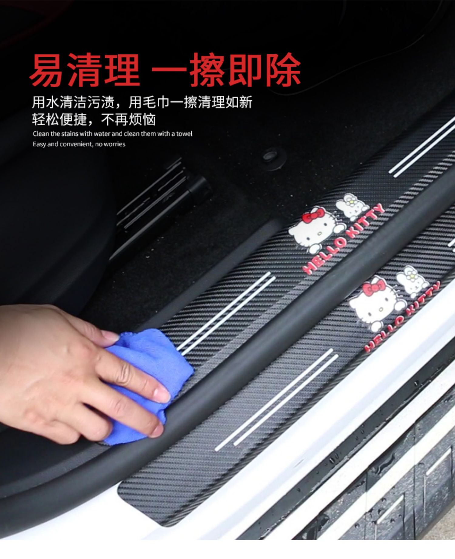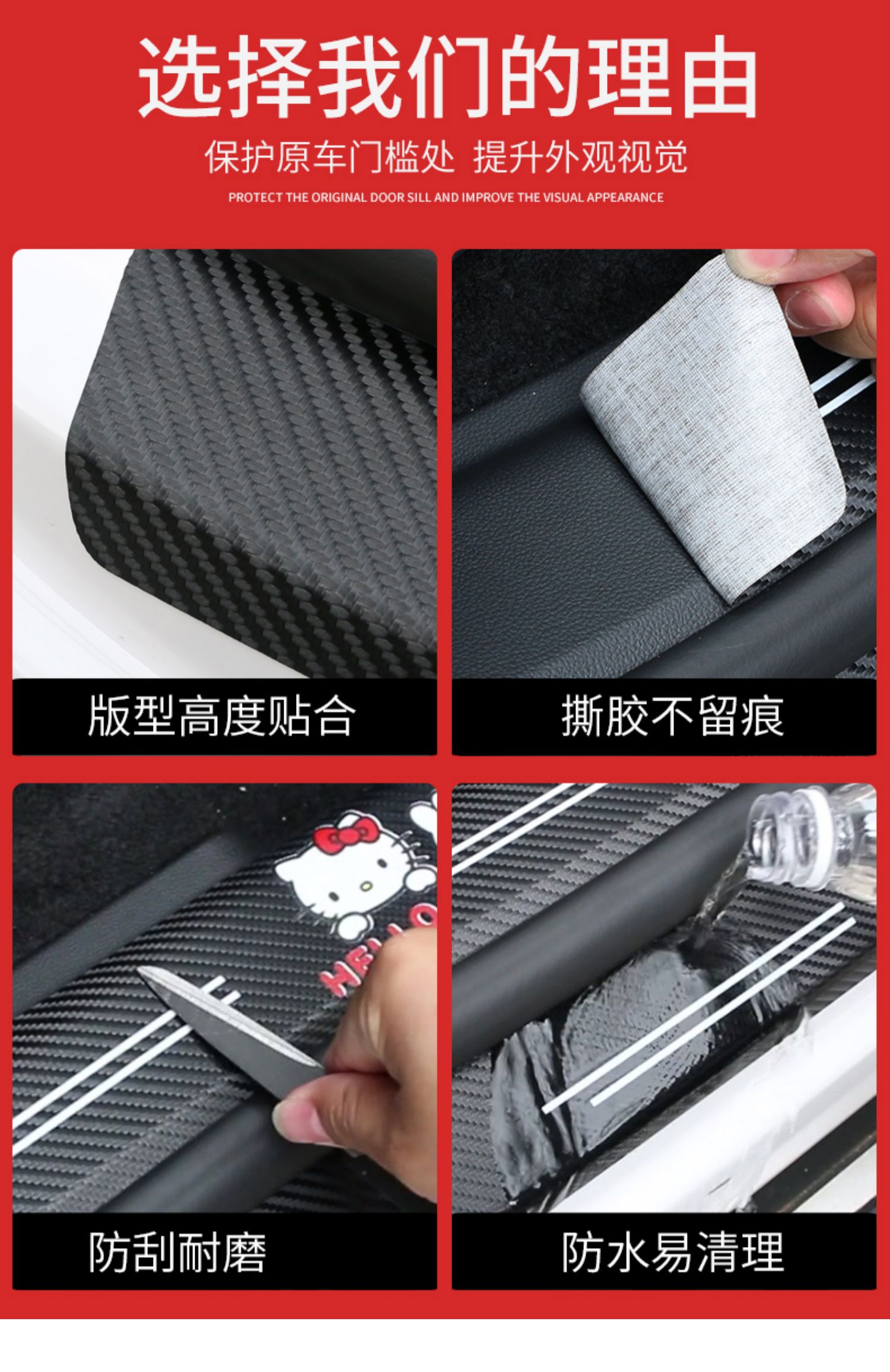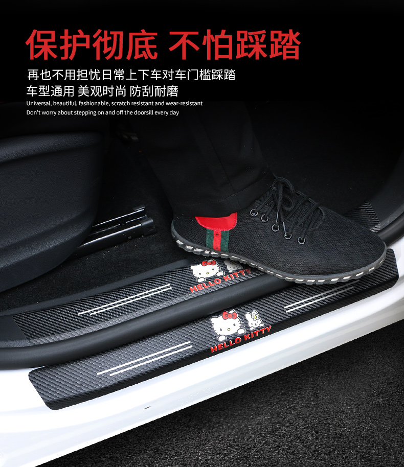 加厚材质,碳纤纹门槛条,保护原车门槛处,提升外观视觉,自带粘胶,不留胶,防水耐脏,防刮耐磨,多种图标可选,个性创意,可爱动漫,美观时尚,满足您的需求!