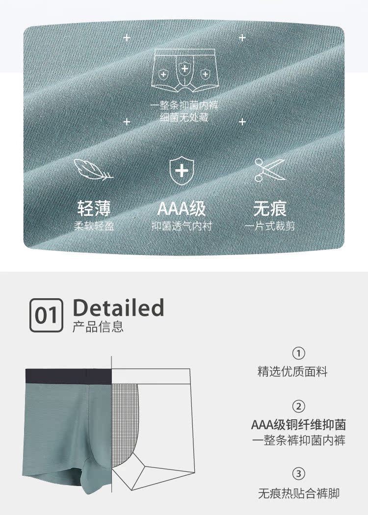 超值3条,莫代尔面料,无痕一片式裁剪,做工精致,手感细腻,速干透气,柔软亲肤,穿着超舒适,AAA级长效抑菌,呵护您的每一天~