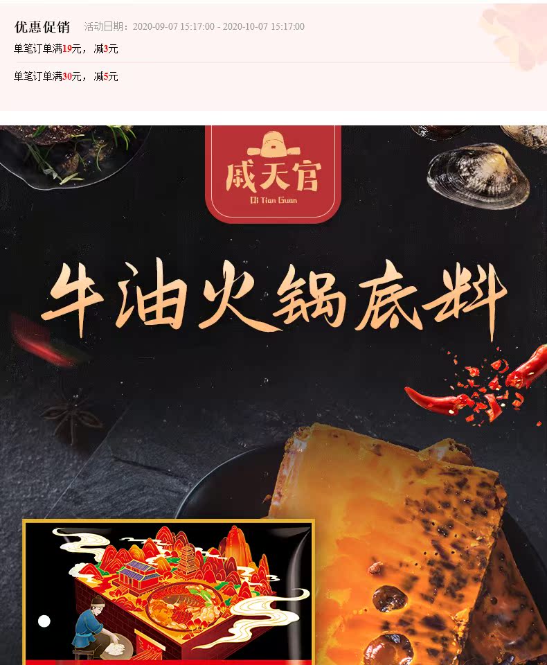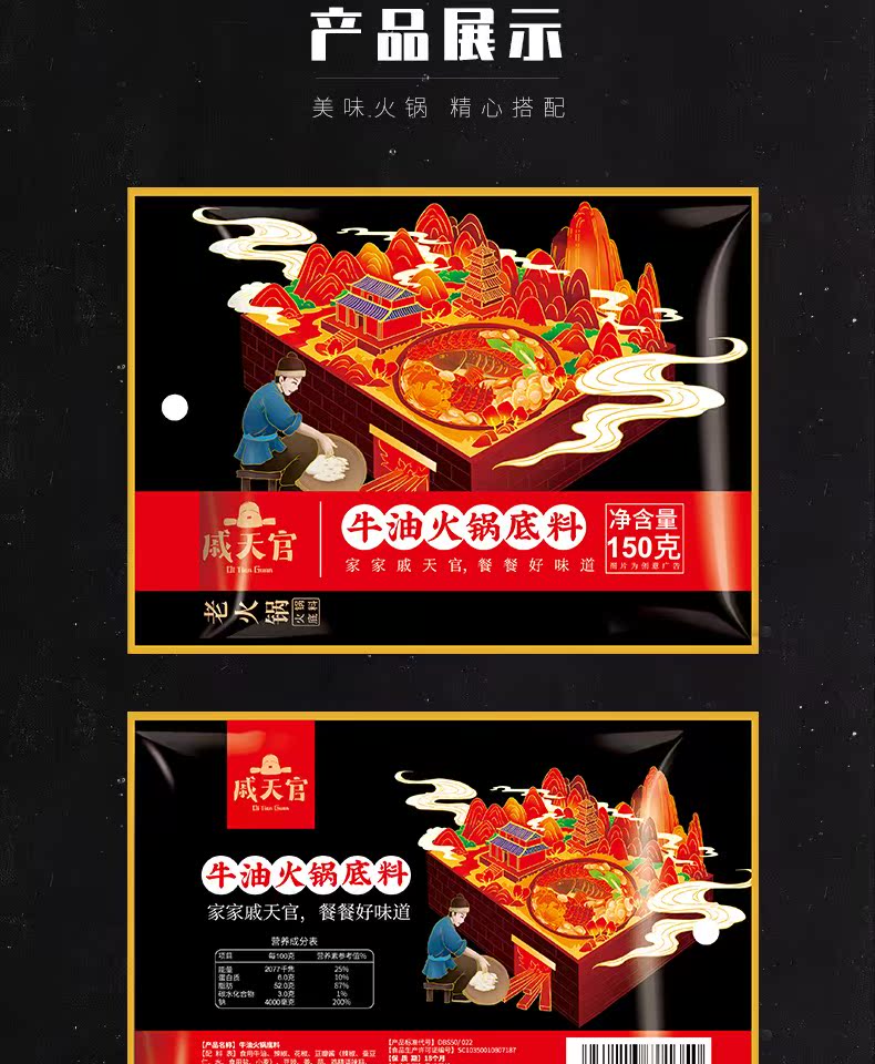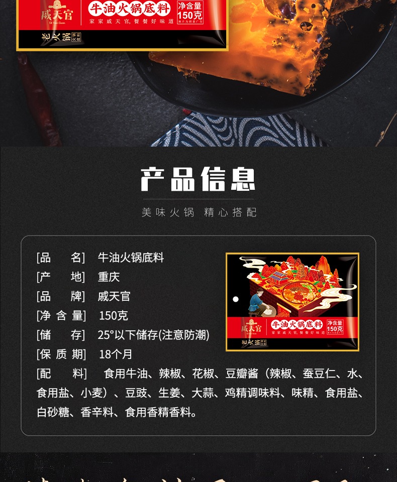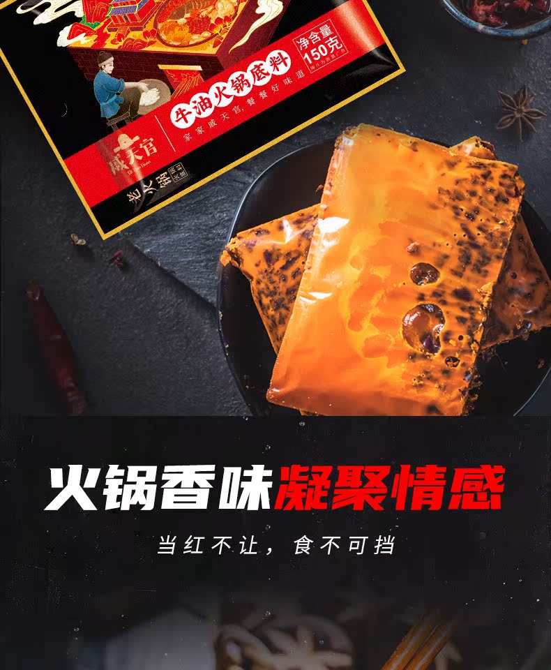 戚天官牛油火锅底料,实体店的同款味道!汤红油亮,久煮不淡,一料多用,火锅炒菜,麻辣香锅串串香都可以!【赠运费险】