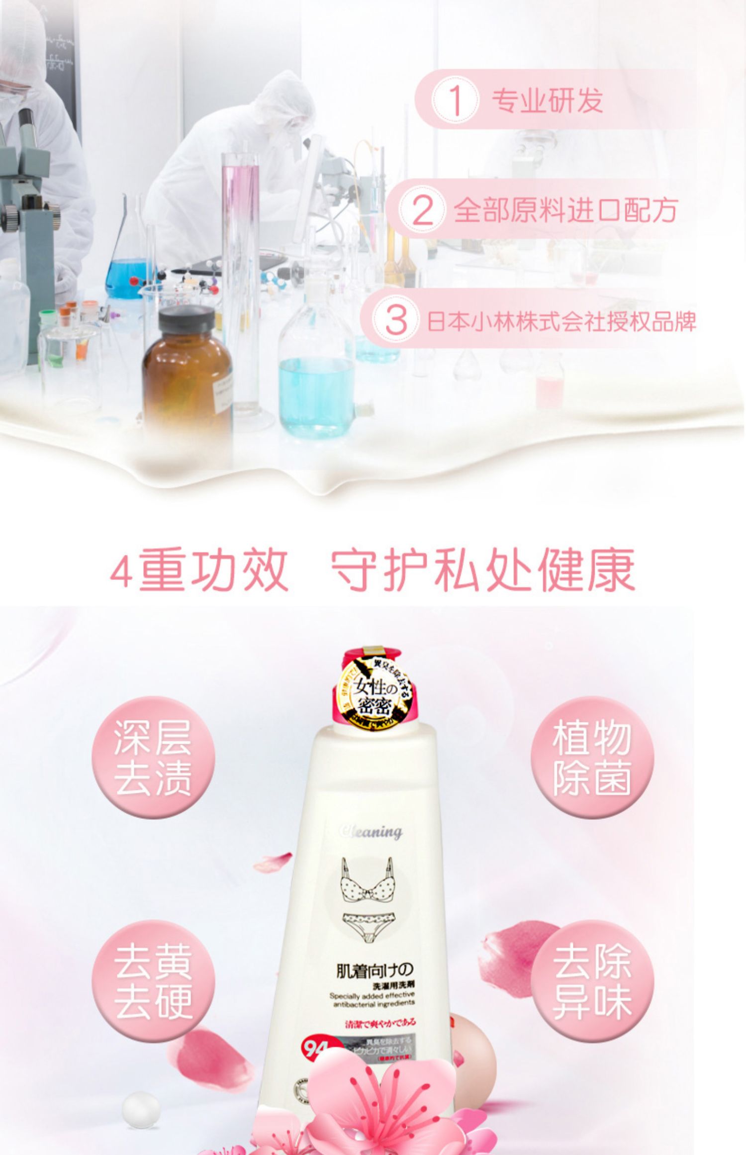 【赠运费险】日本小林,品质值得信赖。专业内衣裤洗涤剂,日本原料进口配方,天然植物除菌,轻松去除血渍污渍,温和不伤手,不含荧光剂,去黄去硬,洗后柔软舒适。内衣一定要用专业的洗衣液