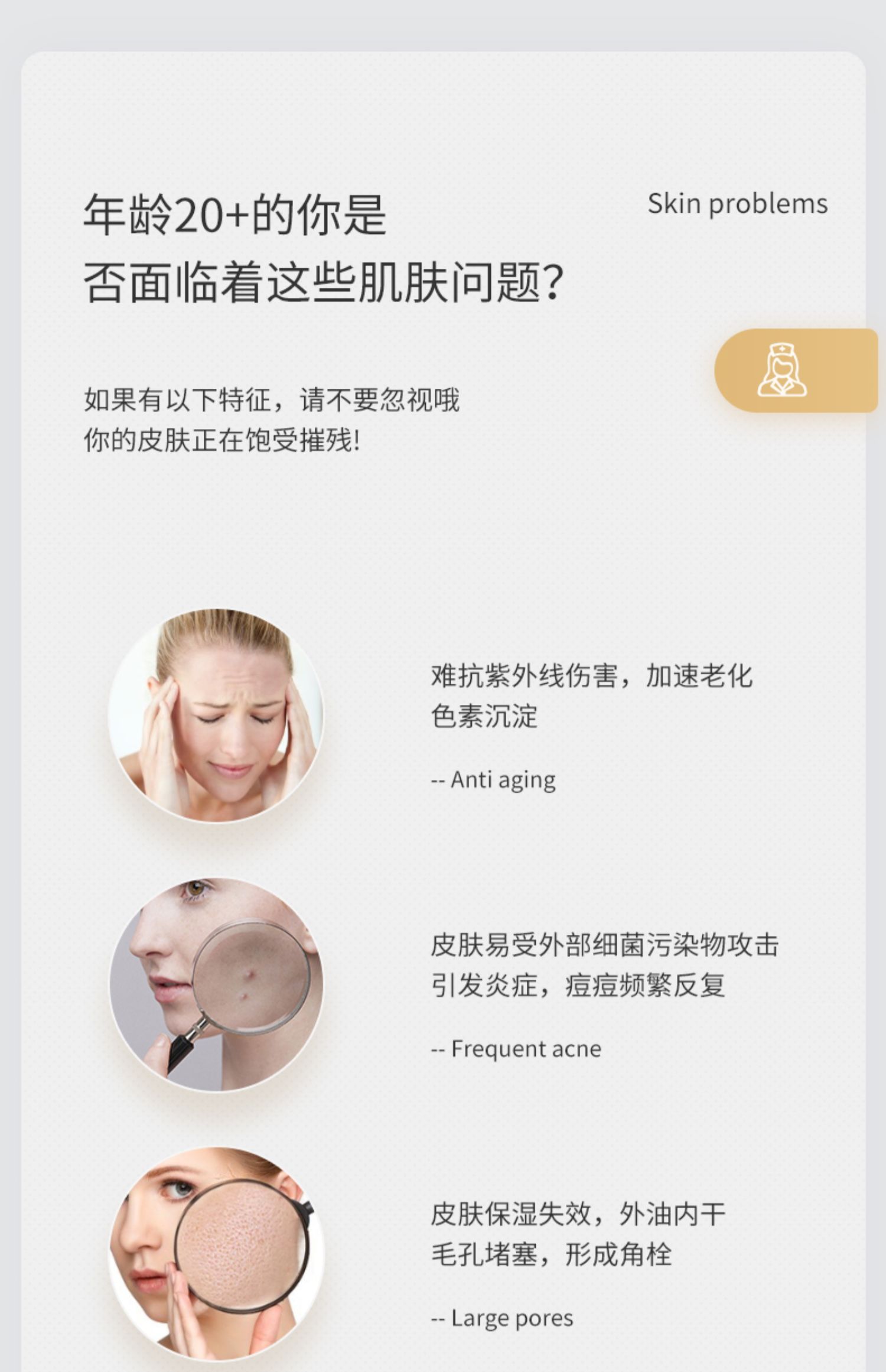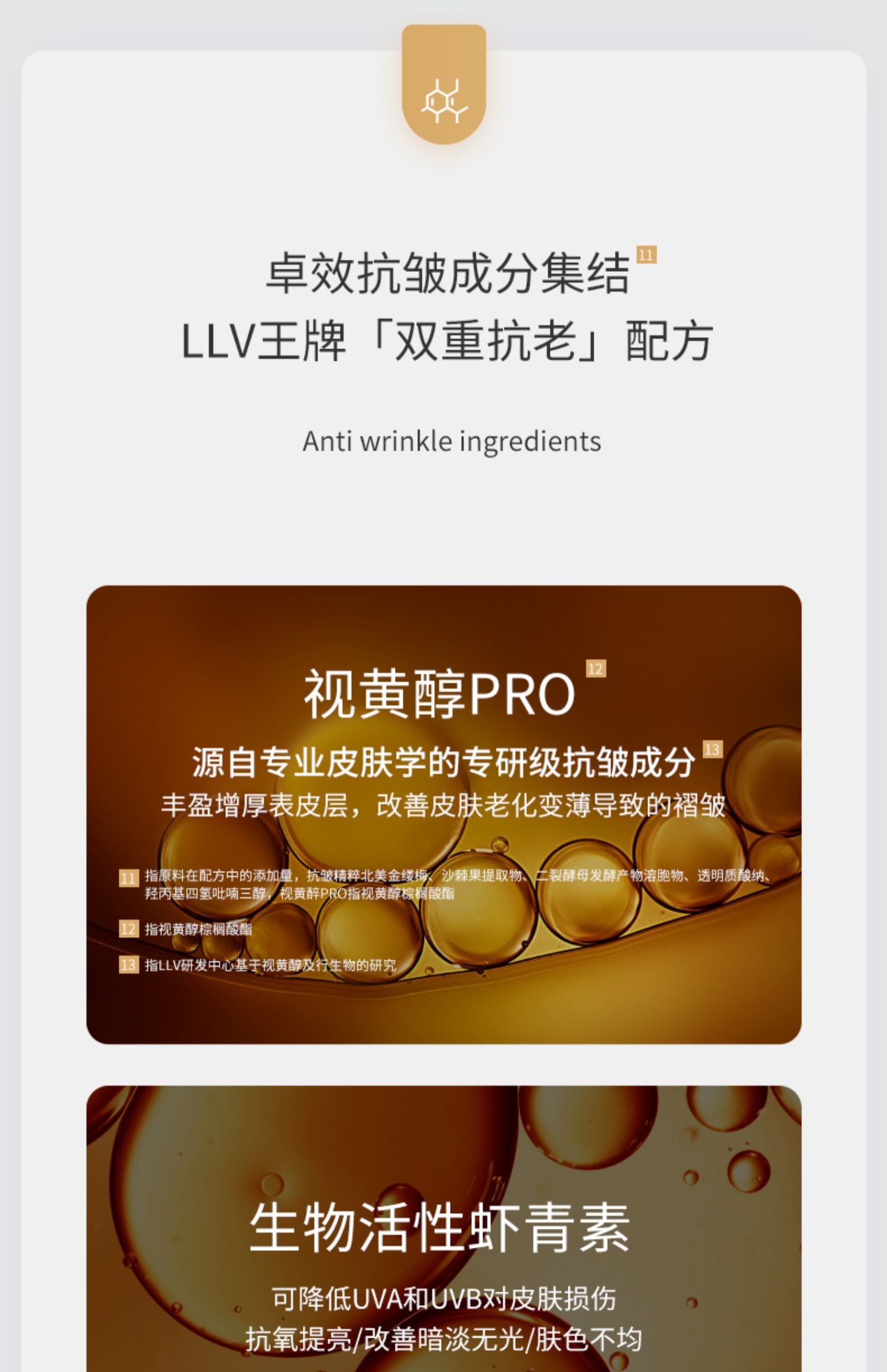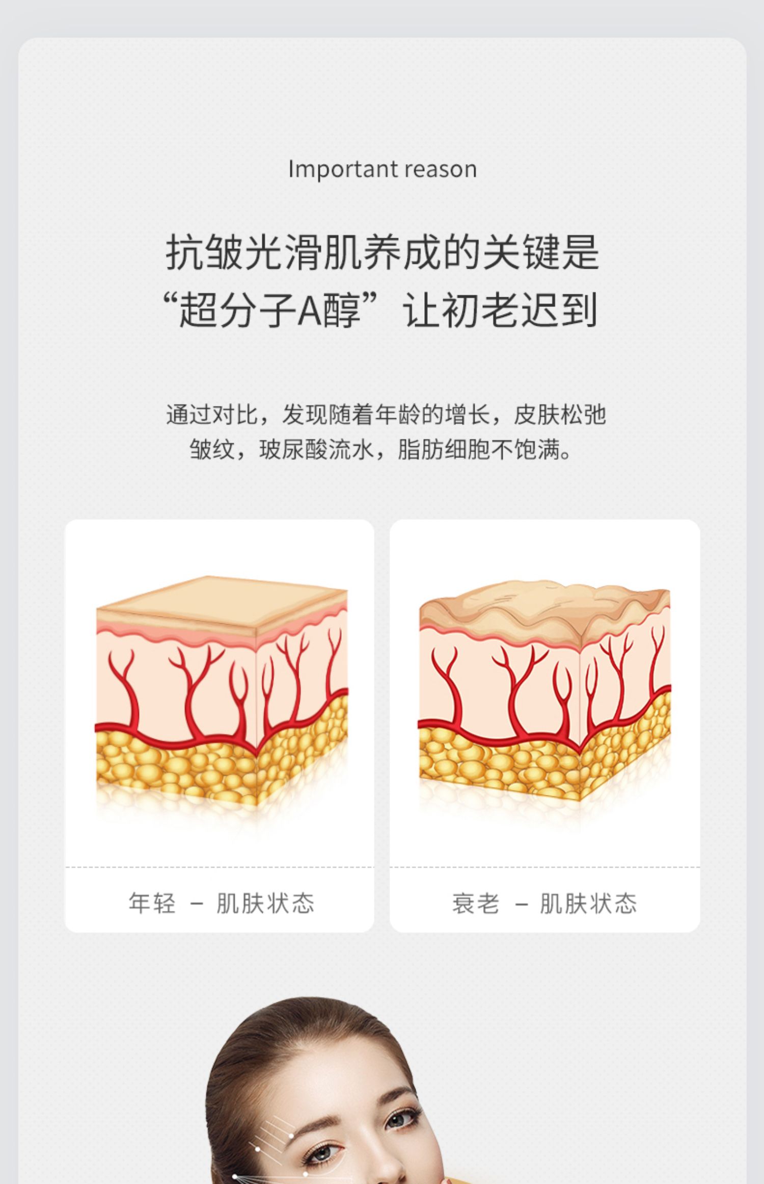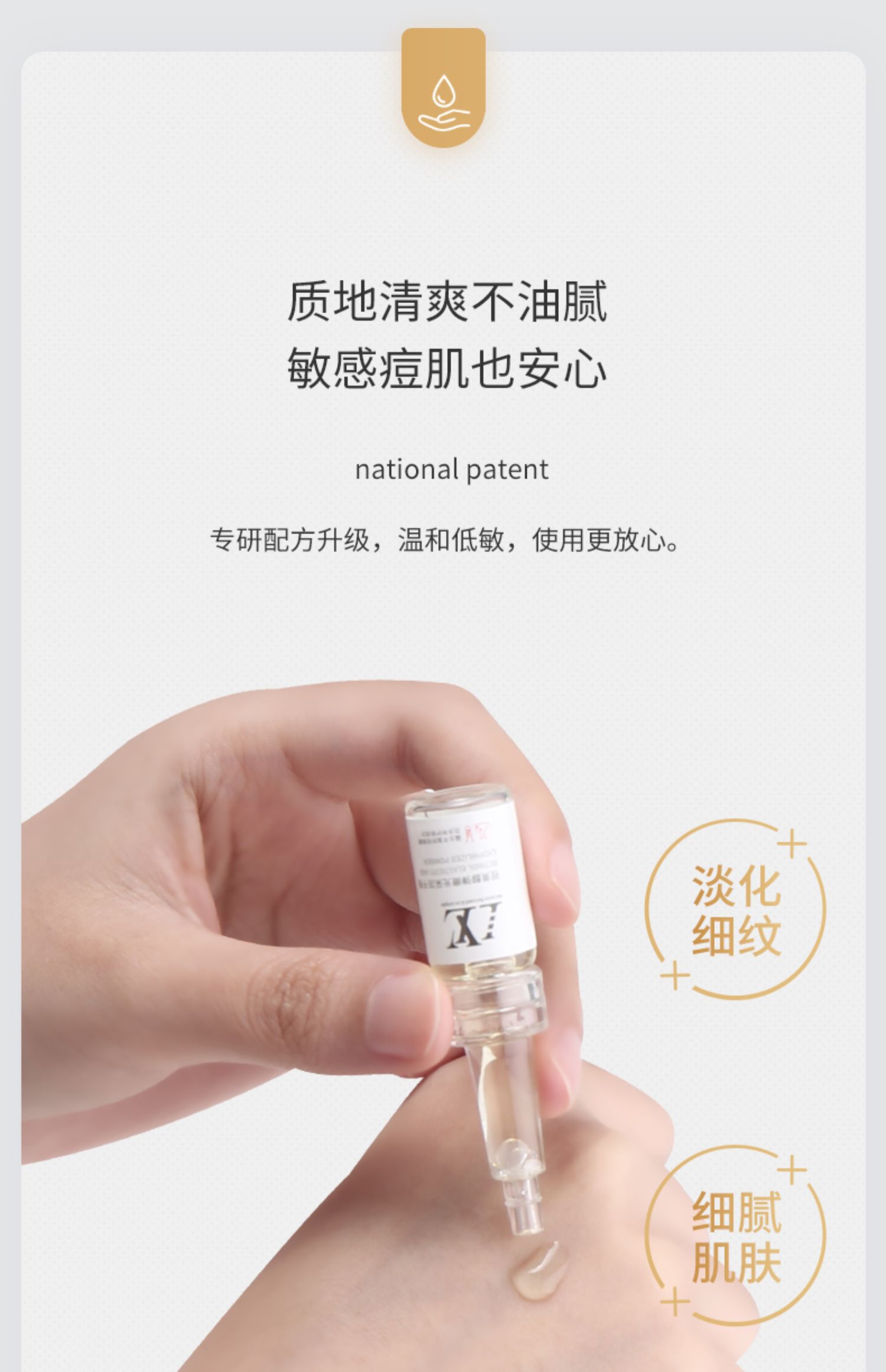 获得两项抗衰老成分专利,视黄醇+虾青素,双重抗老,提拉紧致肌肤,淡化细纹,重拾少女肌,