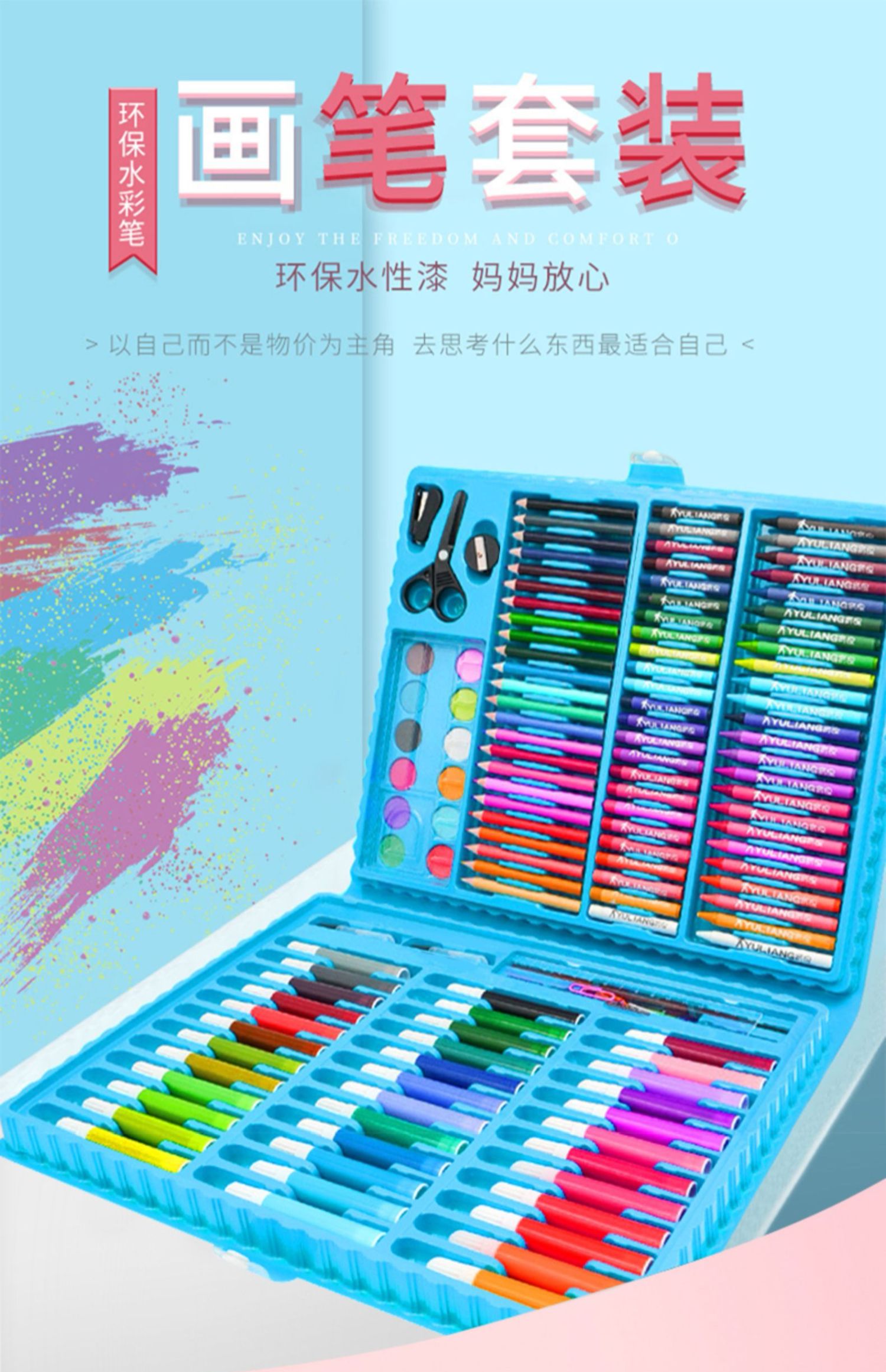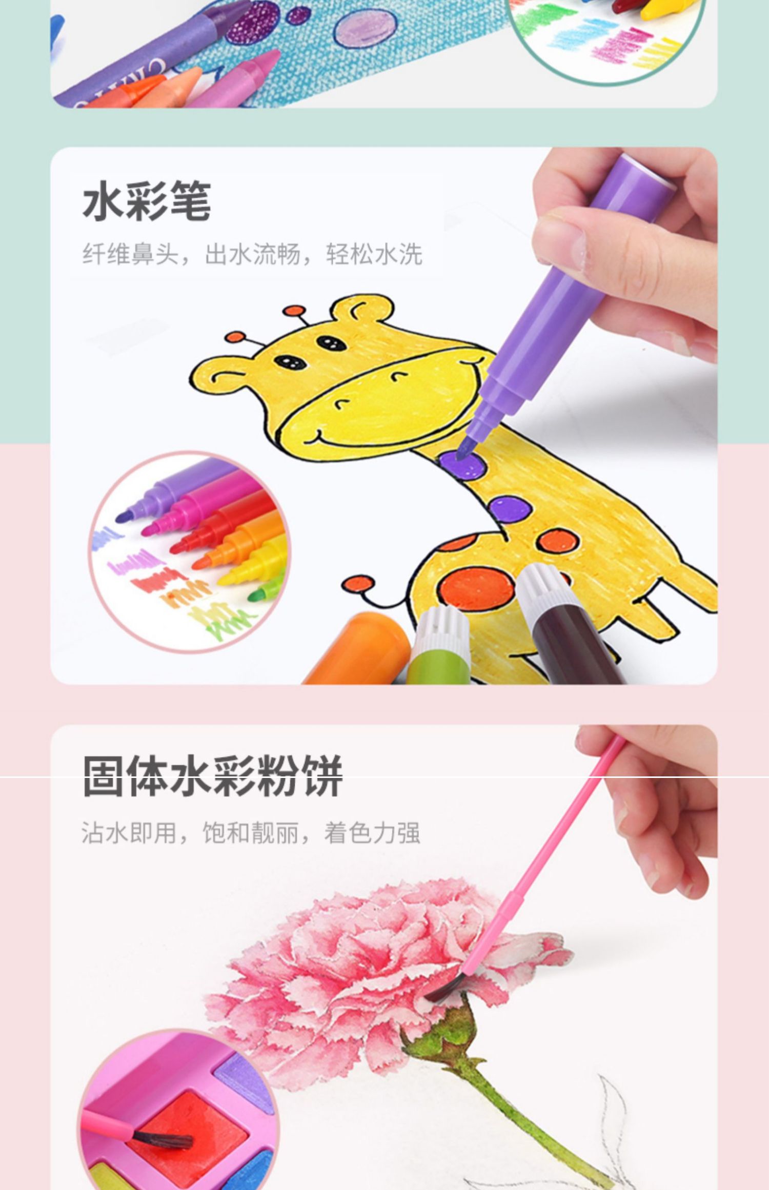 水彩笔绘画套装,色彩鲜艳,颜色顺滑,环保水性漆,可水洗,妈妈用得放心,多种画笔工具组合,培养孩子的绘画乐趣!