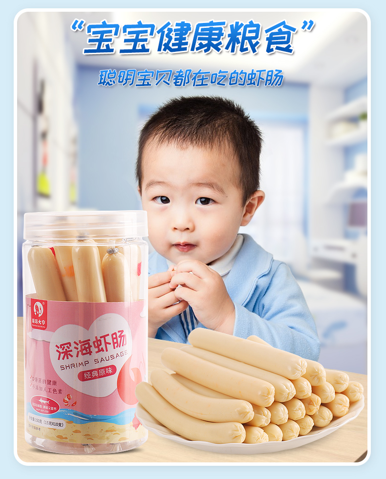 【第2,3件0元,拍3件共30根仅需22.9元】聪明的宝宝都在吃它!超级补钙无添加虾肠!宝宝辅食零食!肉质鲜嫩,易于吸收,清爽不腻,营养丰富健康美味。帮助促进牙齿成长,强化健康,增强免疫力~