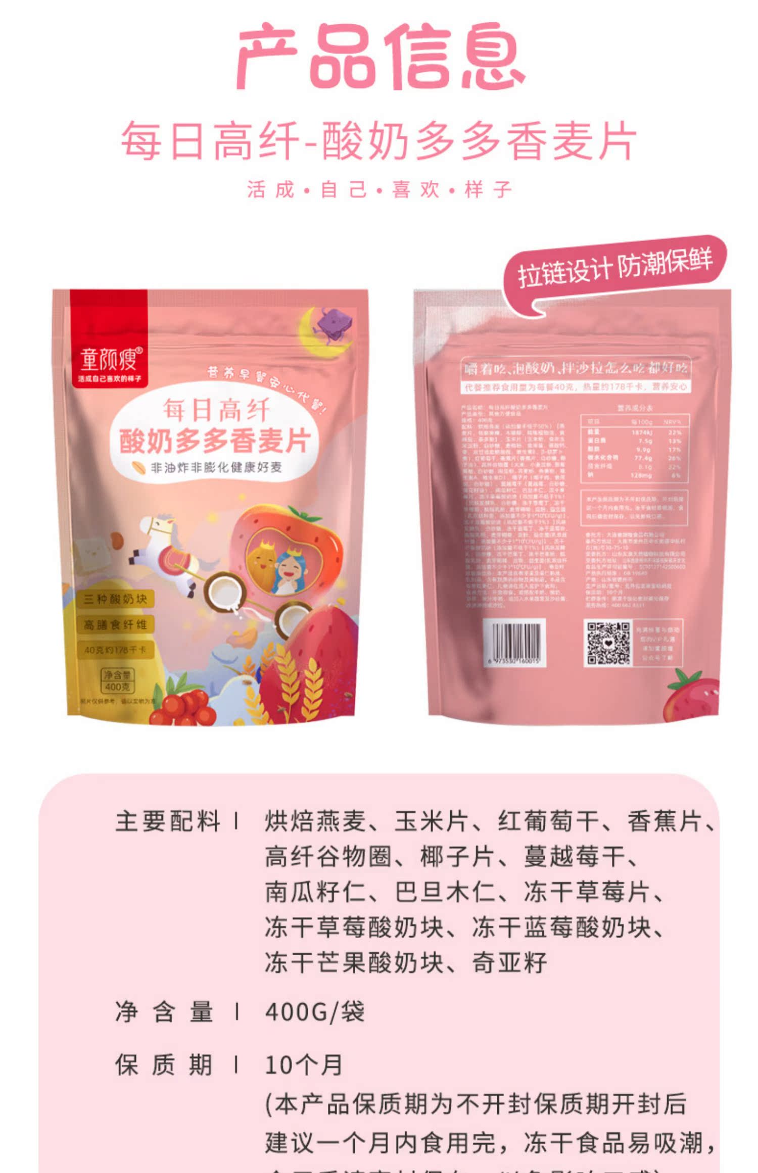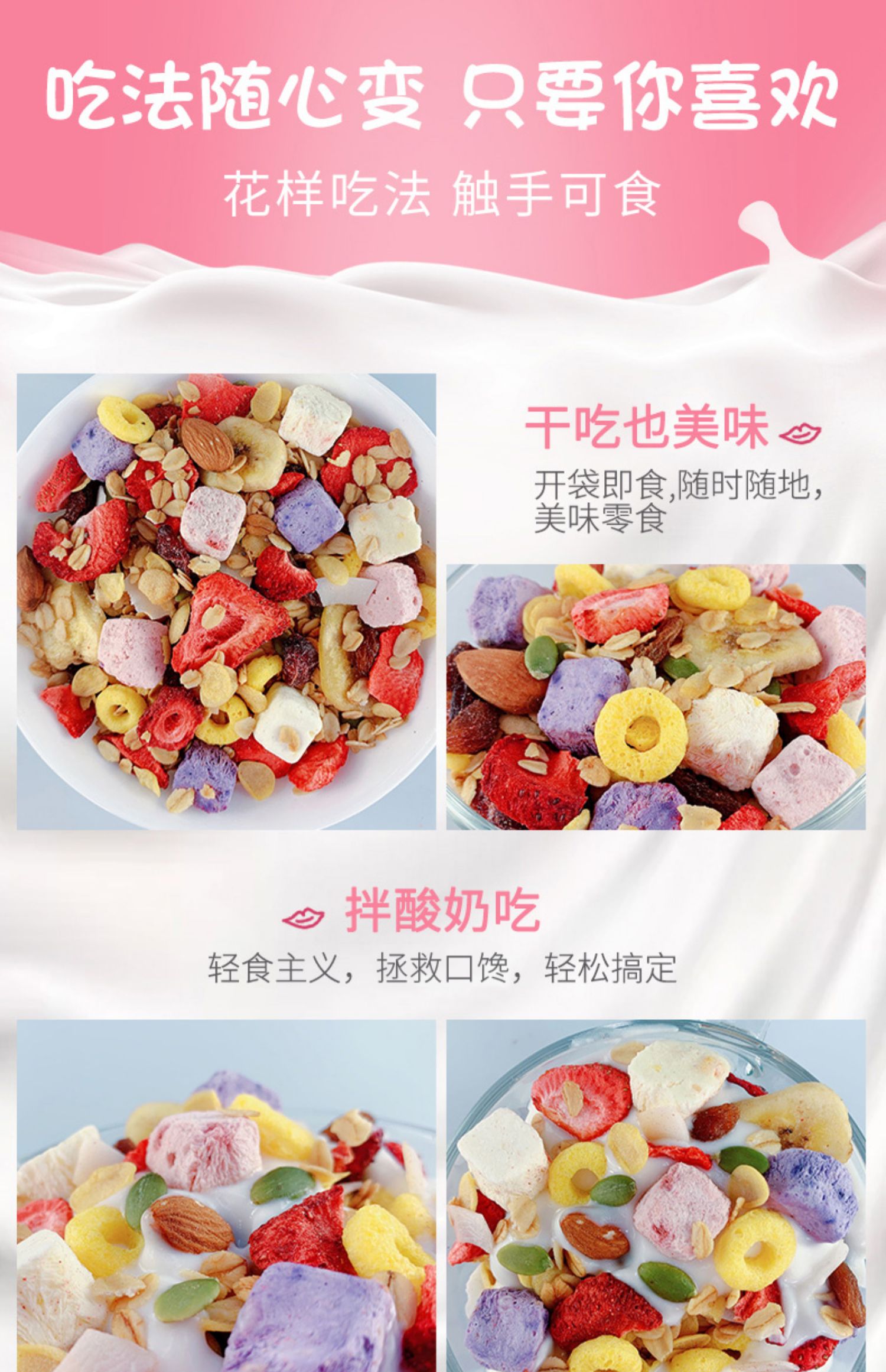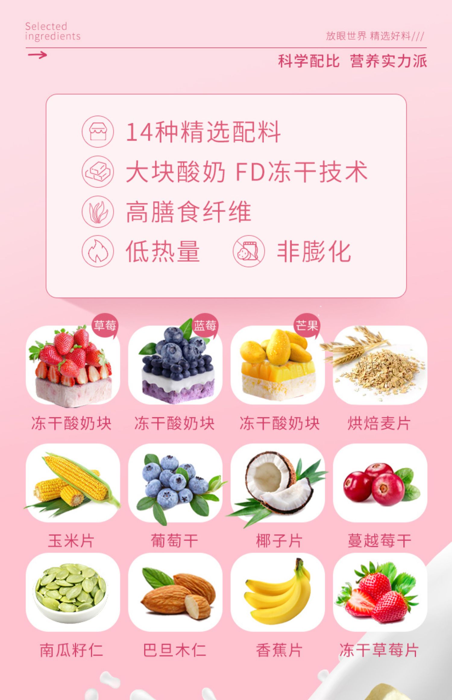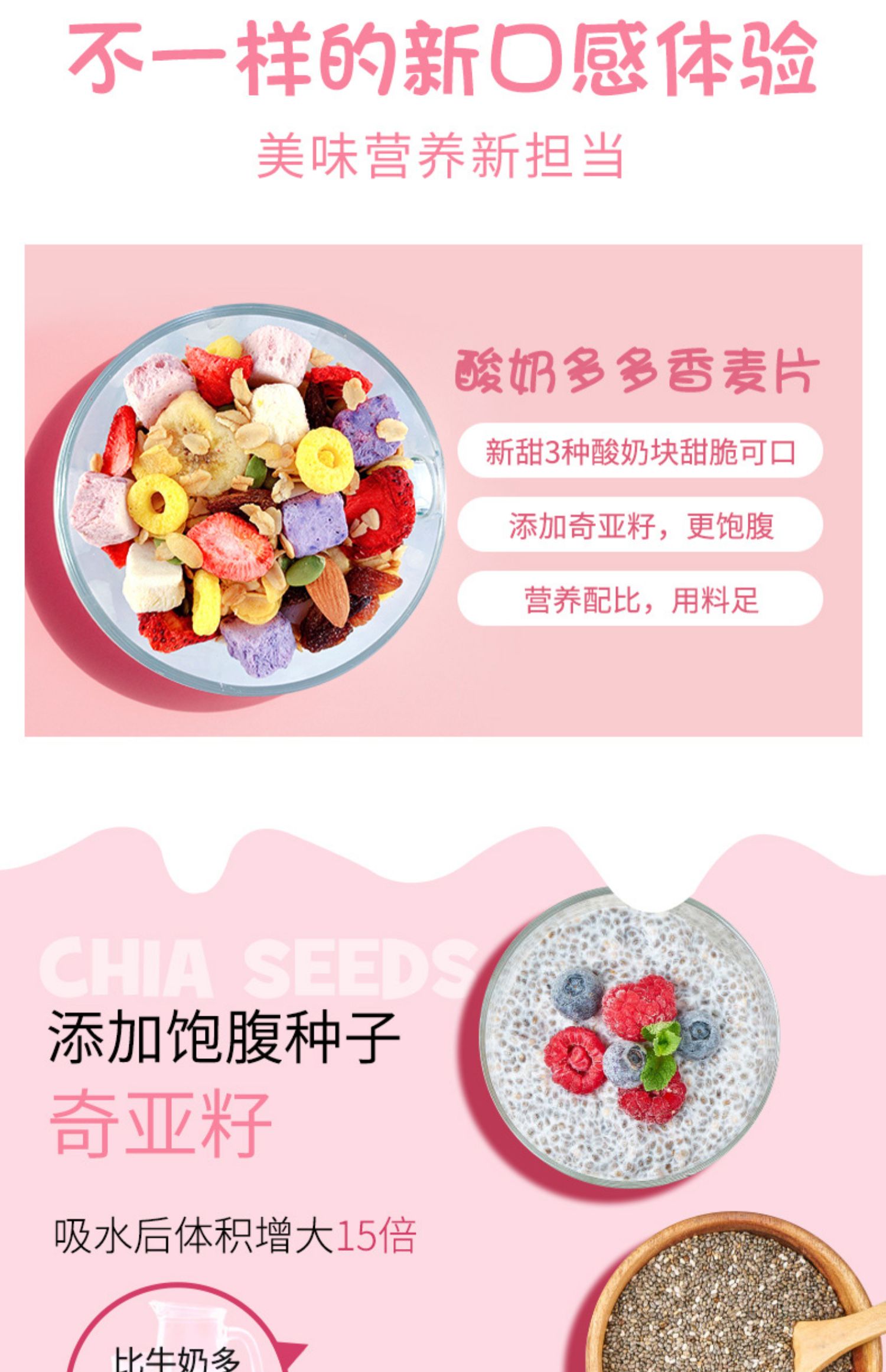 烘焙燕麦片,可干吃,泡牛奶,拌酸奶,轻脂代餐,饱腹感满满,五种谷物,四种坚果,科学搭配,口感脆香浓郁,营养丰富,给你脆香好吃的零食燕麦。
