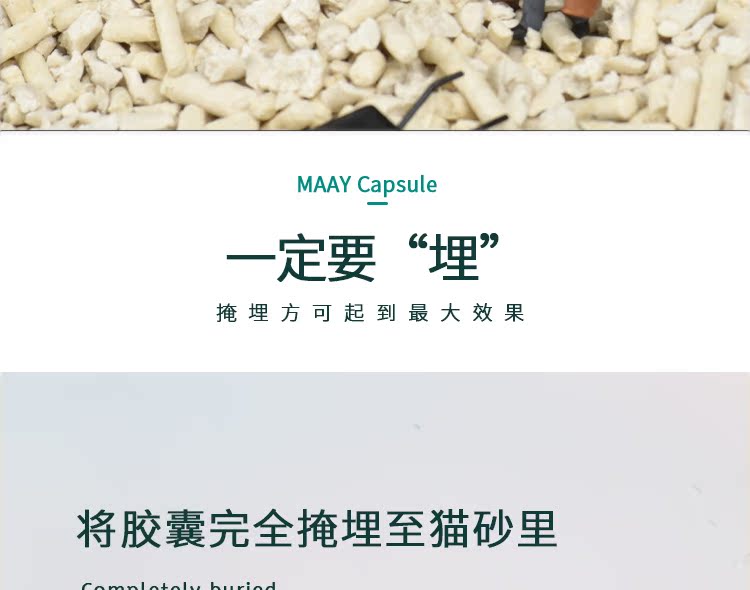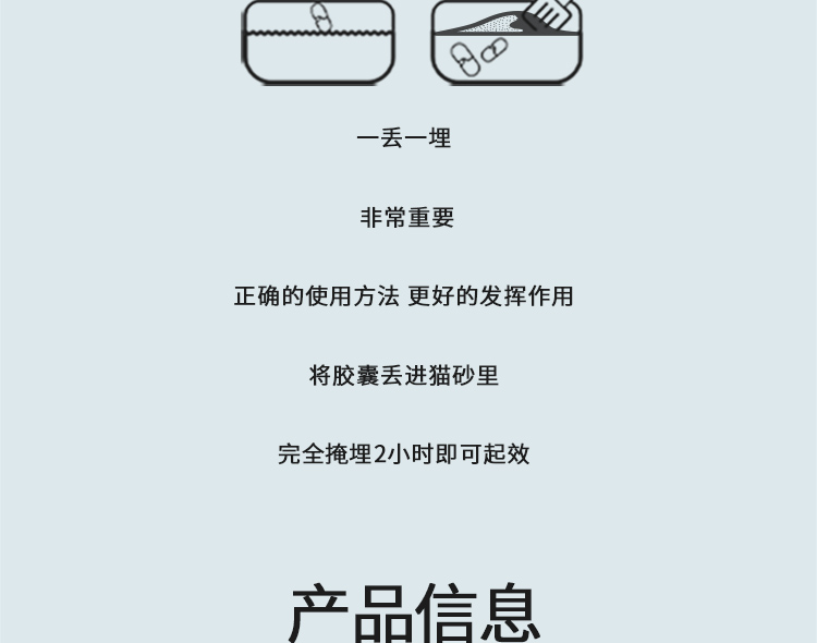 高端黑科技,只需将猫砂胶囊埋入猫砂即可,长效吸收臭气及有害物质,还原新鲜环境,一粒可保持30天猫砂无异味