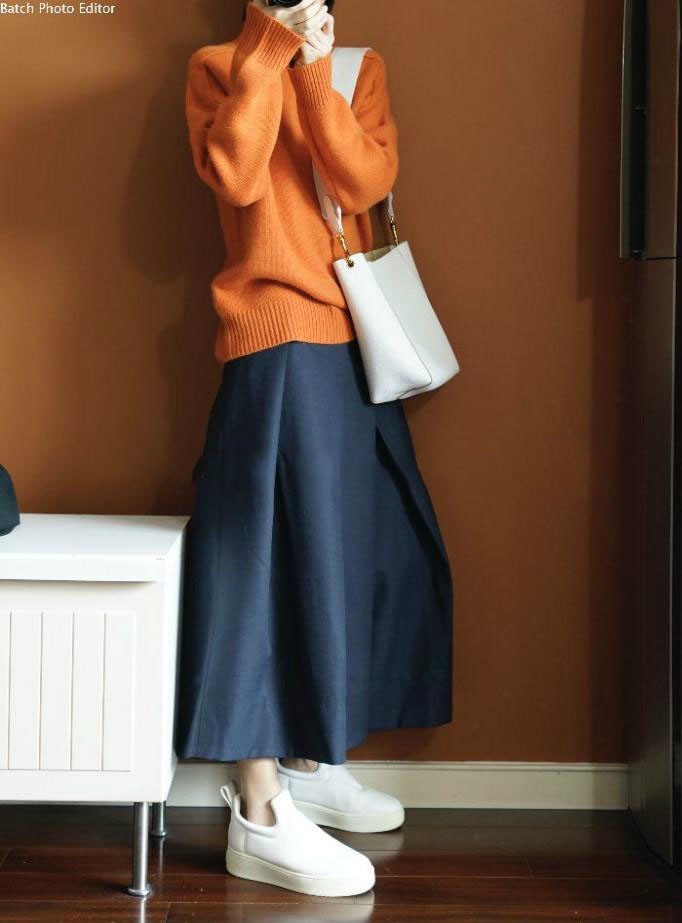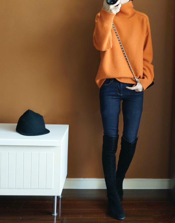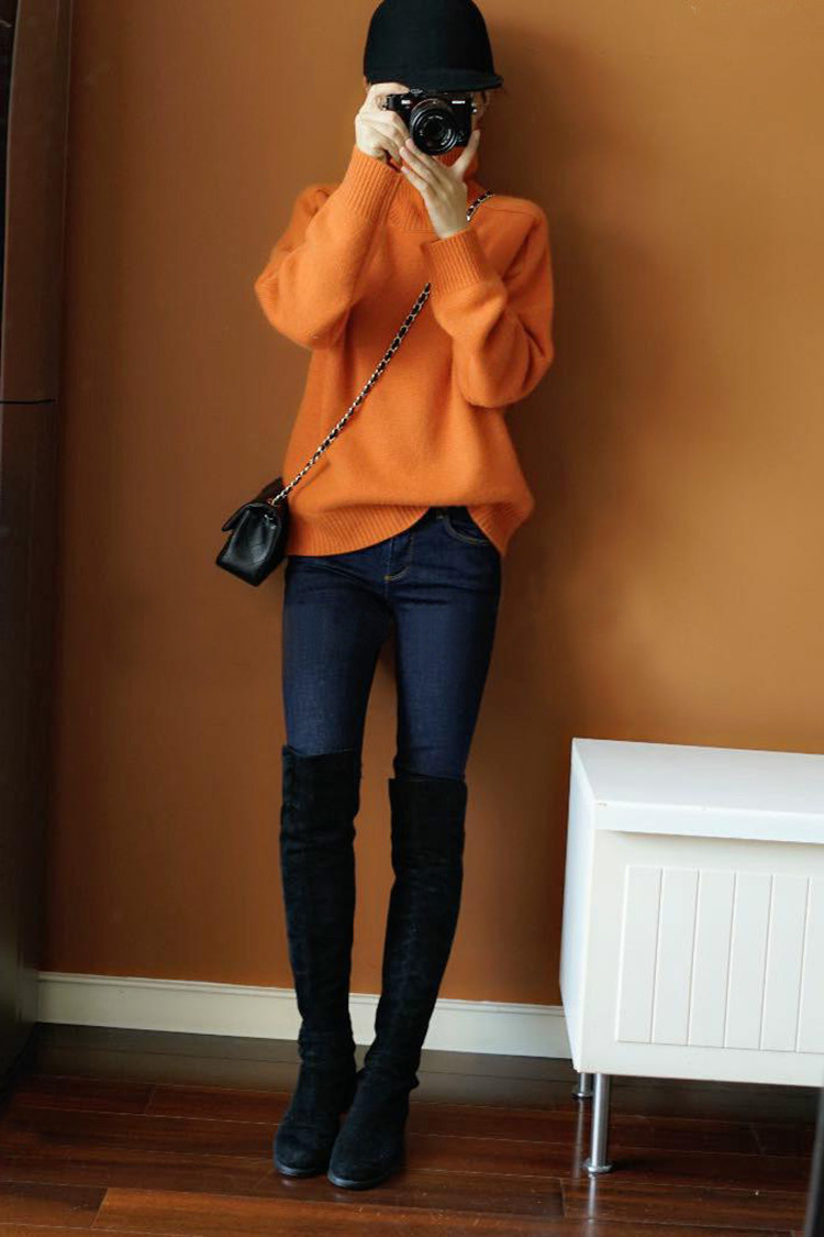 太爱!耀眼的一件橘色羊毛衣!加厚面料,手感顺滑,保暖又舒适,外面套一件大衣就可以~