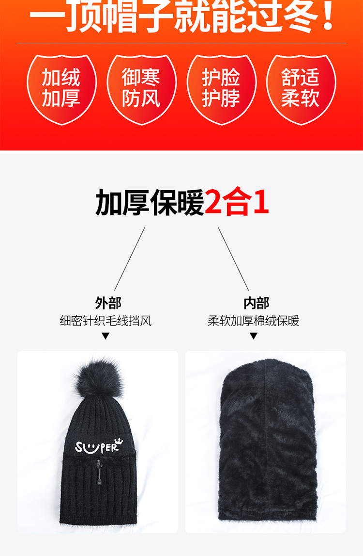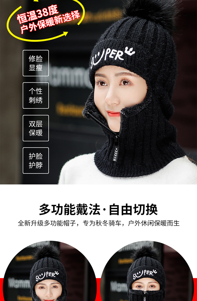围脖帽子一体!骑行必备!内里加绒加厚,防风御寒保暖,优选天然羊毛面料,柔软亲肤,冬季提前屯,速度抢,送给她!让她整个冬季都充满温暖~骑车再也不怕冷!