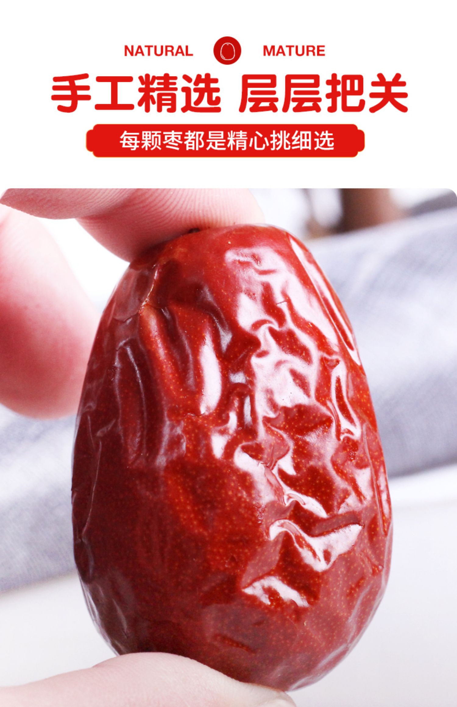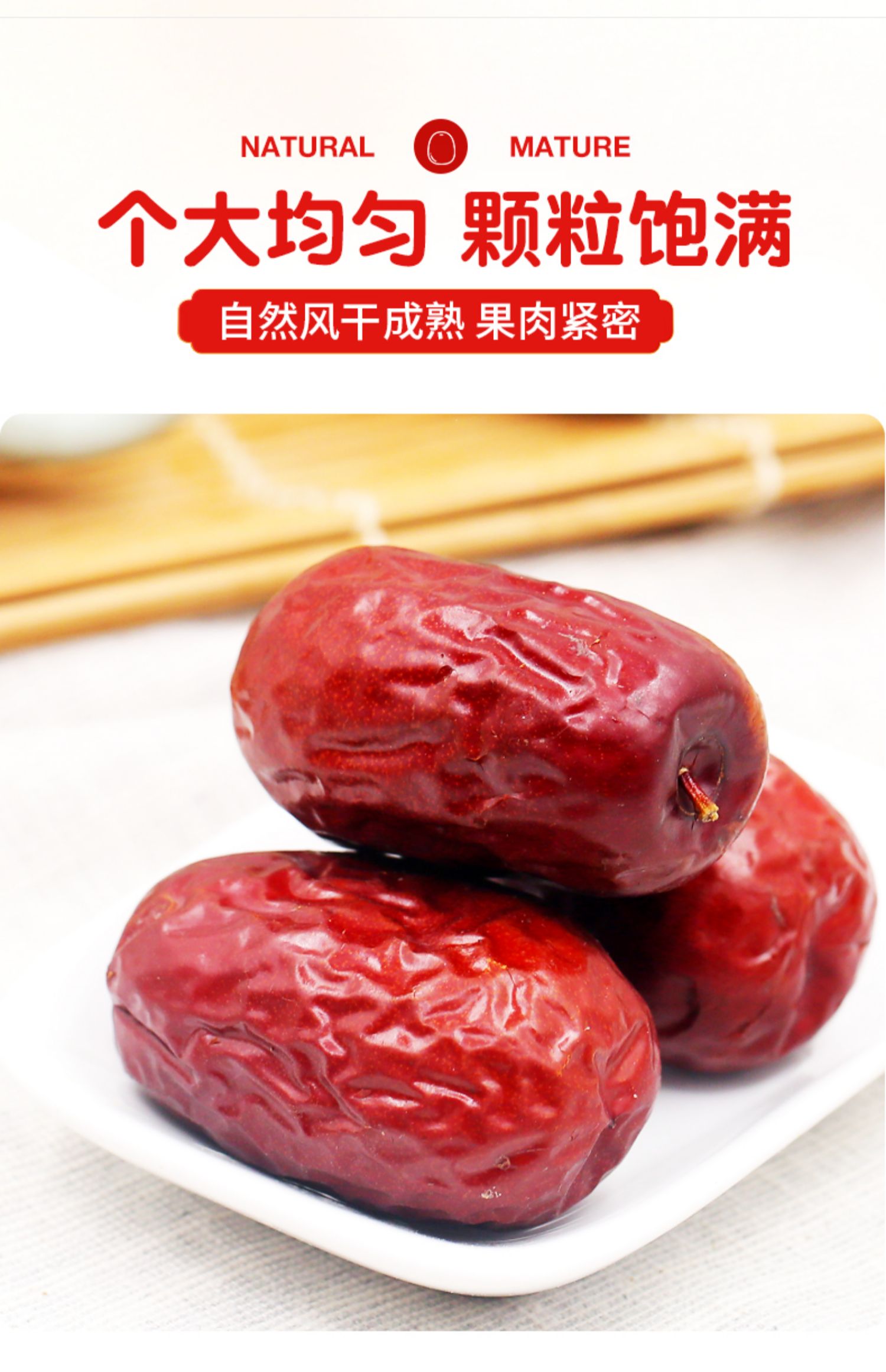 【500*3袋装】正宗新疆和田大枣一级零食,源于新疆和田地区,自然生长。颗颗精选,肉质紧凑细腻,枣香浓郁。营养丰富,补血养气,煲汤煮粥泡水,小孩老人的滋补佳品!【赠运费险】