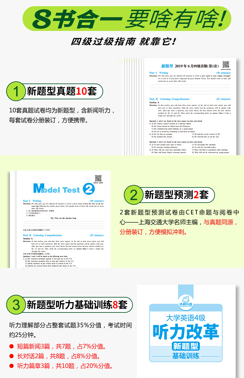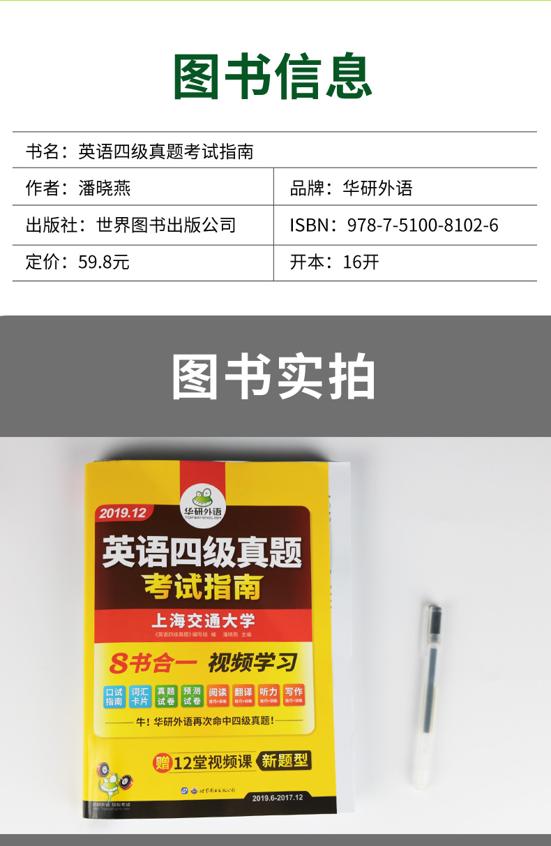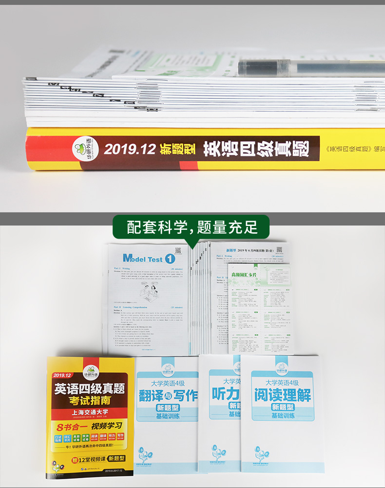 【新华书店正版】8书合一,视频学习,华研英语四级真题备考,10真题+2预测,4大专项技巧,12堂视频讲解