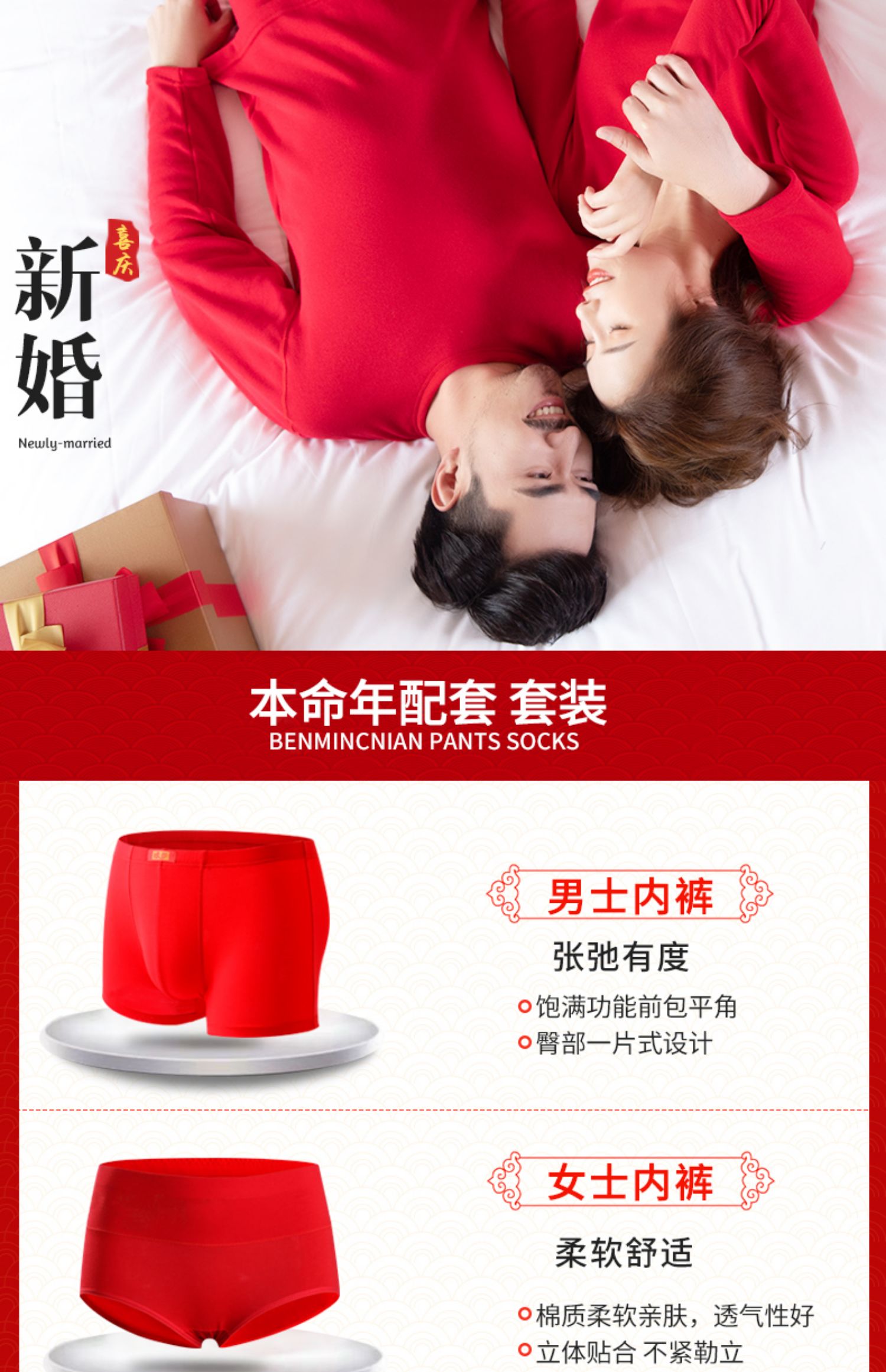 本命年必备,红色情侣款款,弹力好不臭脚,清爽舒适!快抢~