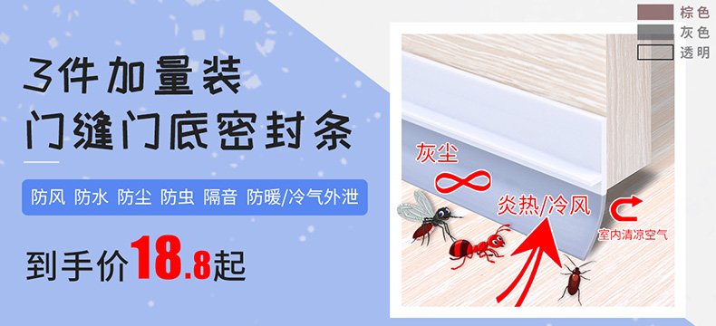 挡风隔音防尘,自带背胶,超粘门缝密封条,挡风隔音,经久耐用,柔韧性强,夏季防蚊虫,四季防尘防小强,爆款居家值得拥有!