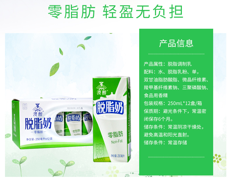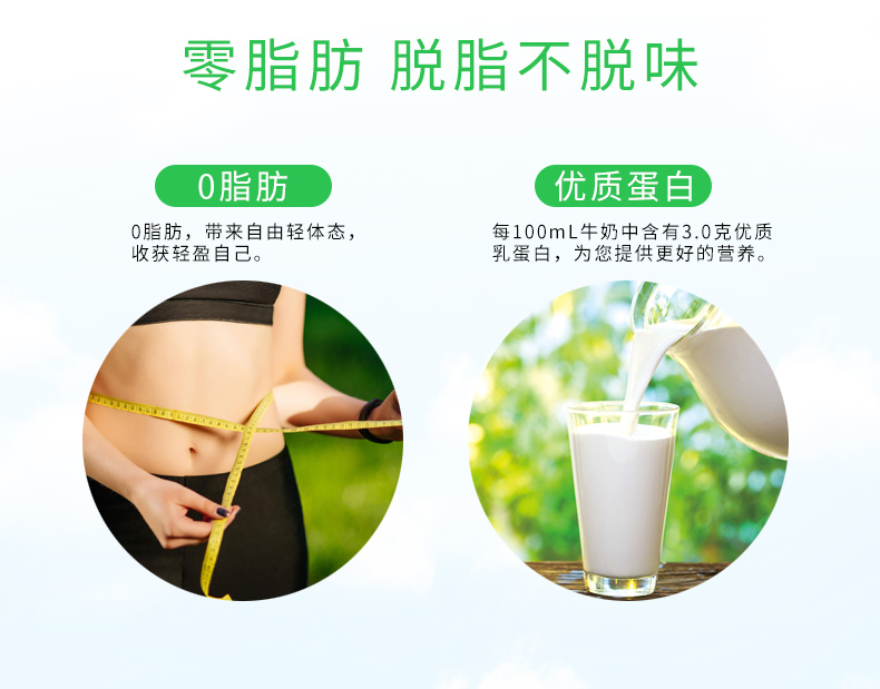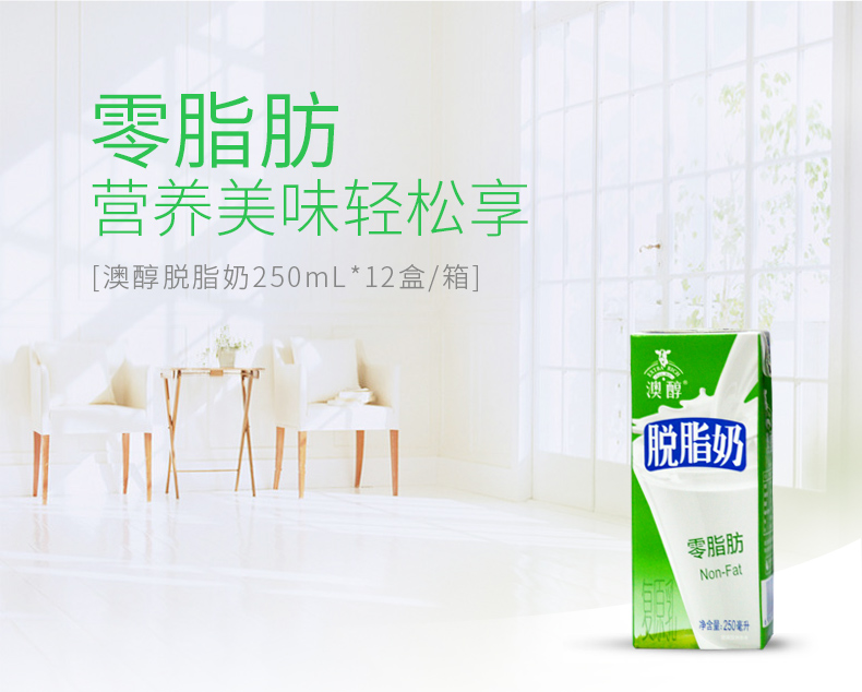 进口自澳大利亚的优质荷斯坦奶牛,6大维生素8种矿物质,健康轻盈,乐享0脂,营养美味,原生高钙,美食好搭档,大人小孩都爱喝~