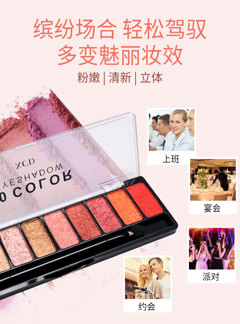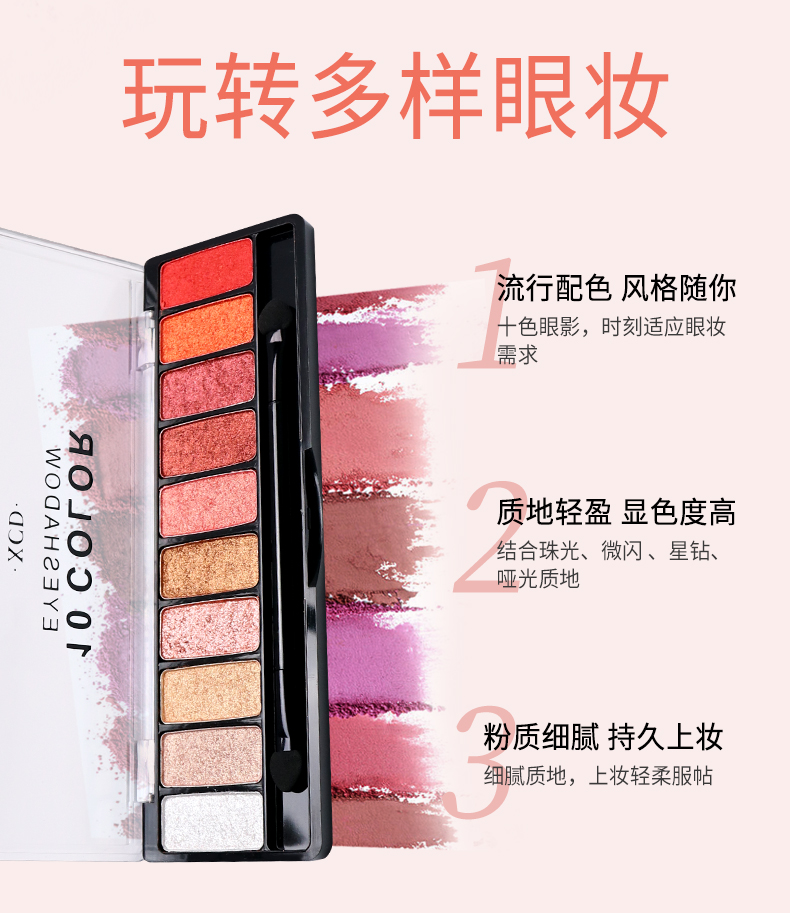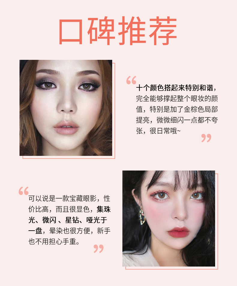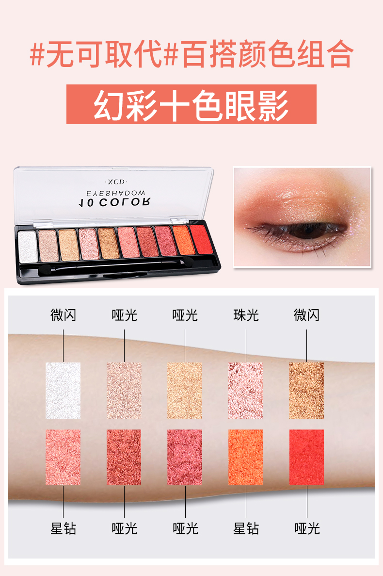 【赠运费险】缤纷10色眼影,丰润色彩,着色自然,防水持久不晕染,粉质细腻柔滑易上色,随心打造百变妆容,展现迷人双眼!