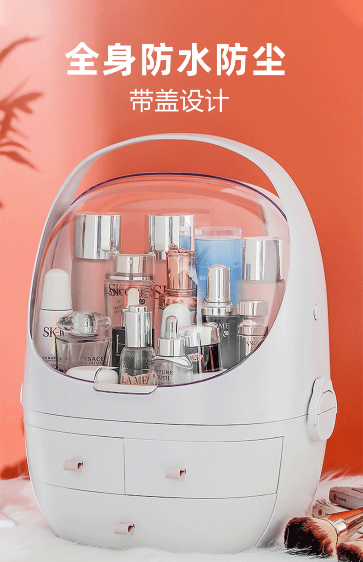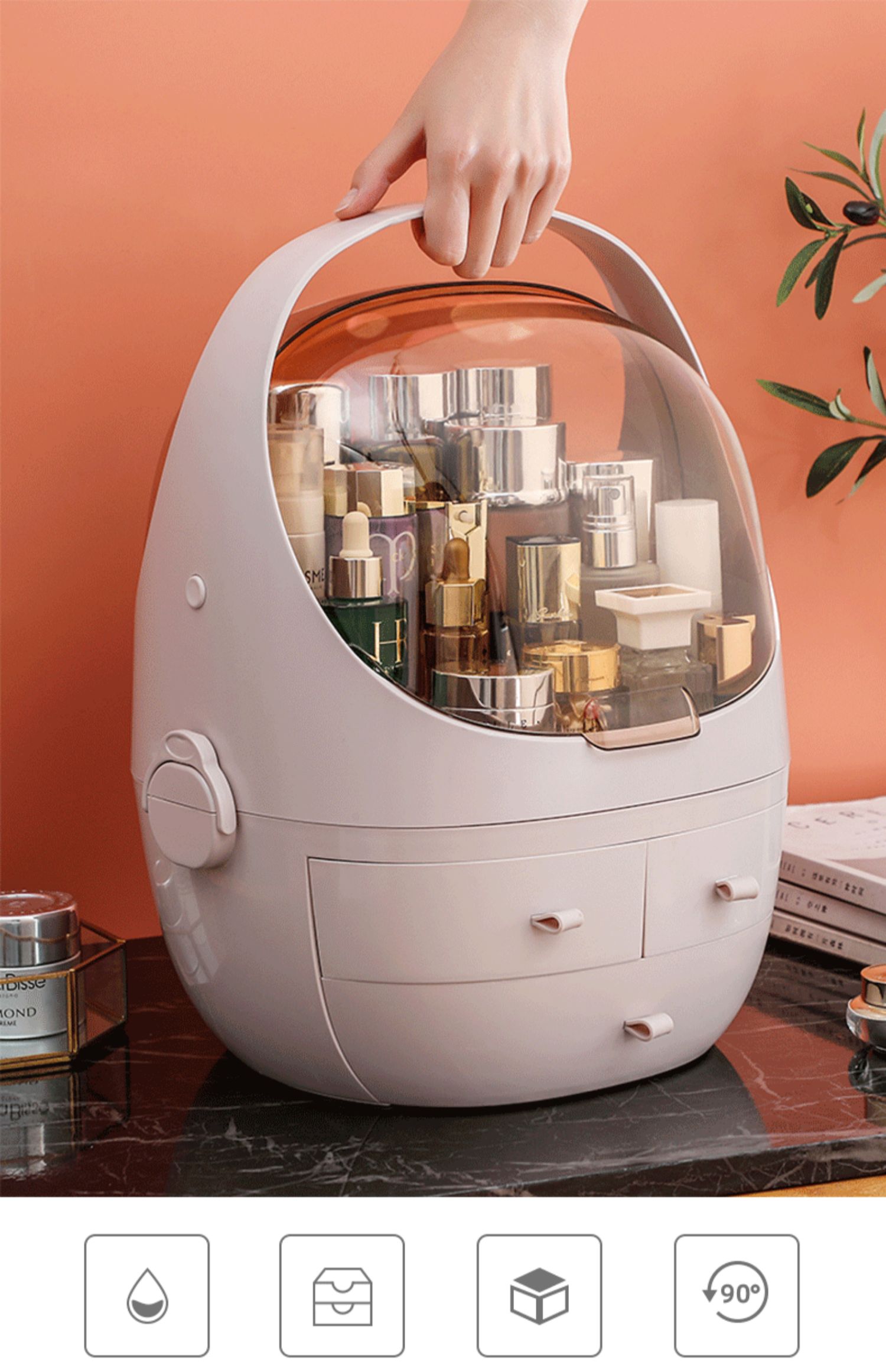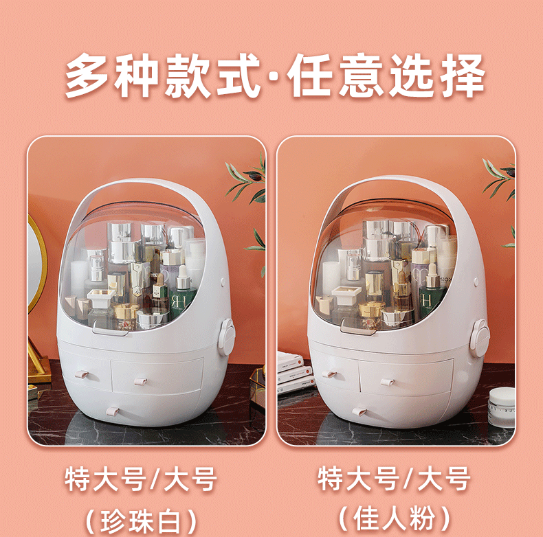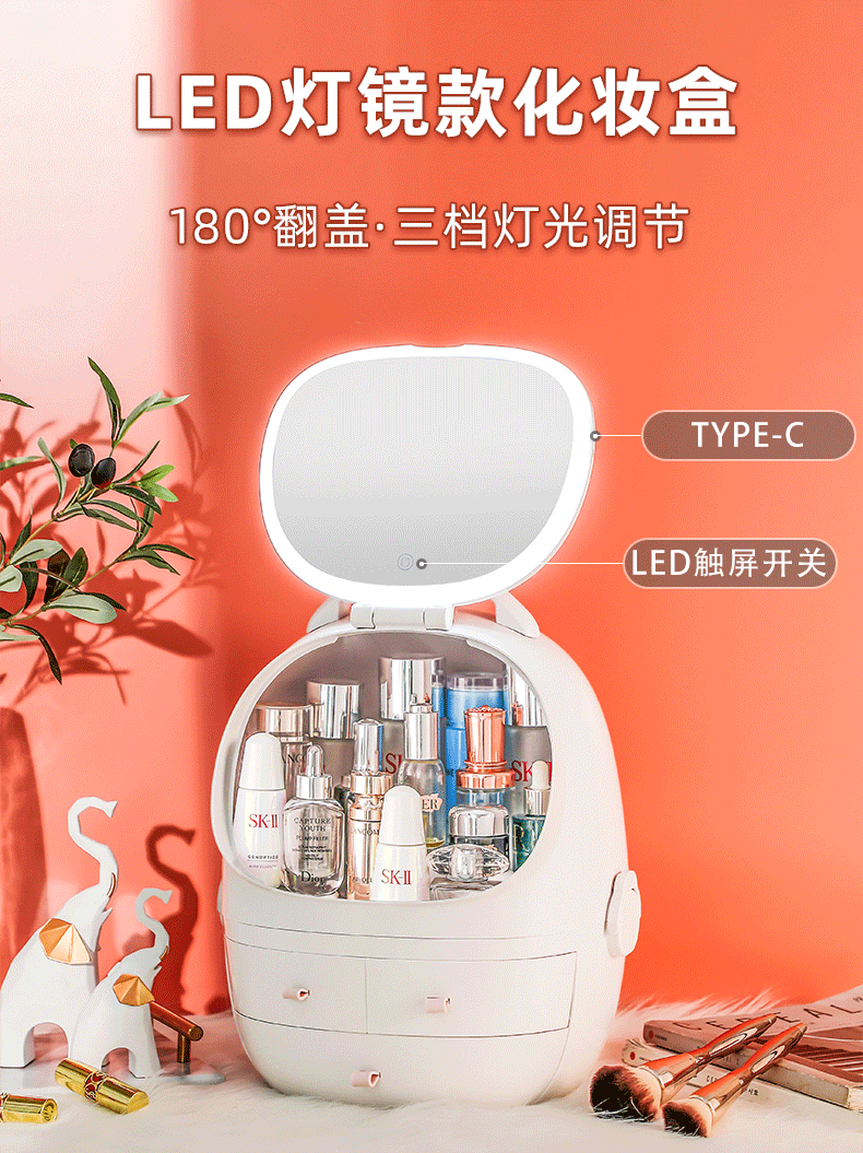 超萌超可爱的提手太空舱设计,优质环保材质精湛做工,分成抽屉,防水防尘,LED翻转三档化妆镜,透明玻璃旋转双开门,超大容量,一收而尽,清新高颜值,优雅又实用。【赠运费险】