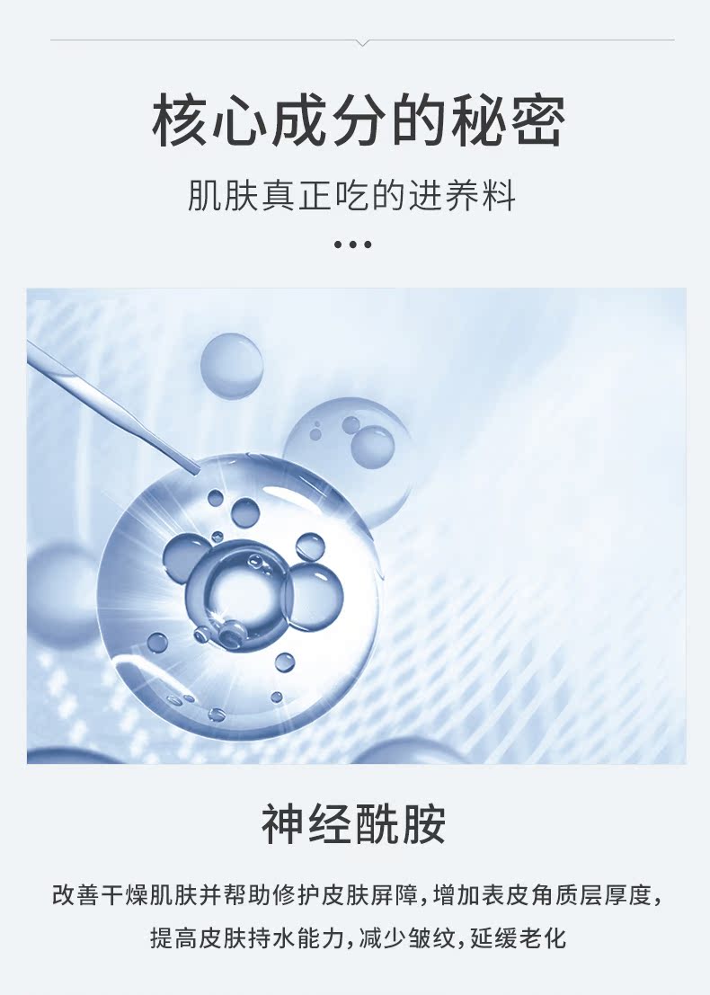 蕴含神经酰胺精华,多重修护,塑造肌肤防护屏盾,修护皮脂膜,提升保湿力,质地清爽不油腻,水润清透易吸收~