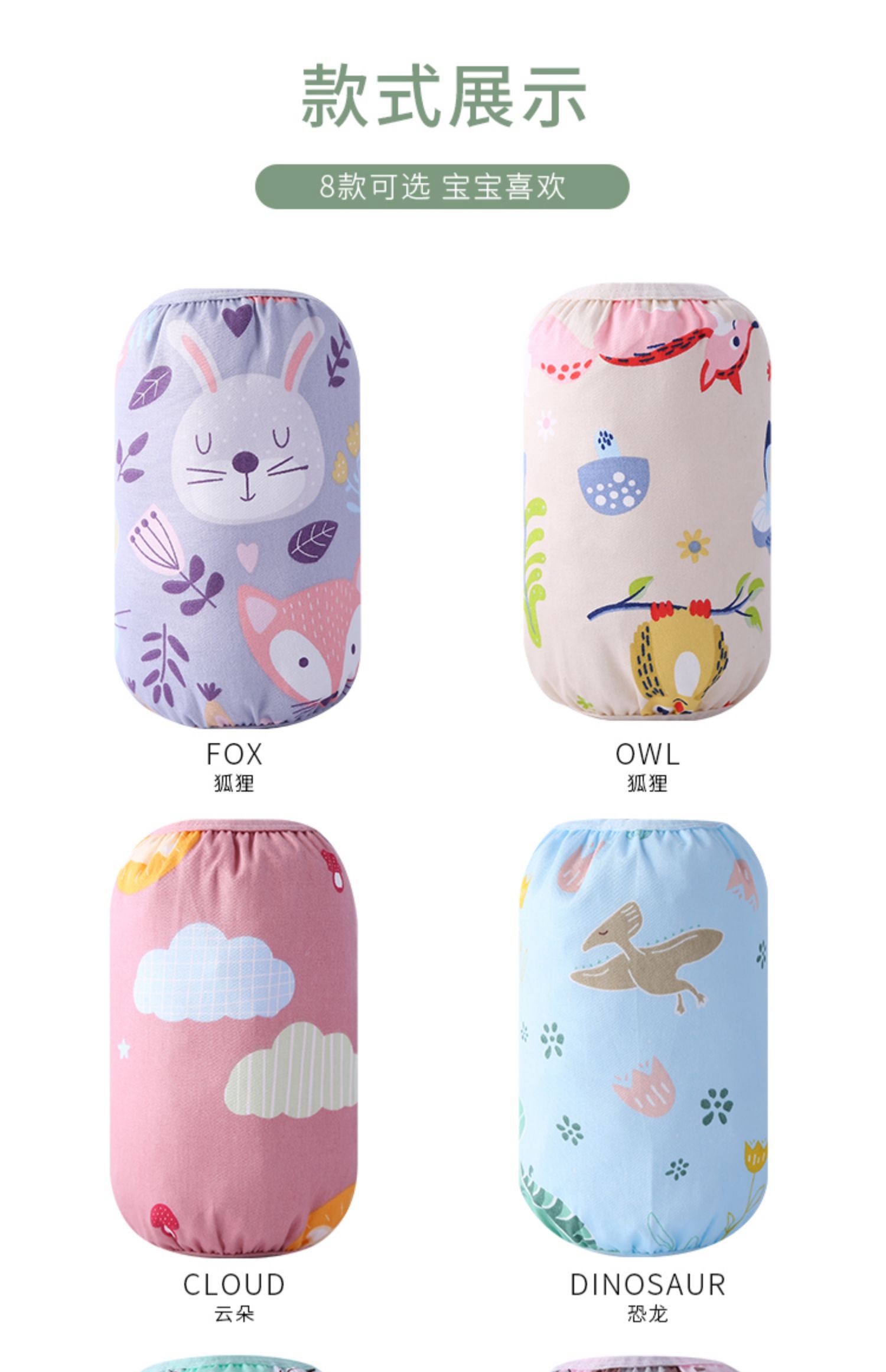 【超值2双】秋冬宝宝袖套,多种图案可选择,外层优选纯棉材质,柔软亲肤,拉伸性强,双层防水,洗后不掉色,不变形,带上它,告别污渍,让妈咪更省心!