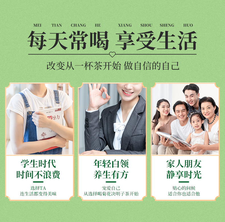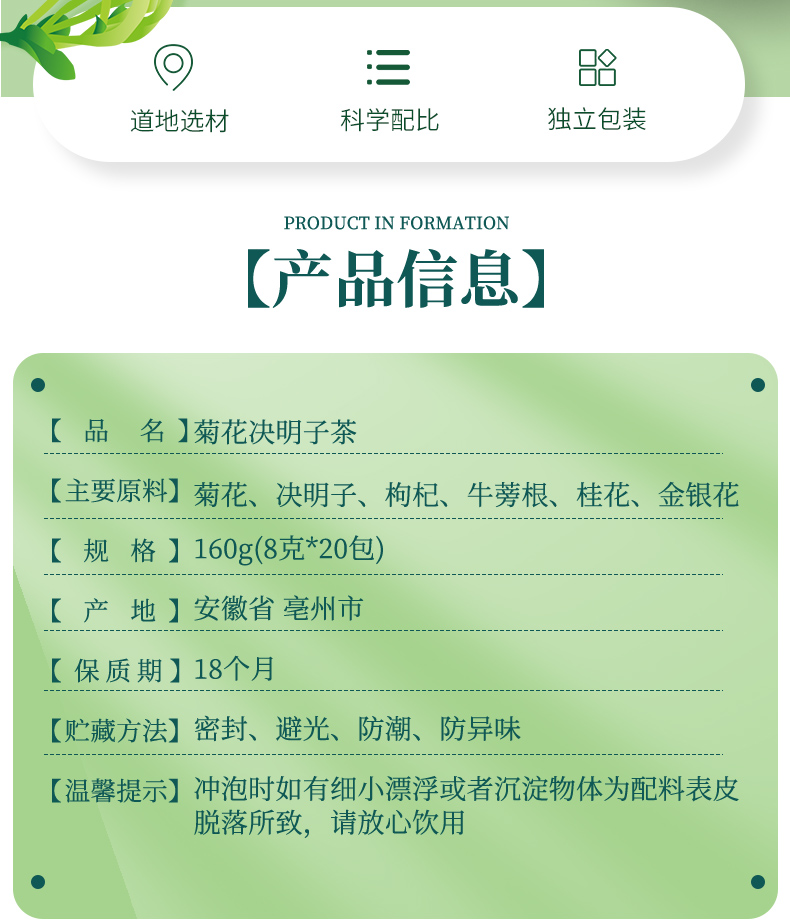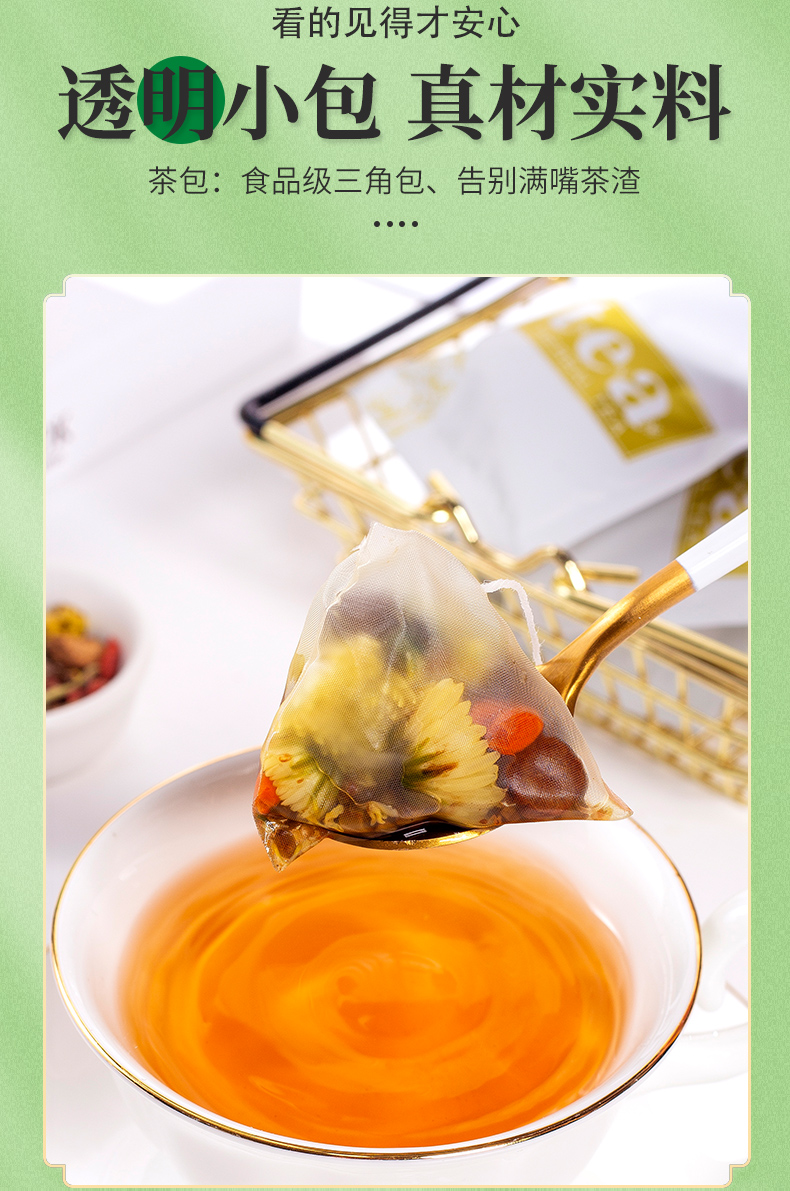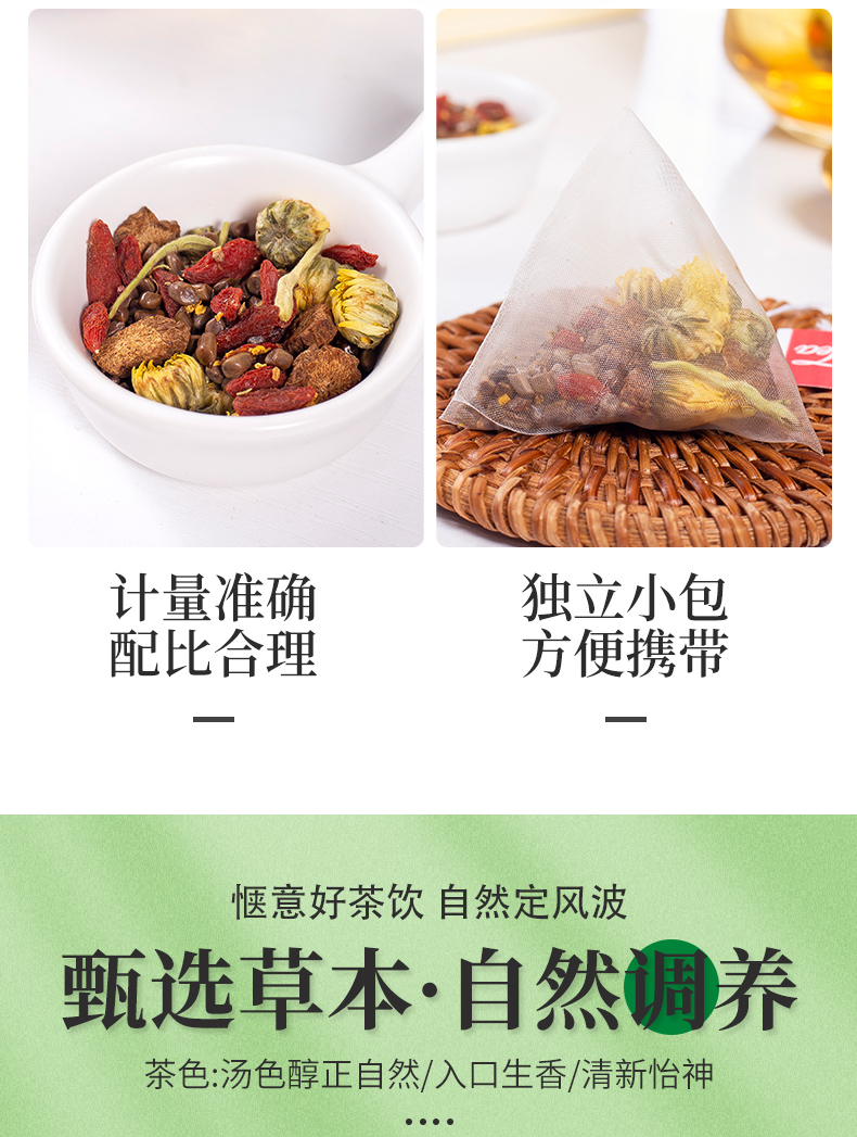 精选多种中药食材,科学配比低温烘培,看得见的材质,喝得更放心,茶味醇厚,即泡即饮老少皆宜,养生必备!!