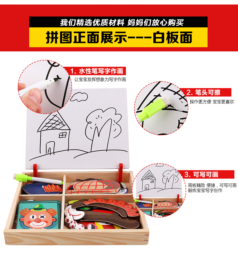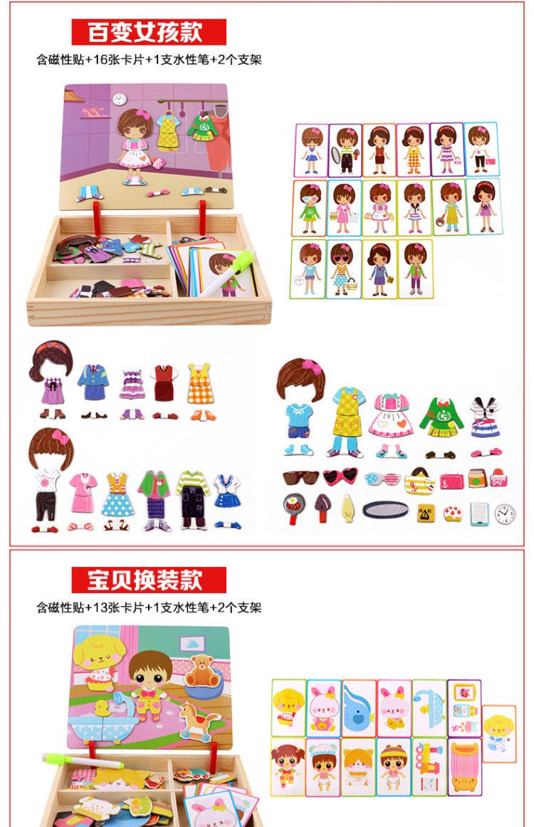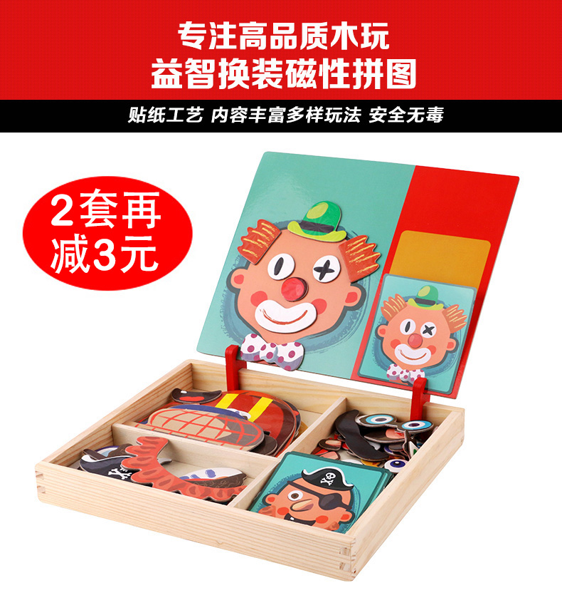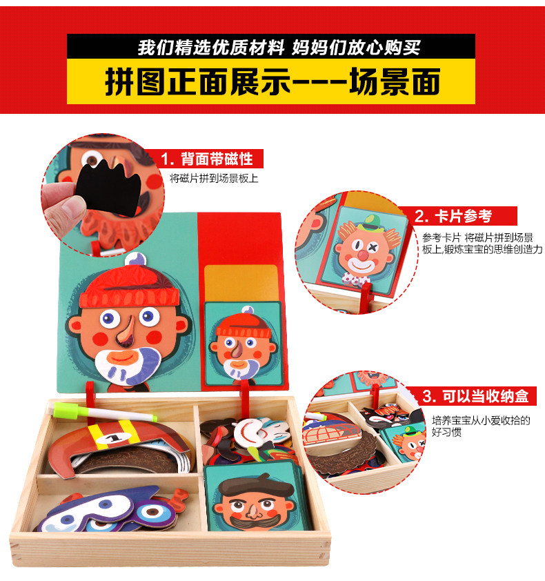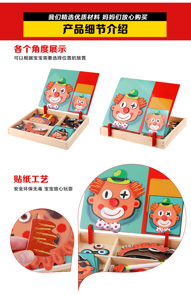 儿童早教拼图磁铁书拼拼乐玩具,内含磁性贴、卡片、水性笔和支架!精选优质材料,安全无毒,背面带磁铁,随意摆放多种造型。多种玩法,激发孩子想象力、锻炼孩子专注力逻辑力!