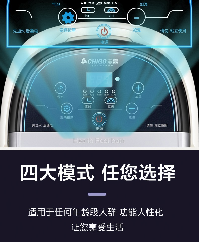 【志高品牌大促】智能多模式足浴器,10排打滚了拟真按摩,恒温自动加热,多重保护,享受真人般的按摩待遇,疏通筋脉,舒缓放松,精心呵护你的“第二心脏”送个给自己家人的保健神器~【送运费险】