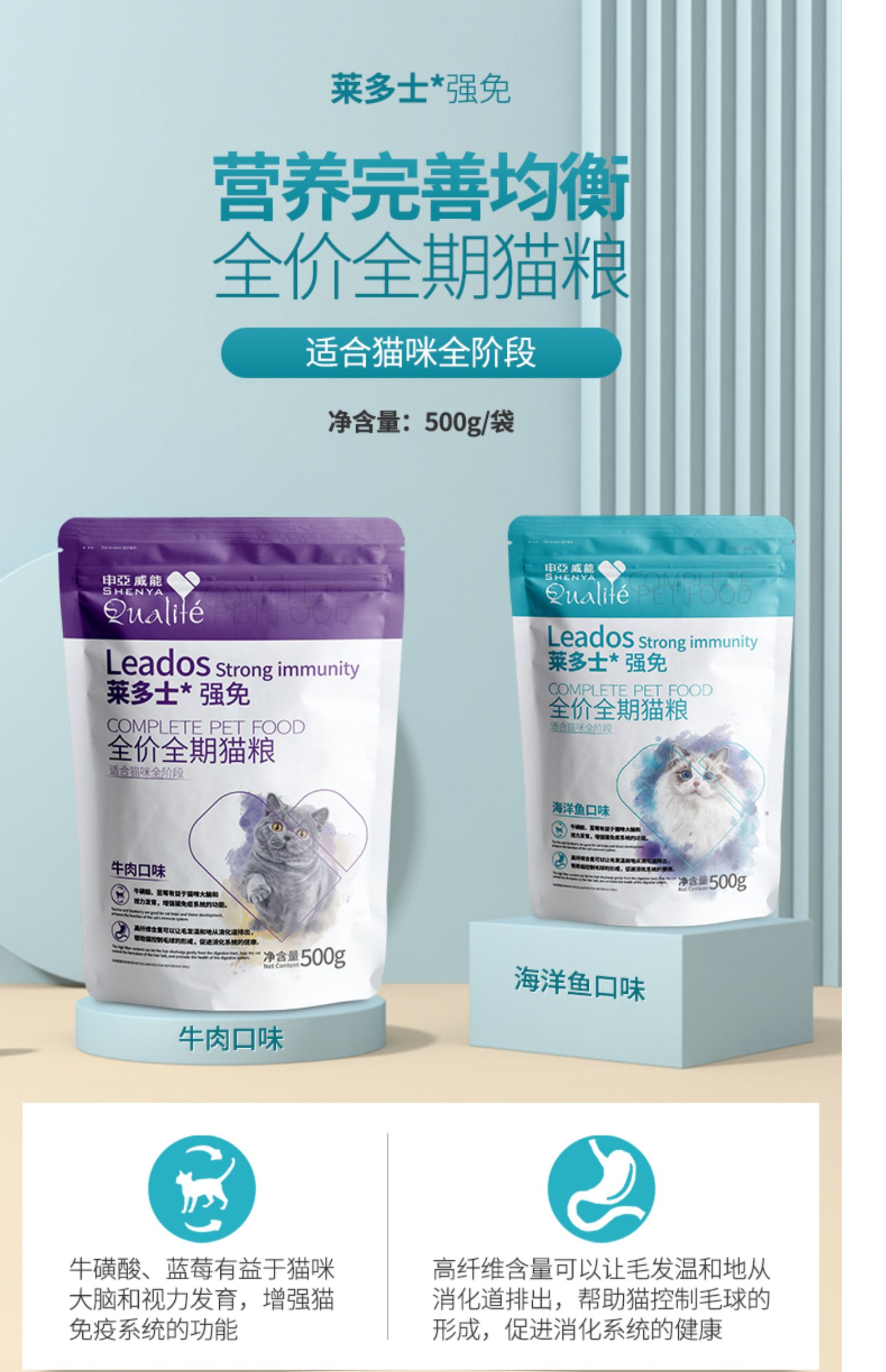【买2送2】精选好原料,满足挑剔口味,添加牛磺酸,益于大脑和视力,增加猫咪免疫力,促进消化系统健康,好食材真添加,营养均衡,强免呵护美味更健康!
