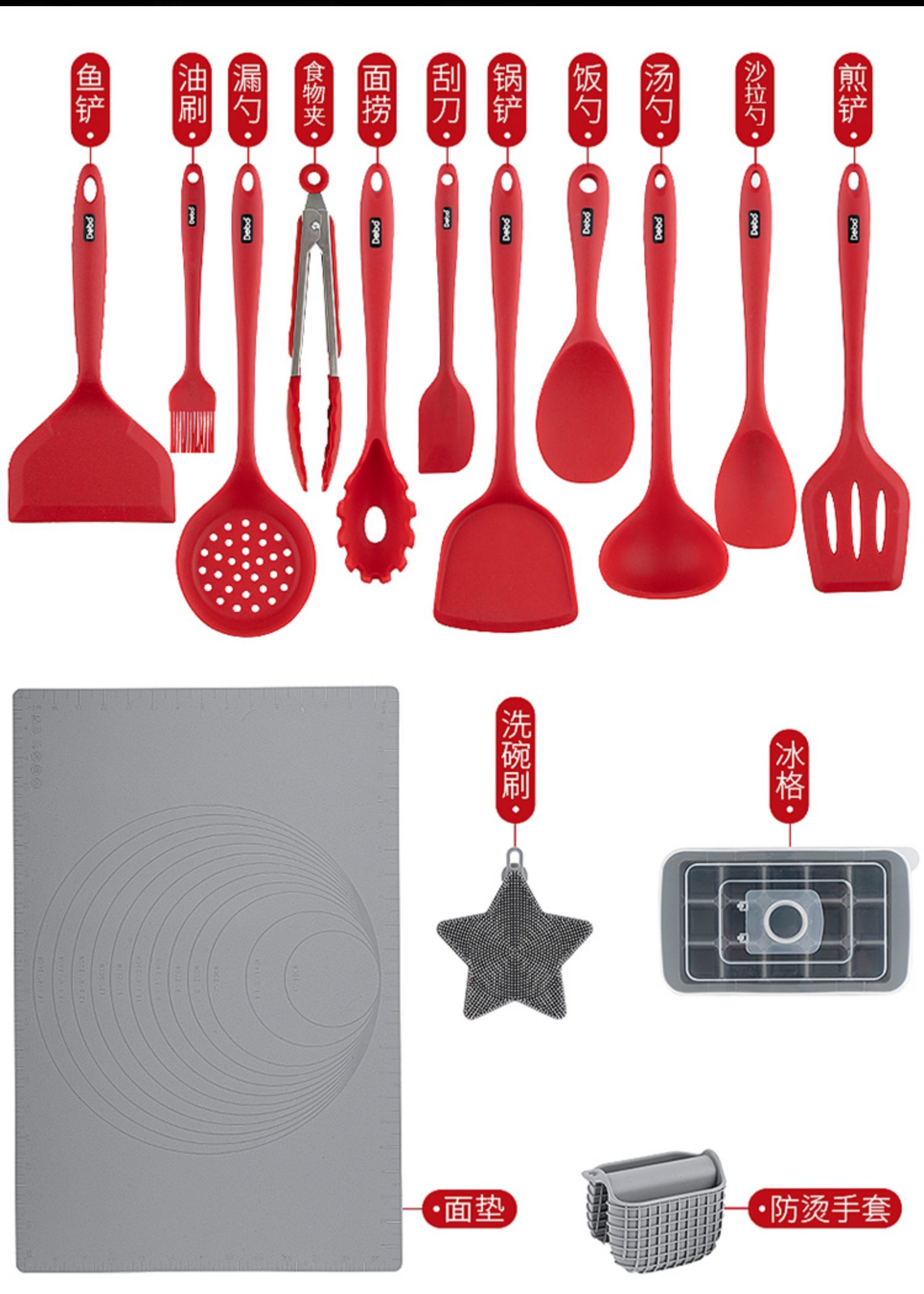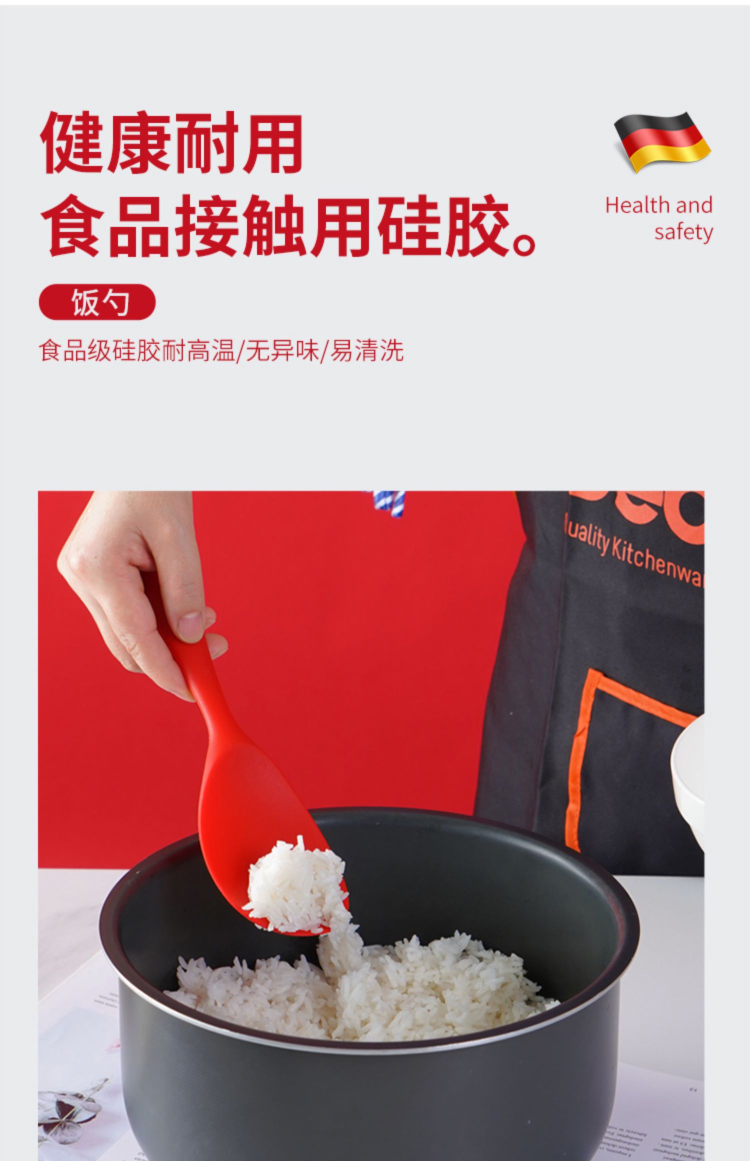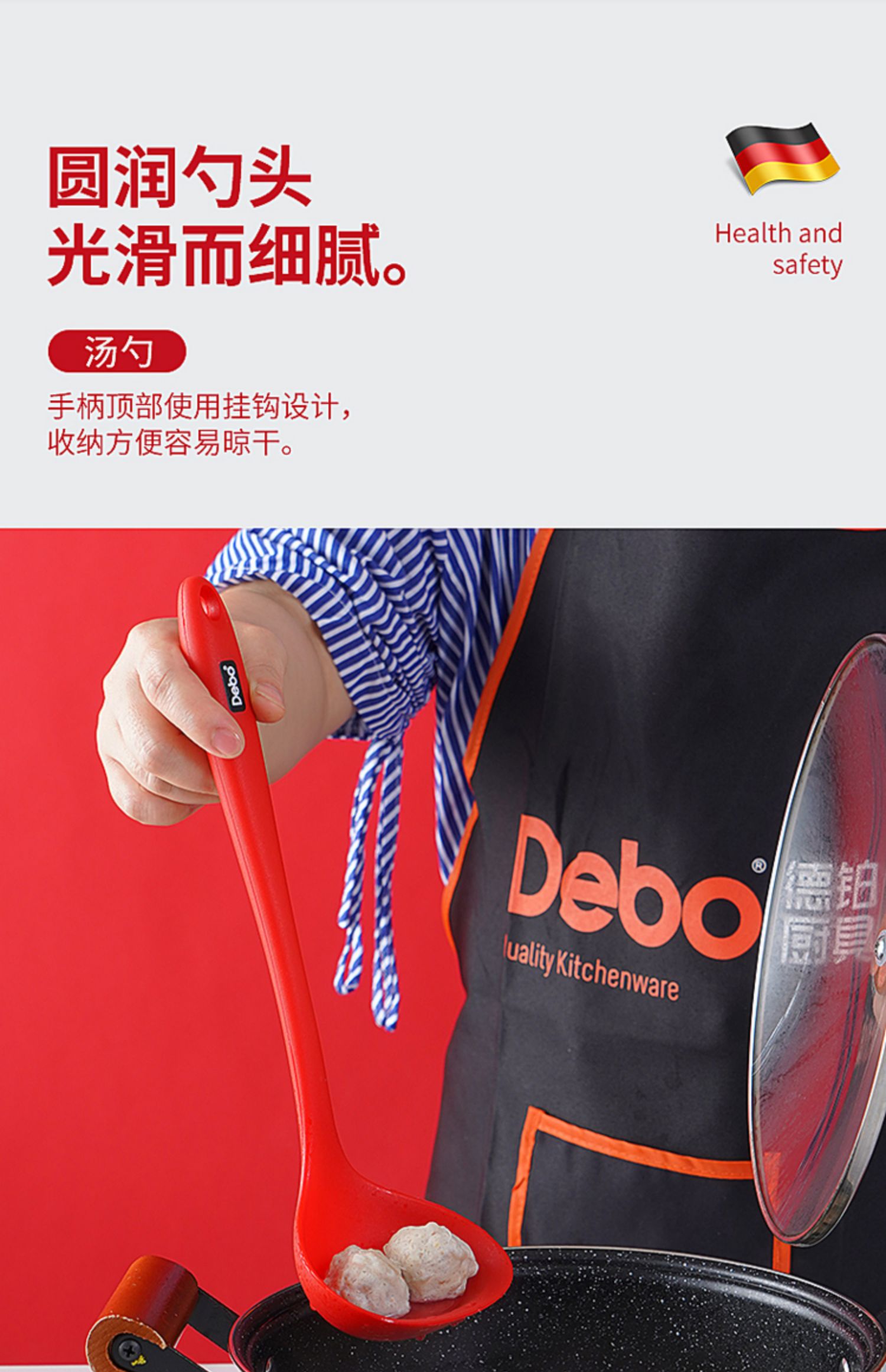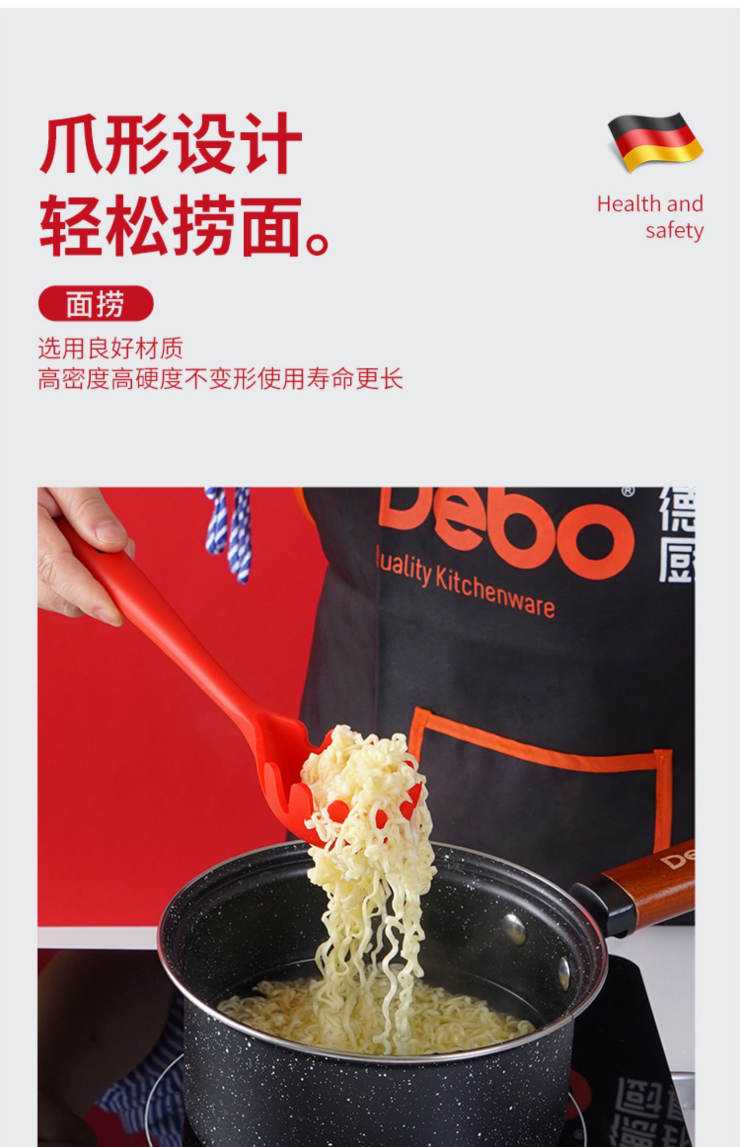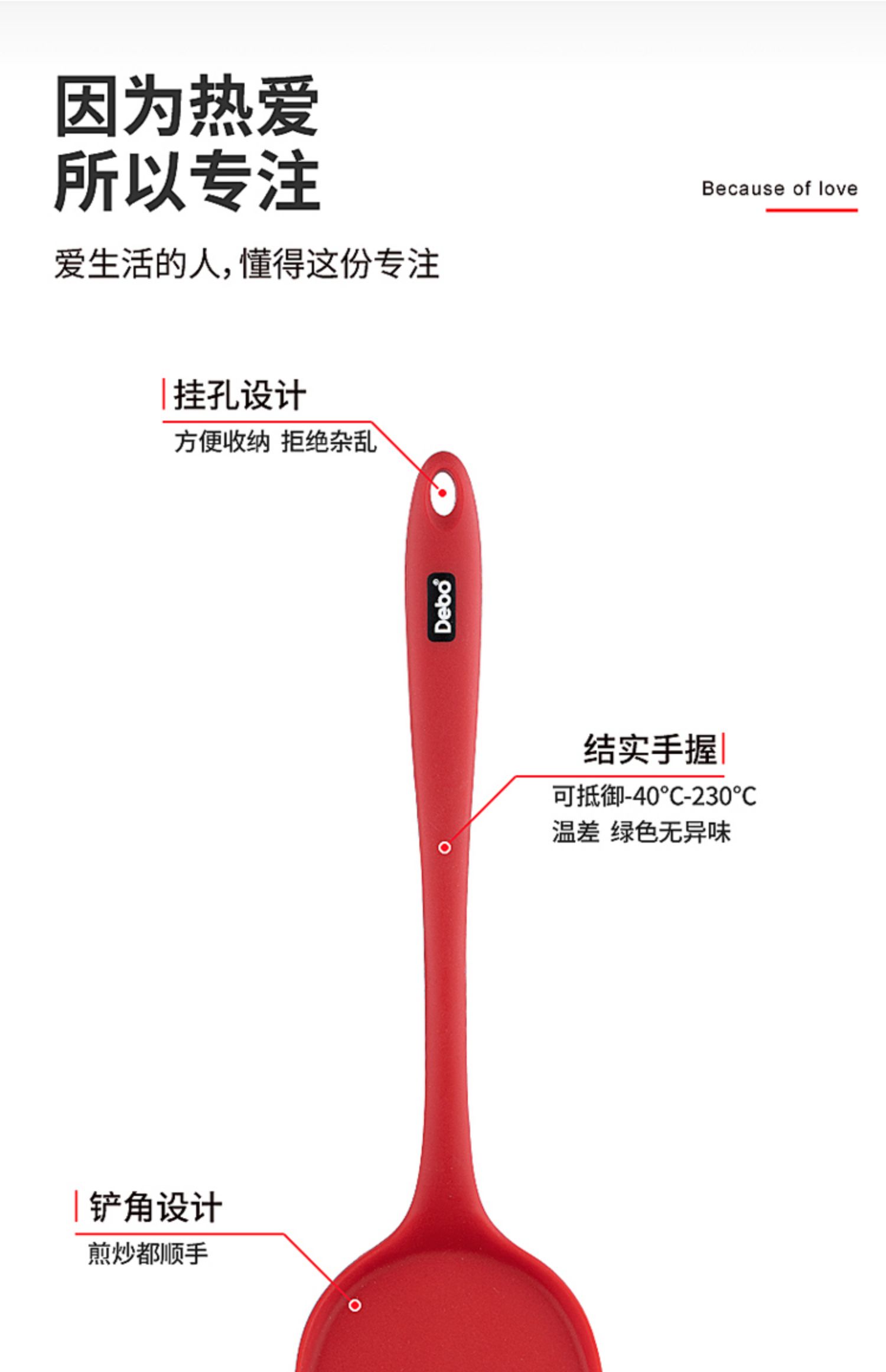 【DEBO】安全健康硅胶厨具,易清洗、无异味、不易变形、高温耐热、不伤锅皿,硅胶材质,柔软不伤锅,轻巧柔软,保护涂层,不易变形。食品接触用硅胶,婴儿般呵护。