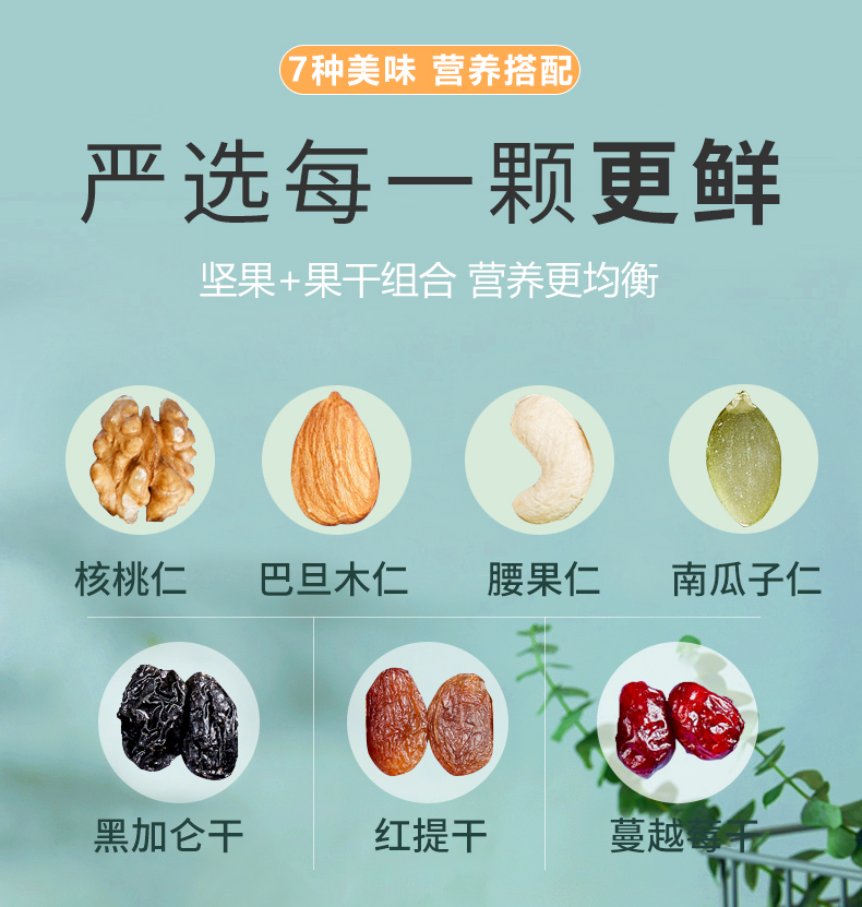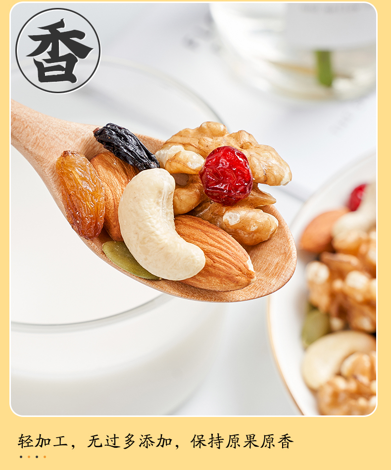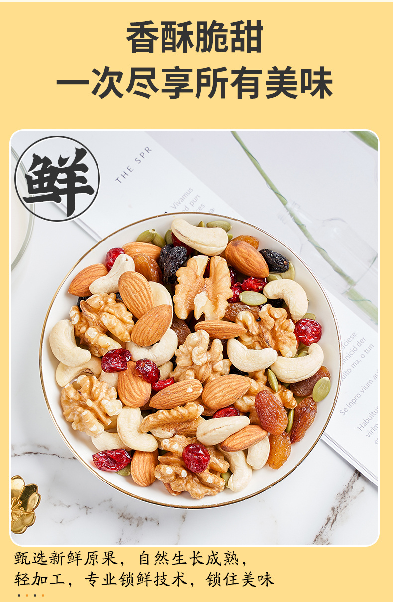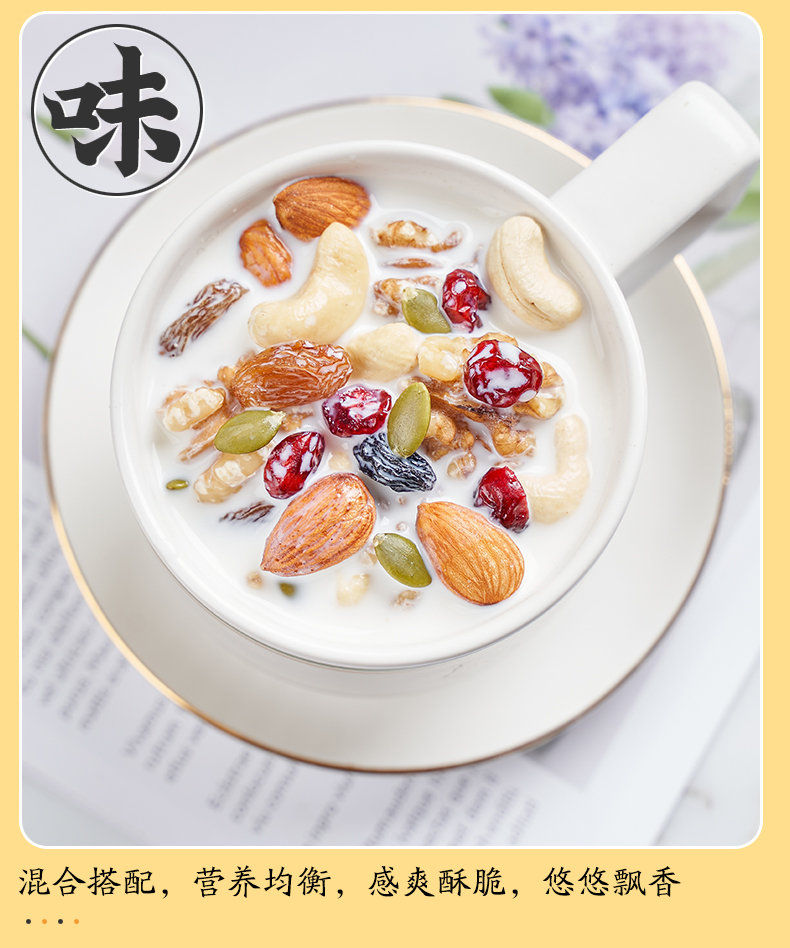 大颗果粒,低温烘焙,9种果仁,高配比坚果,给您多一份的营养,香酥脆甜,早餐牛奶搭配,健康营养无负担,老人孕妇都爱吃~