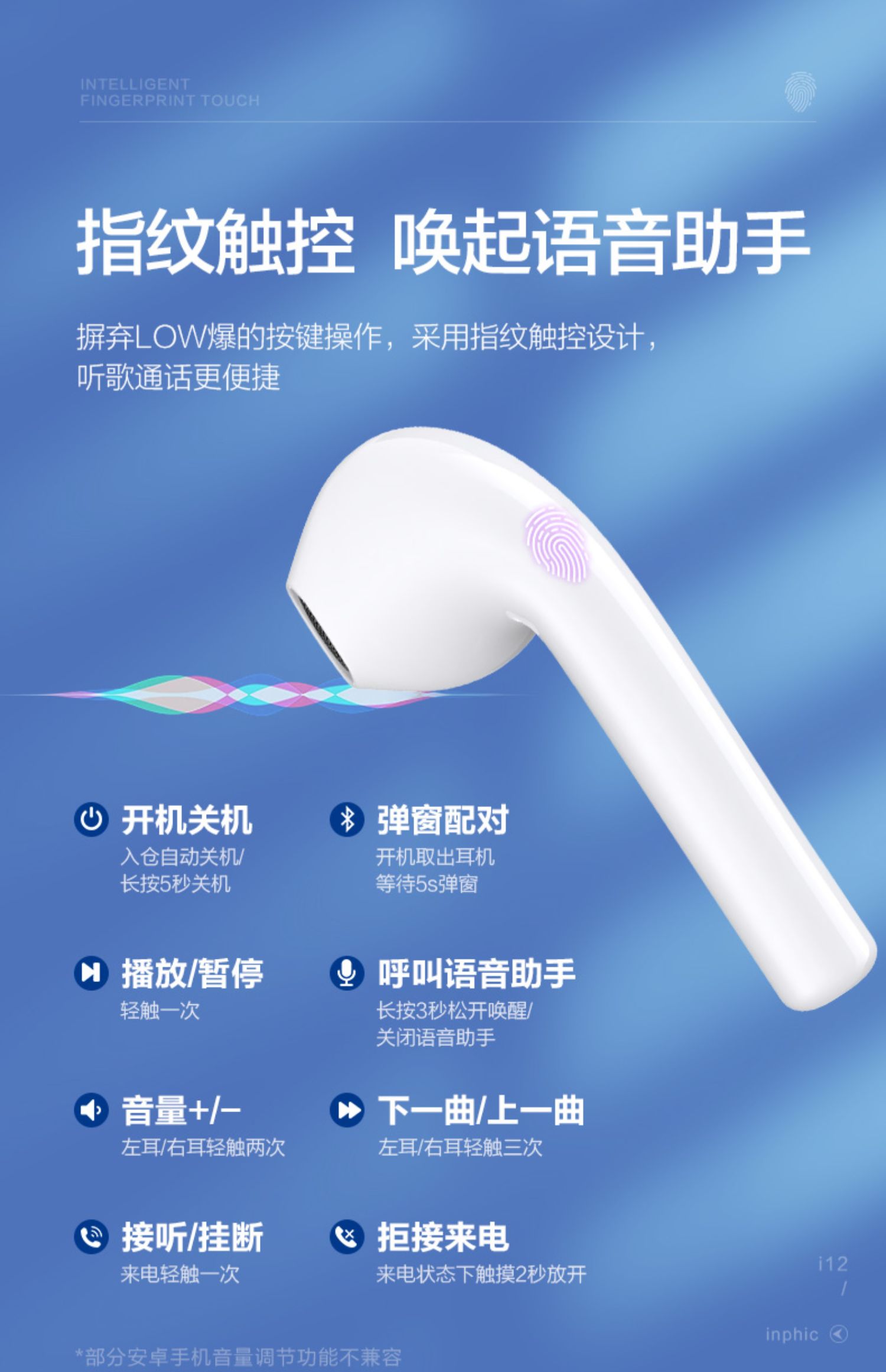 高颜值5.0真无线蓝牙耳机,多色可选,双耳续航约2小时,耳机充电20分钟!兼容IOS和安卓,跑步,健身都可以戴,狂甩不掉~指纹触控操作,比原配功能更多,可呼叫siri,弹窗配对,自动连接,入耳即听