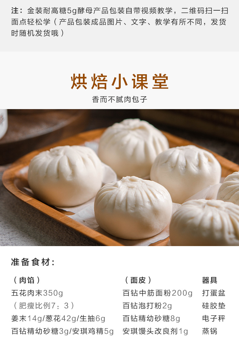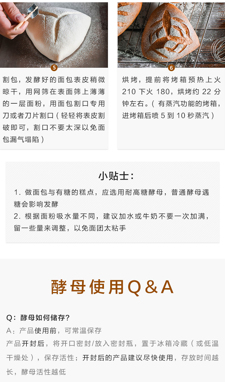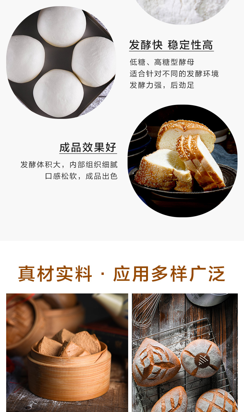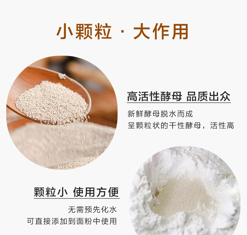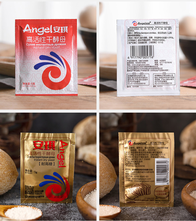【3包包子馒头低糖酵母粉+2包面包高糖酵母粉】新鲜酵母脱水而成,颗粒小无需化水,发酵力强后劲足,发酵体积大,内部组织细腻,口感松软,成色出众。用途广泛,让您的烘焙省心省力!