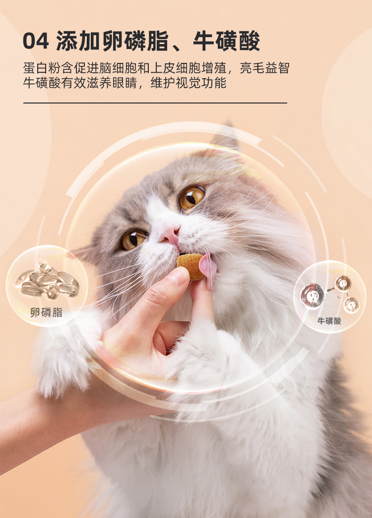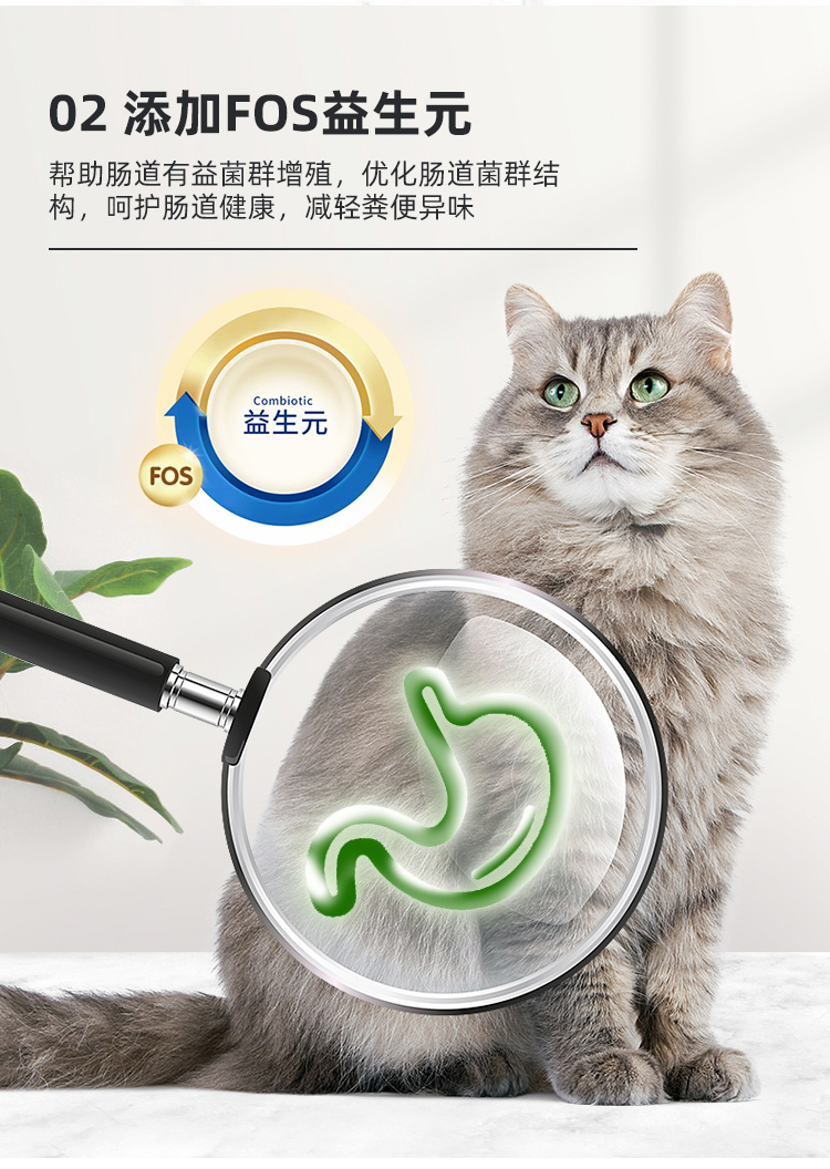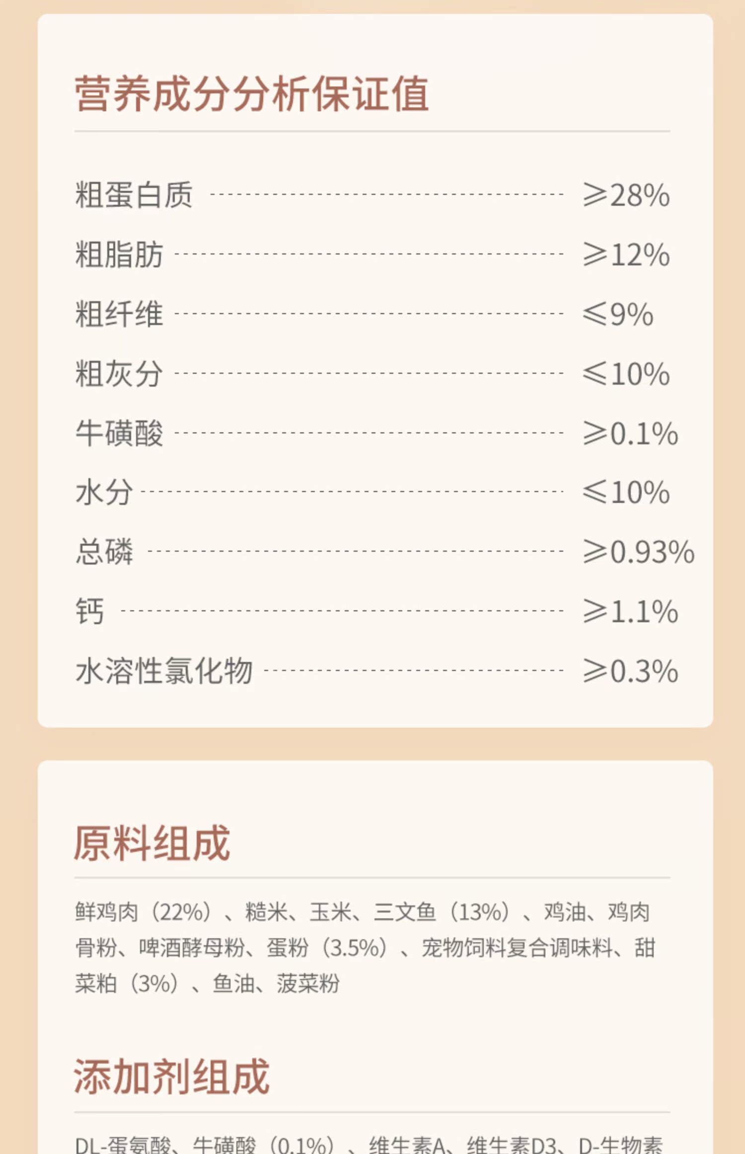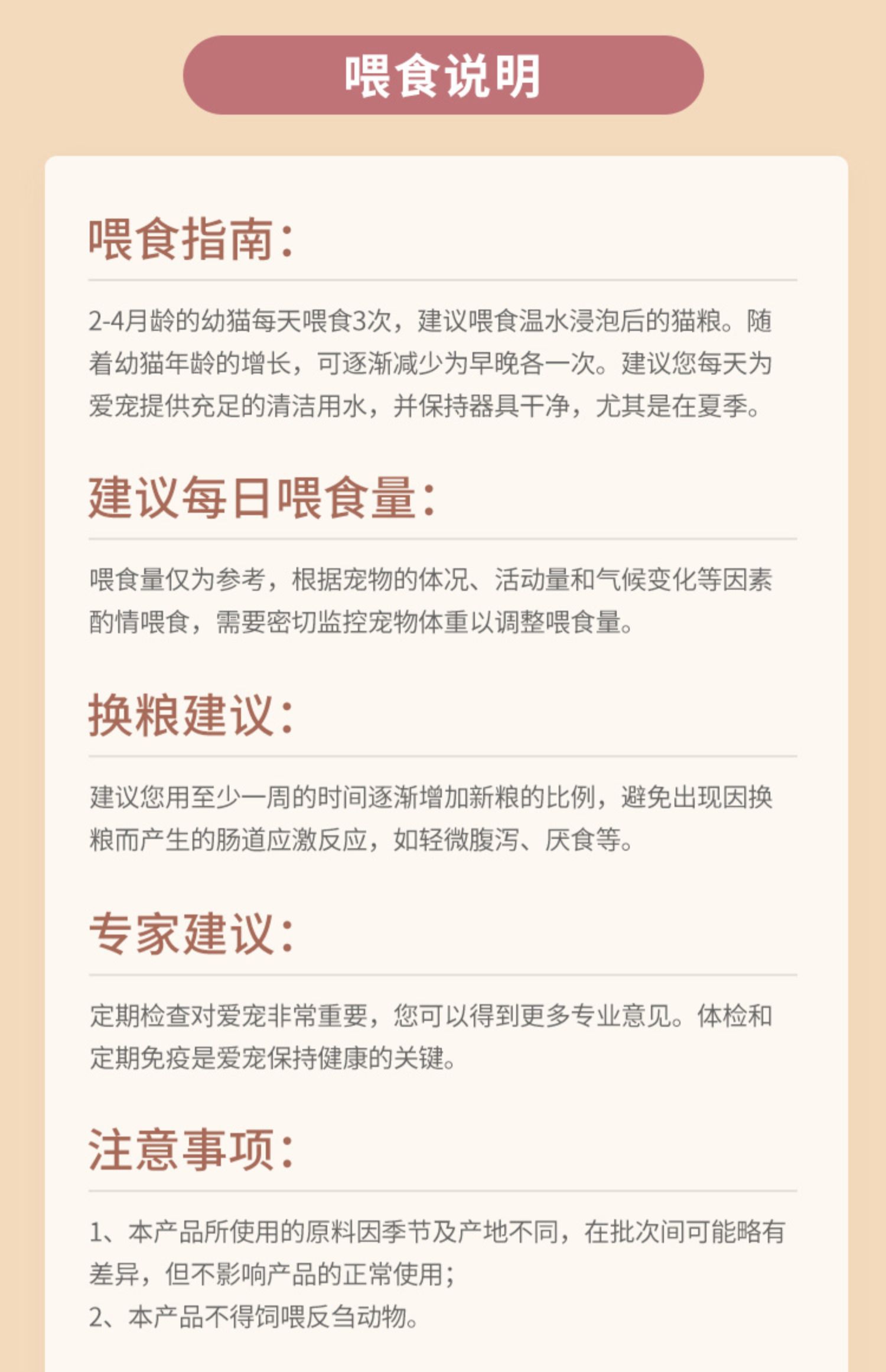 22°/。新鲜走地鸡+13°/。深海金枪鱼,添加FOS益生菌,科学配比,改善皮肤健康,促进肠胃消化,均衡营养~