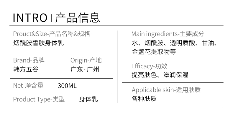 【抖音小红书爆款】烟酰胺美白身体乳,身体与面部均可放心使用!添加3烟酰胺,提亮肤色,补水滋养,软化角质,补水保湿,修护鸡皮,光滑嫩肤,持久留香,焕活水润肌肤!