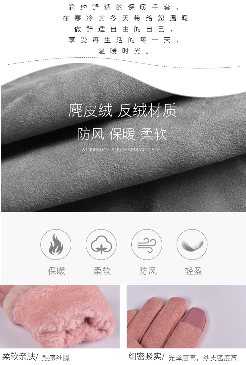 冬天必备的温暖单品!内里加绒,防风保暖不起球,细腻柔软,温和舒适;可触屏导电,户外骑车戴手套超舒服,可以戴着手套玩手机,让你的手在冬天也不显笨重,锁住温度,把温暖带回家!