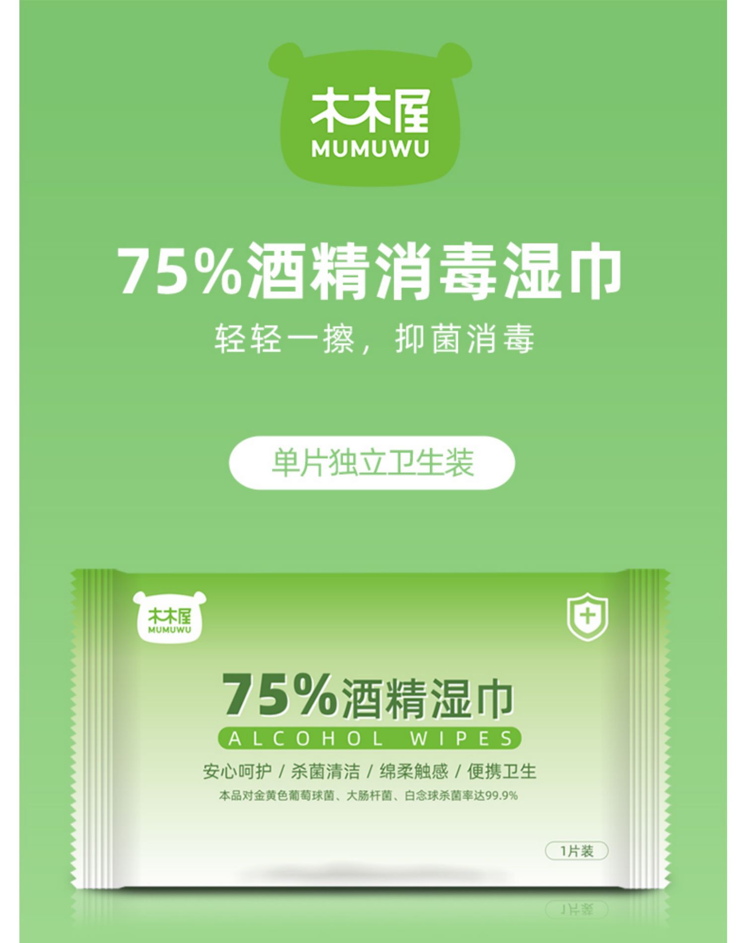 【超值50片】疫情仍未结束,防疫仍要注重!大牌木木屋75度酒精消毒湿巾,45g珍珠纹水刺布,亲肤备柔,方便携带,滋润不干燥,轻轻一擦,高效杀菌!