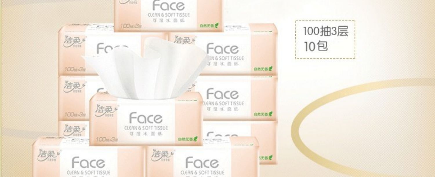 洁柔纸巾自然无香10包实惠装,卫生纸面巾纸3层,宝宝可用抽纸餐巾纸