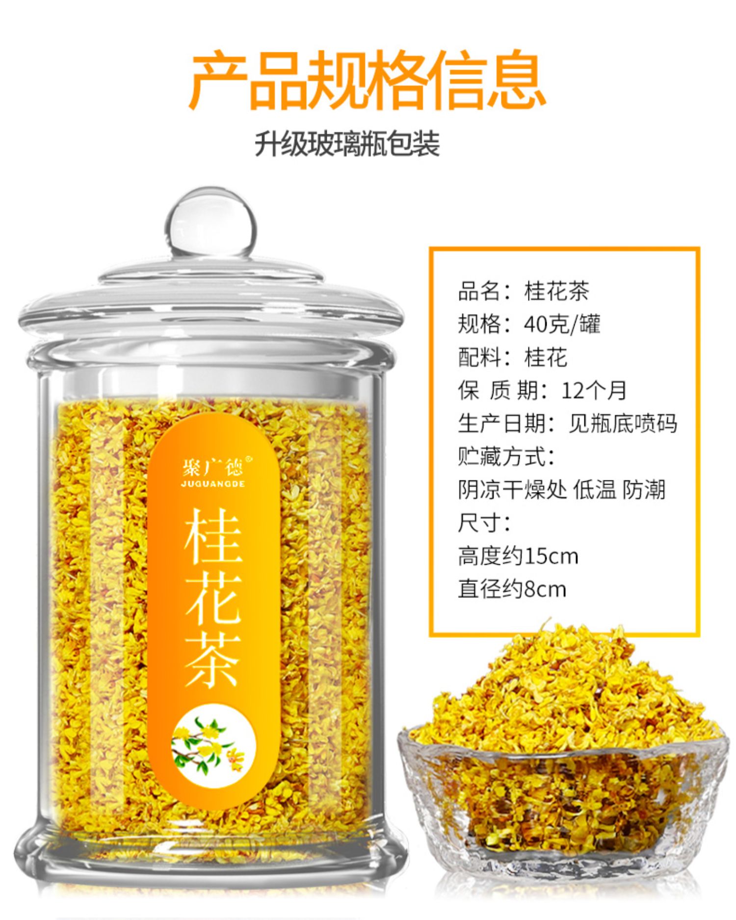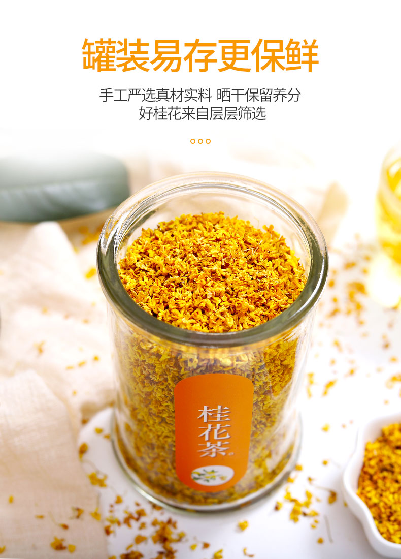 手工严选,材料新鲜,淡淡桂花香,口感上佳,具有美白肌肤、清除口臭,排解体内毒素、润肠通便的作用~精美玻璃罐装,易储存。超值活动速度抢购