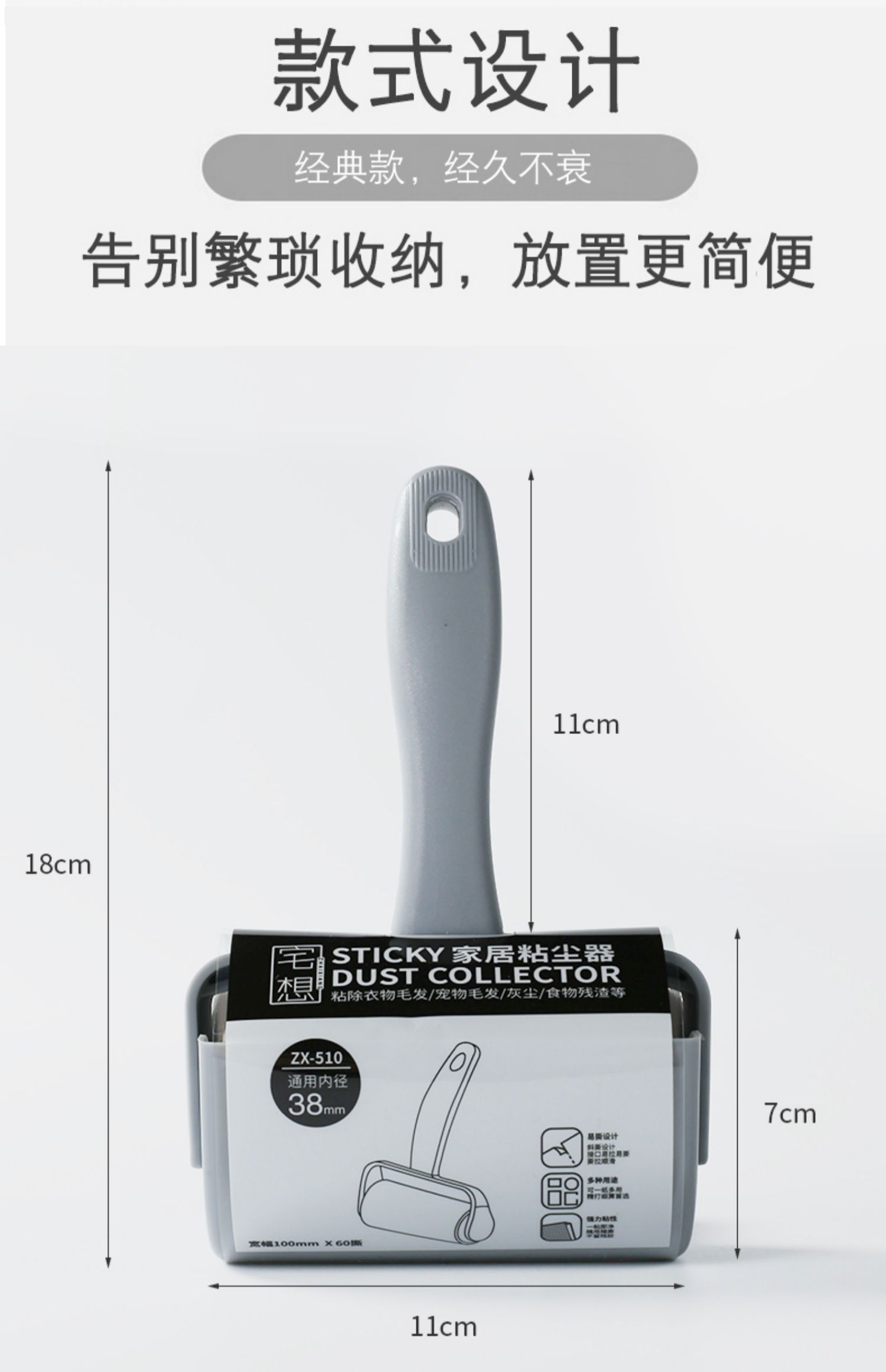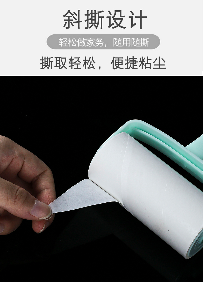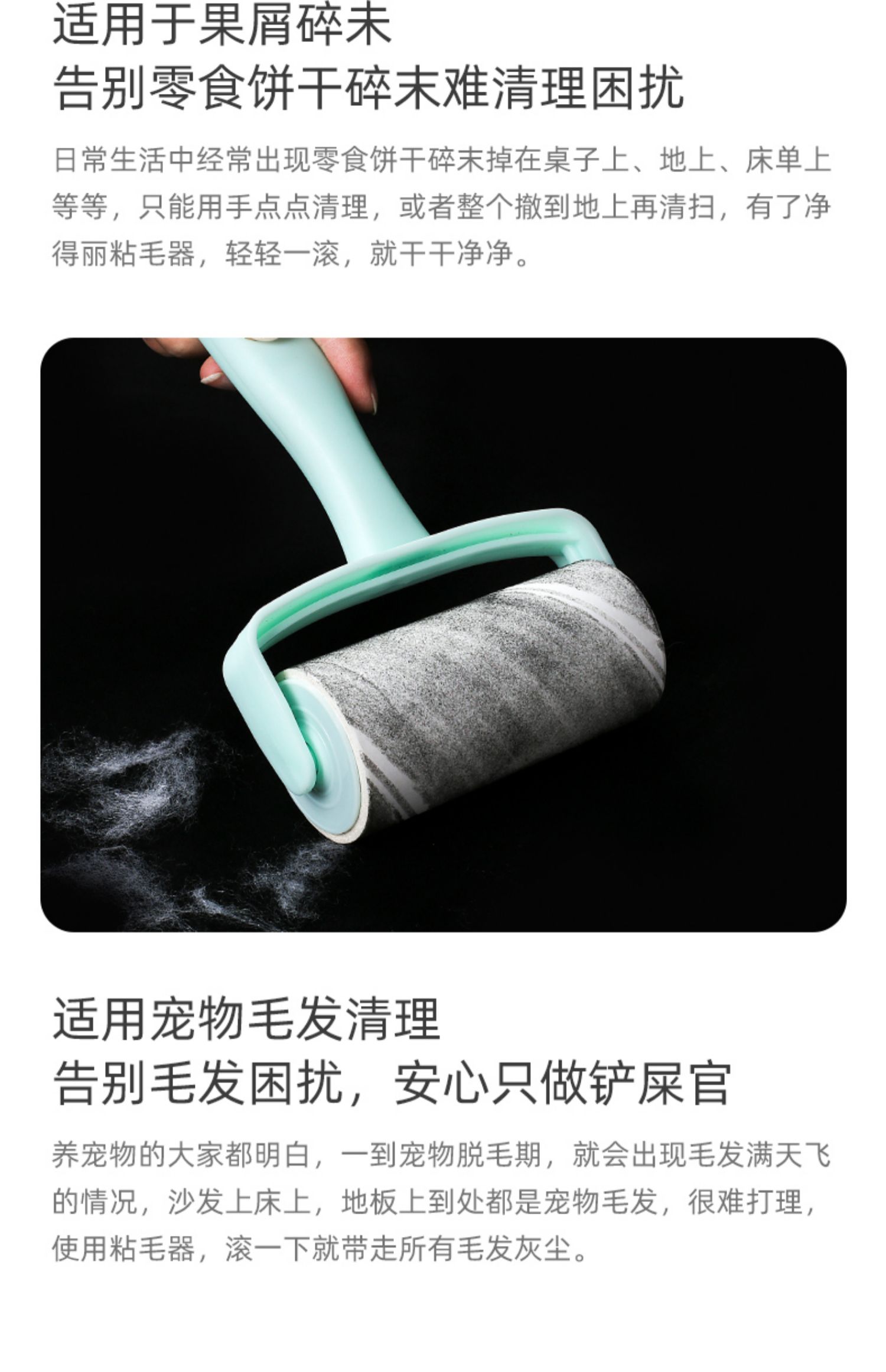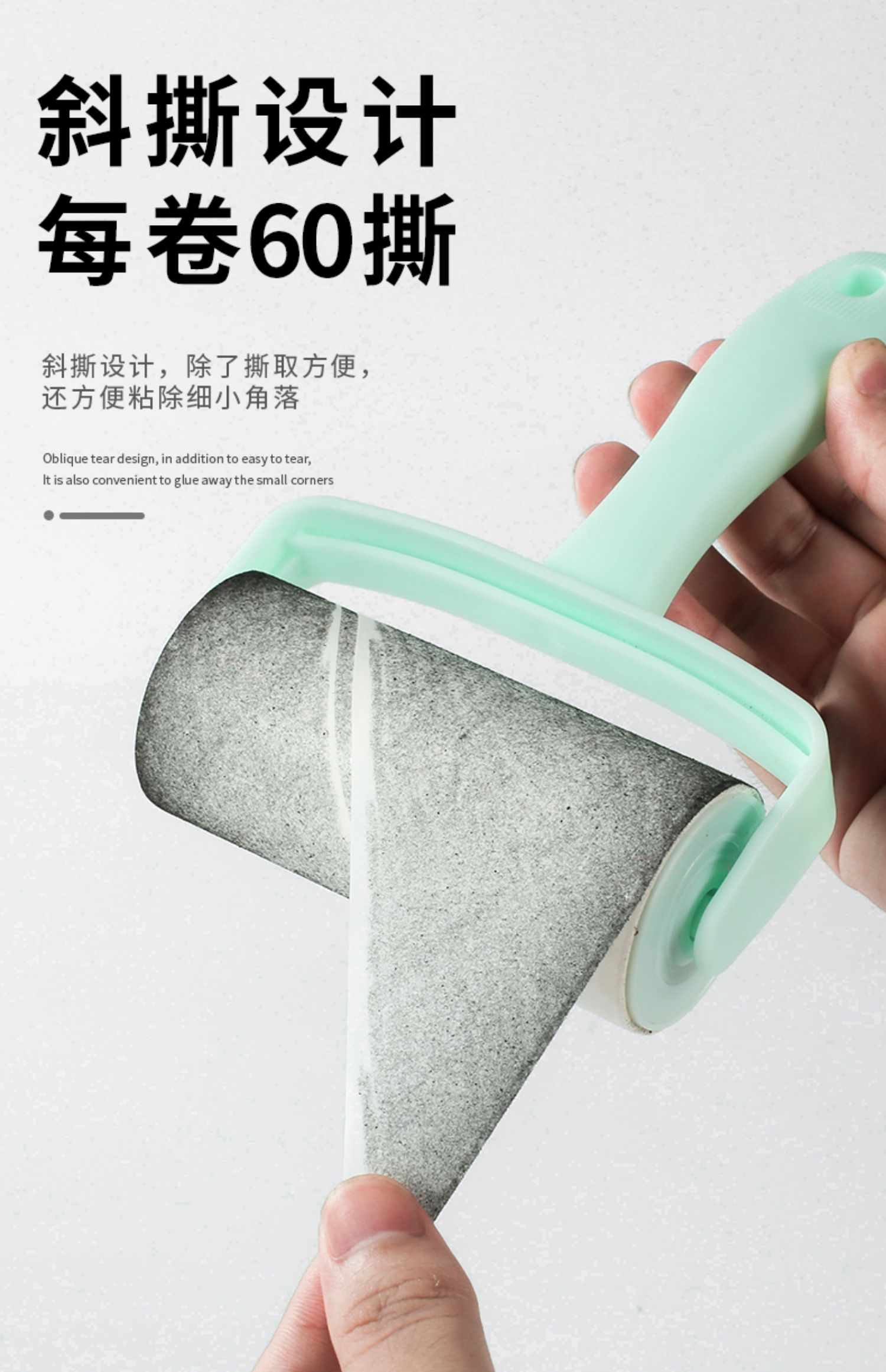 清洁的好帮手,高颜值粘毛器,超强粘力,滚筒式手柄设计60撕纸,有效解决各种衣物附着的头发,绒毛、灰尘等难题